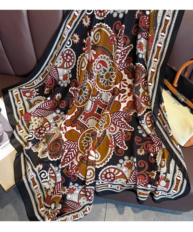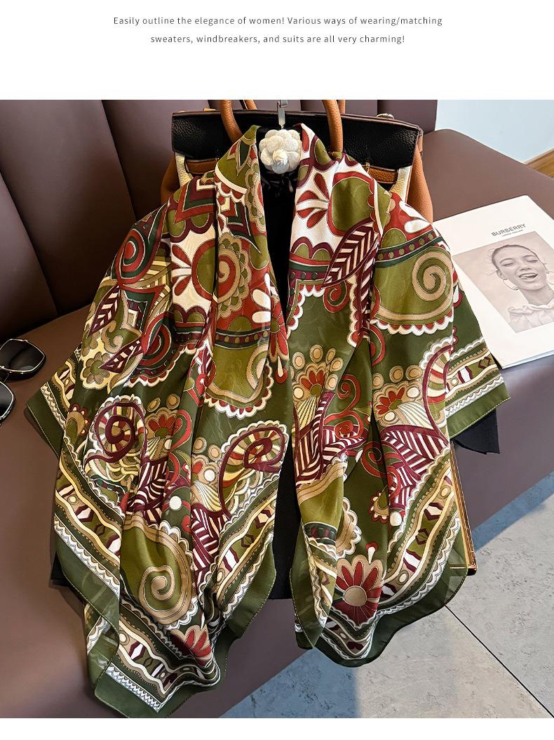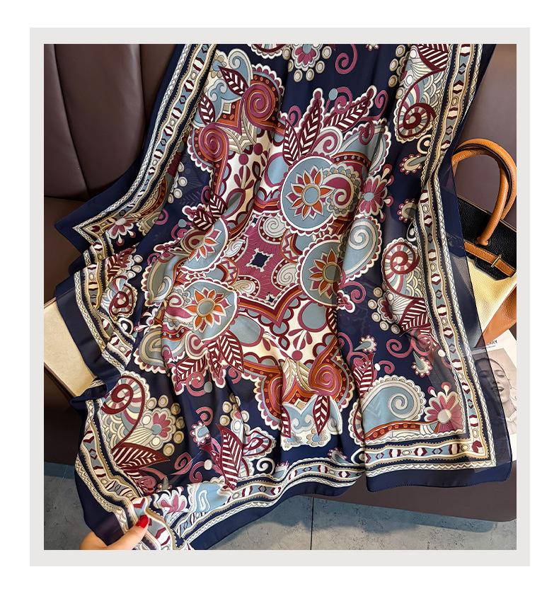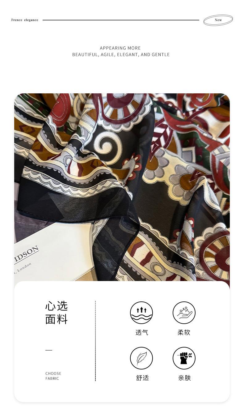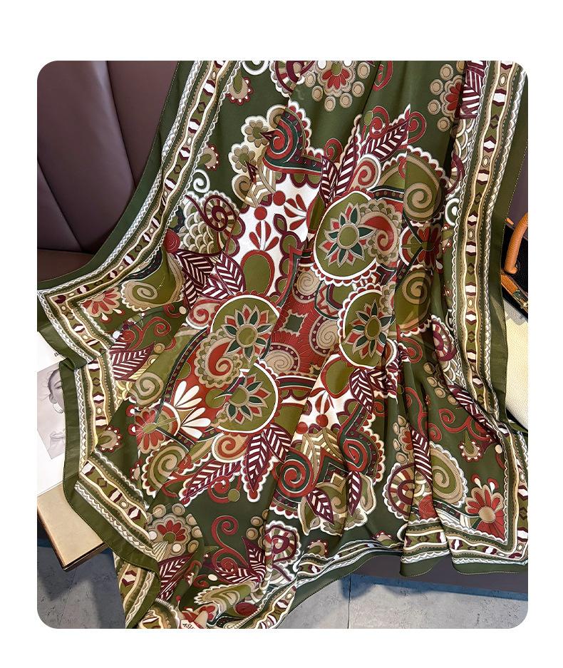 Comercio Exterior Transfronterizo Pañuelo Cuadrado Pañuelo de Seda Estampado para Mujer Primavera y Otoño Verano Estaciones Elegante Lujo Ligero Sensación de Alta Gama Chal Pañuelo