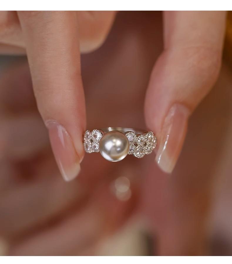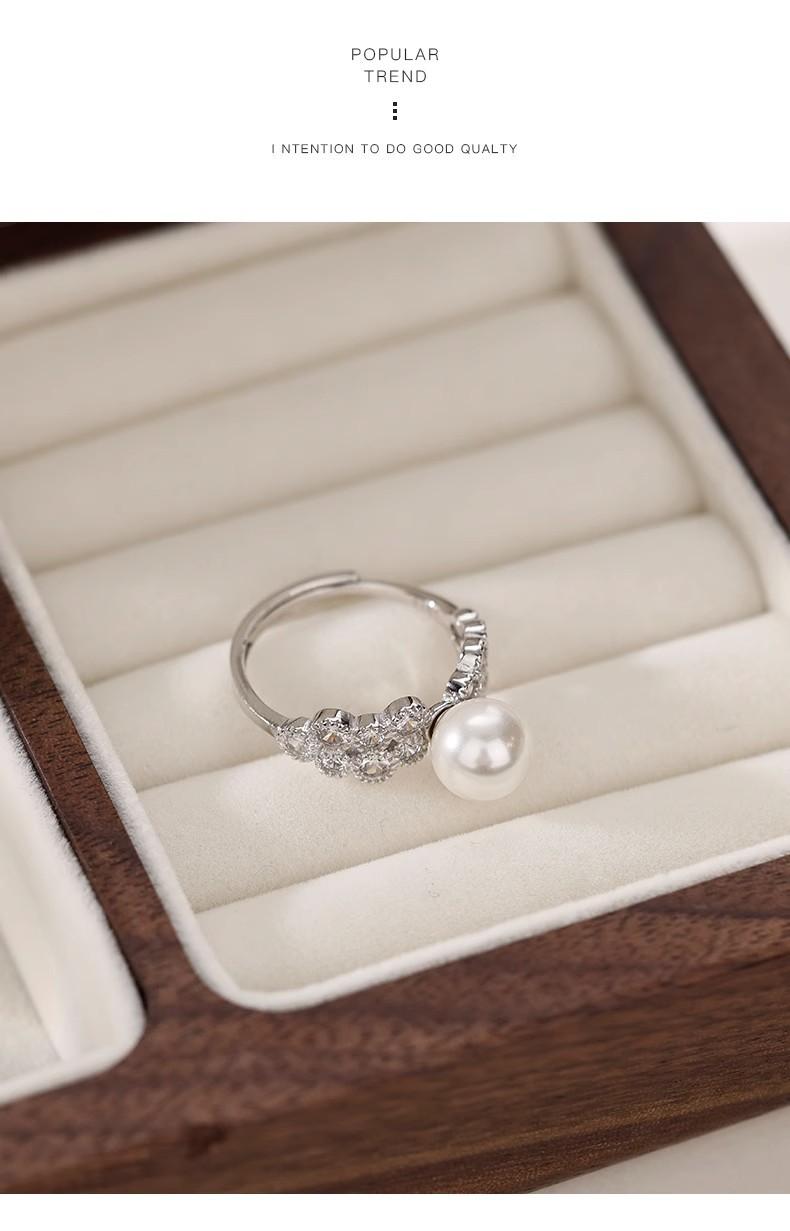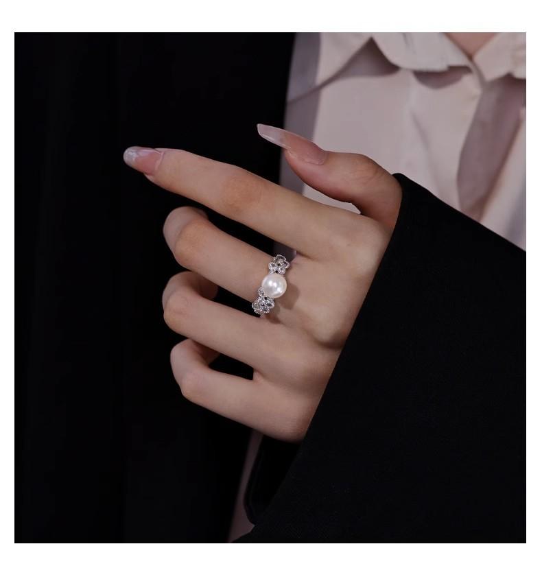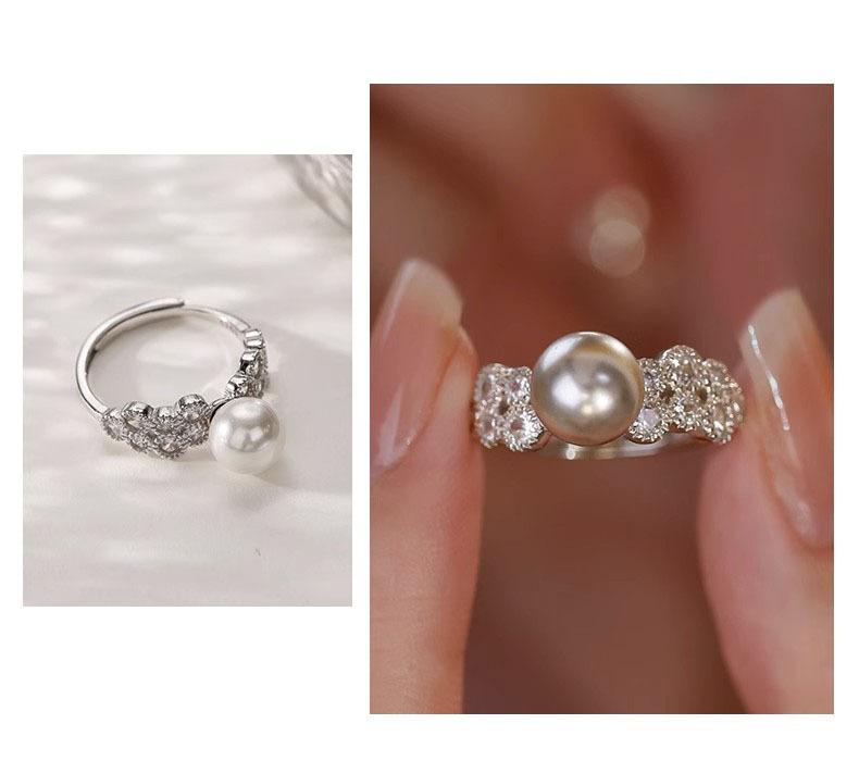 Anillo de Perlas para Mujer Estilo Cool Ins Diseño Nicho Lujo Ligero Sentido Avanzado Anillo de Dedo Índice Abierto Ajustable