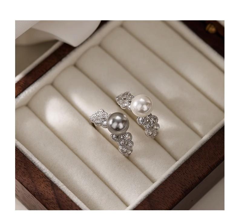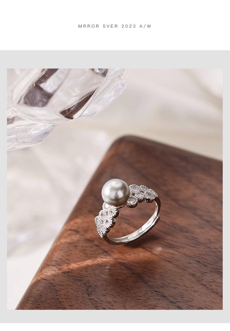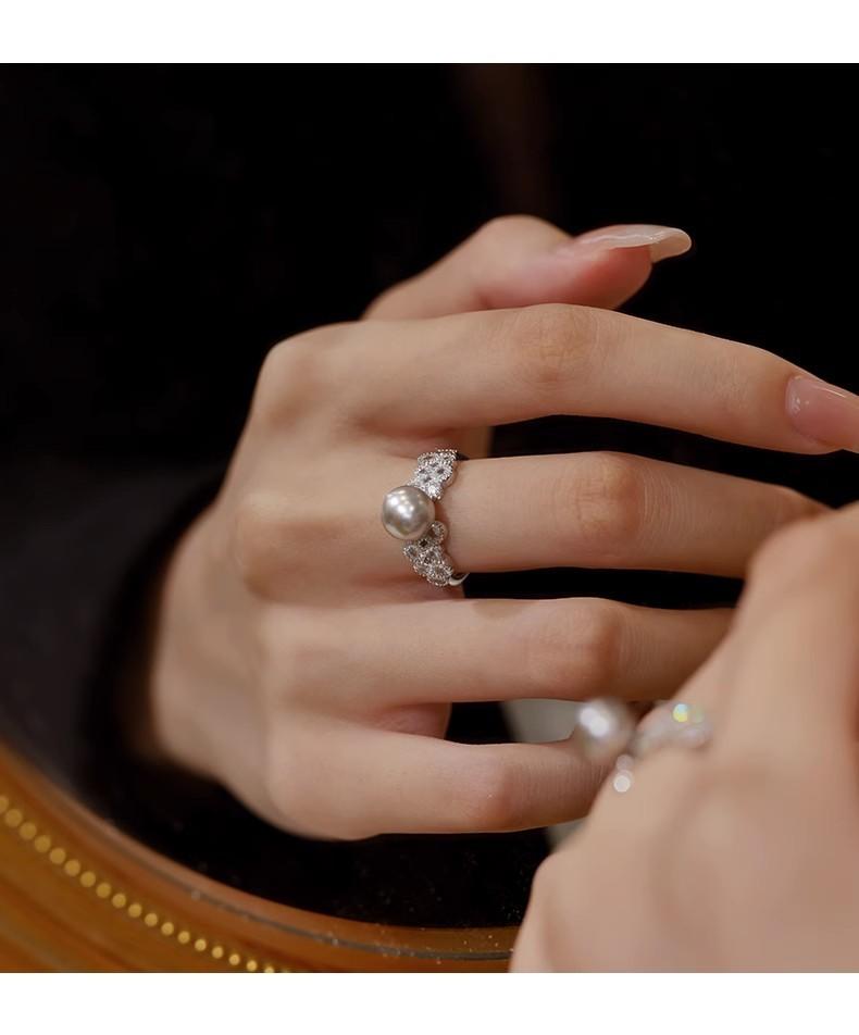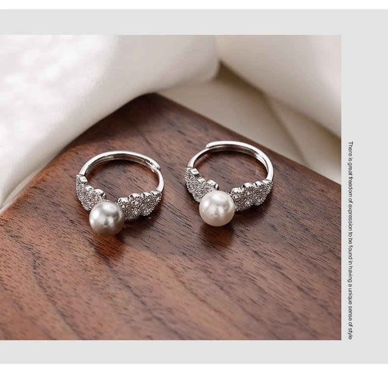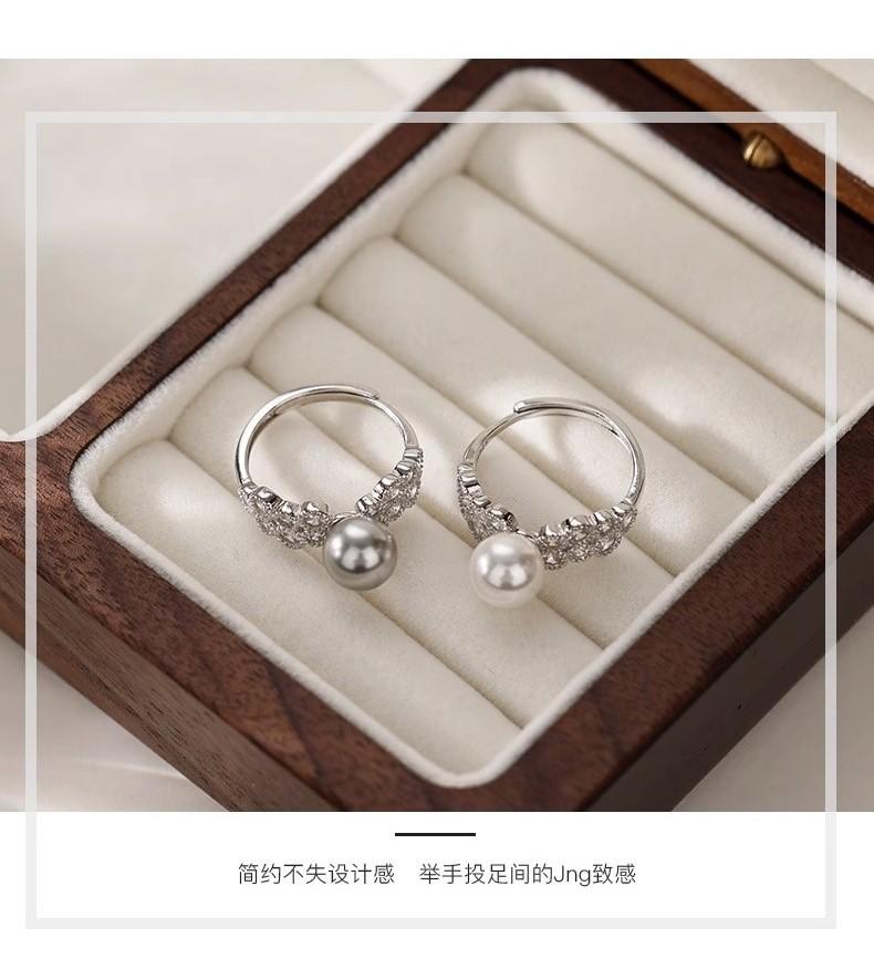 Anillo de Perlas para Mujer Estilo Cool Ins Diseño Nicho Lujo Ligero Sentido Avanzado Anillo de Dedo Índice Abierto Ajustable