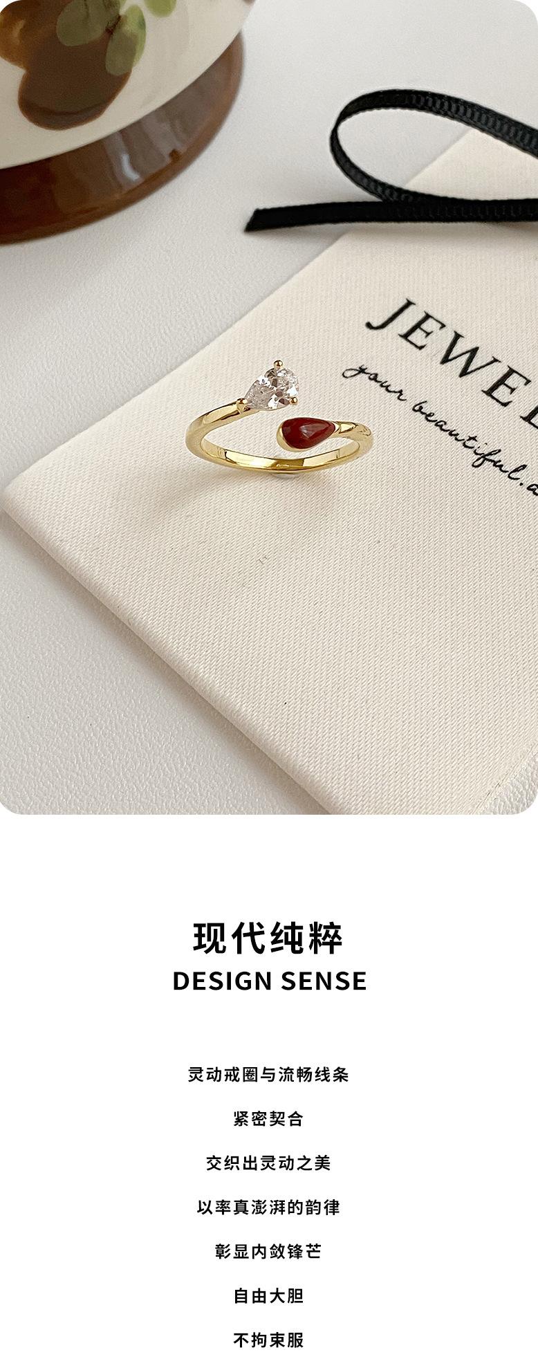 Anillo de Circonita Esmaltada Francesa de Lujo Ligero Estilo Moda Anillo Nicho Diseño de Alta Gama Anillo Abierto de Doble Extremo