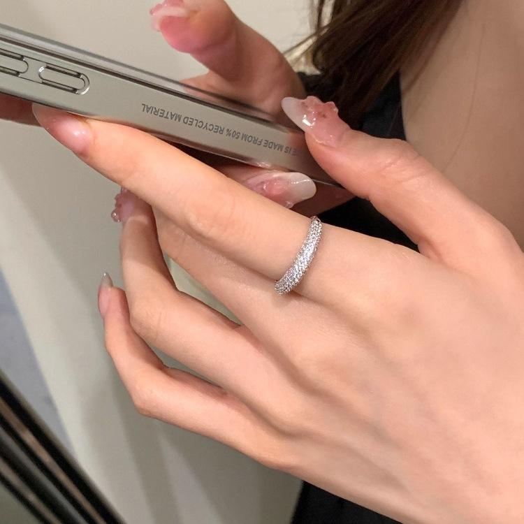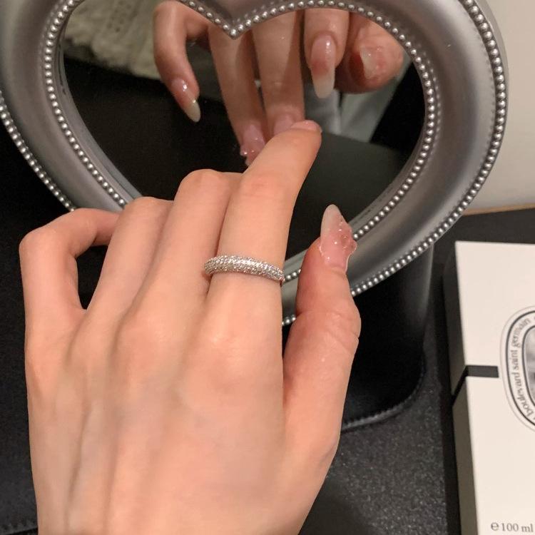 Anillo Minimalista Exquisito de Circonita con Diseño de Locha para Mujer, Temperamento de Lujo Ligero, Súper Brillante de Alta Gama Ajustable Abierto