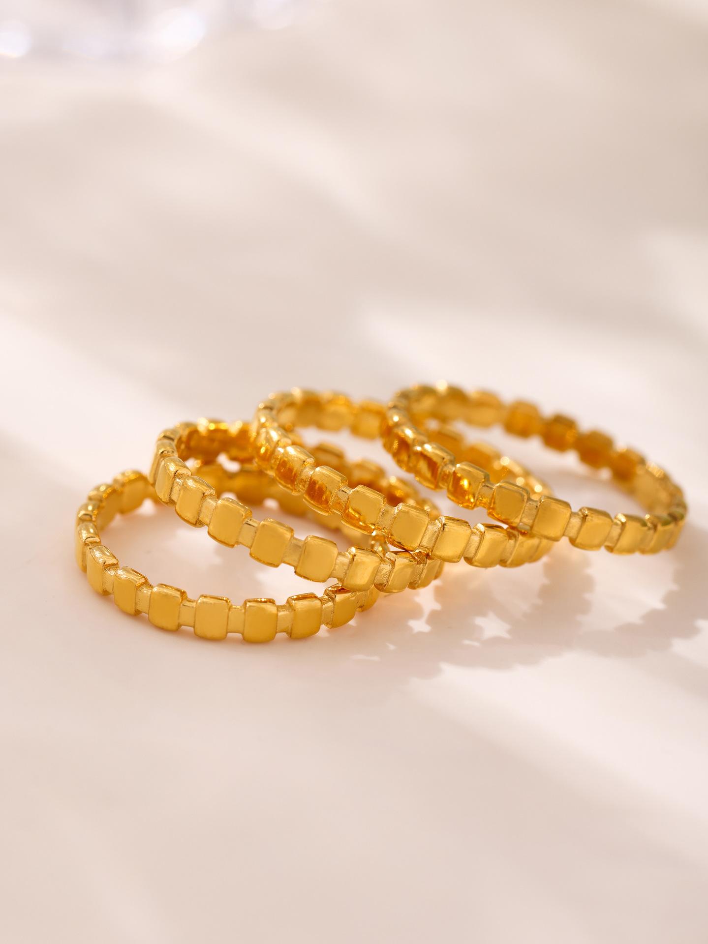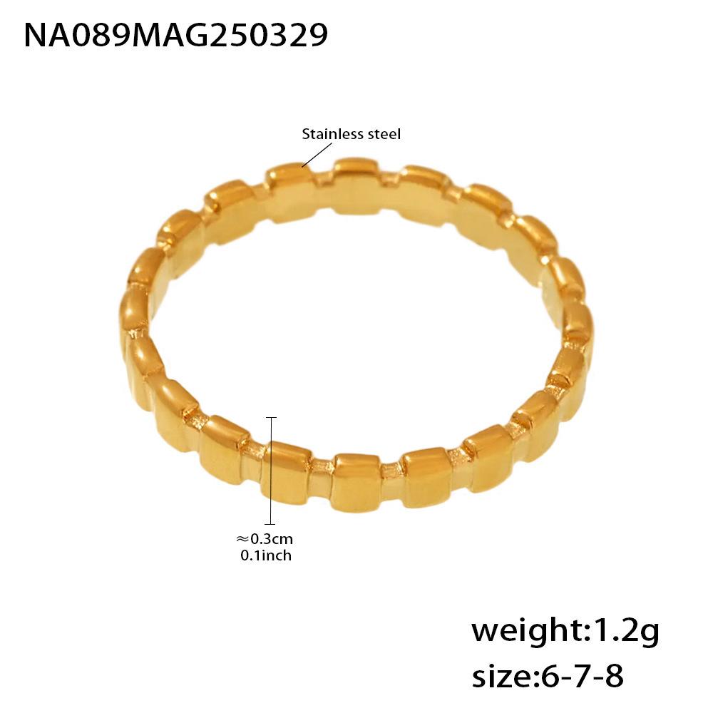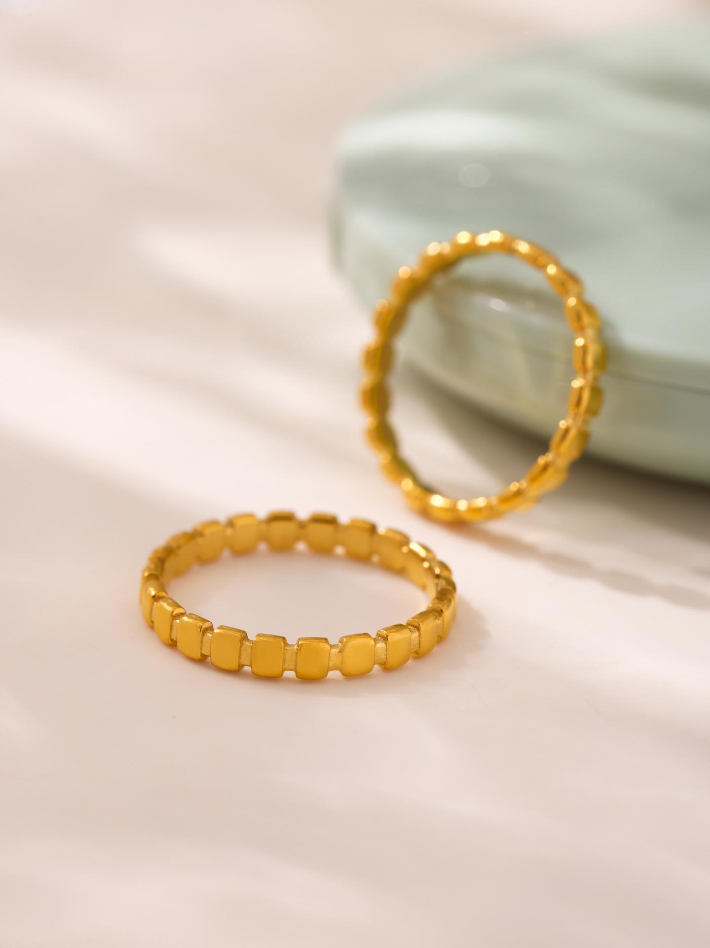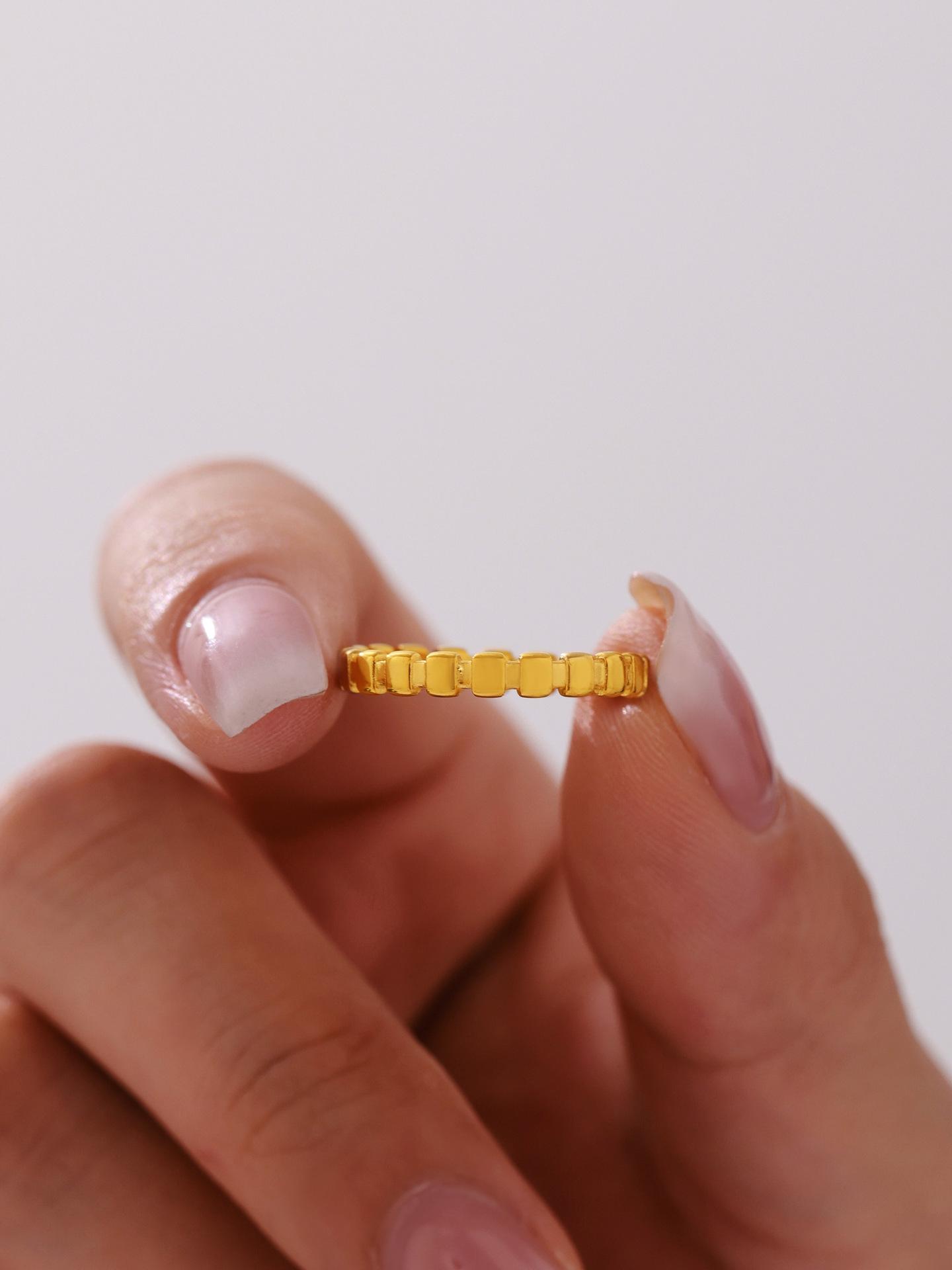 Anillo de puntada cuadrada pequeña europea y americana de azúcar anillo de nicho femenino acero de titanio chapado en oro de 18 quilates joyería de mano que no se desvanece al por mayor