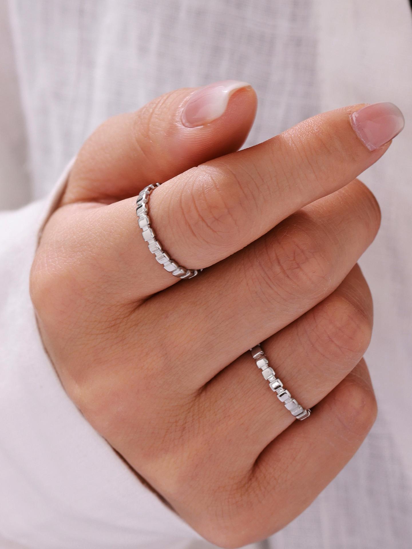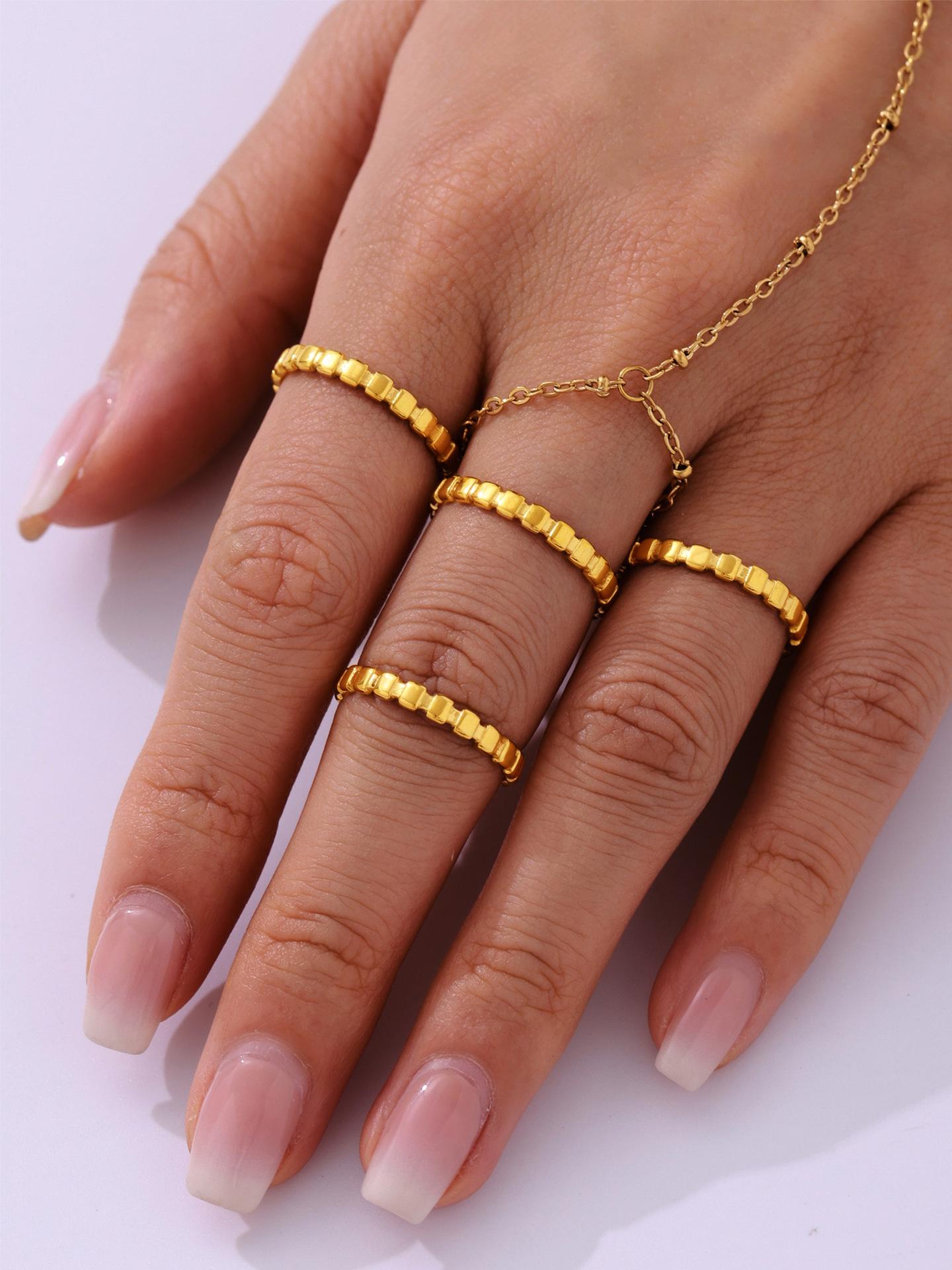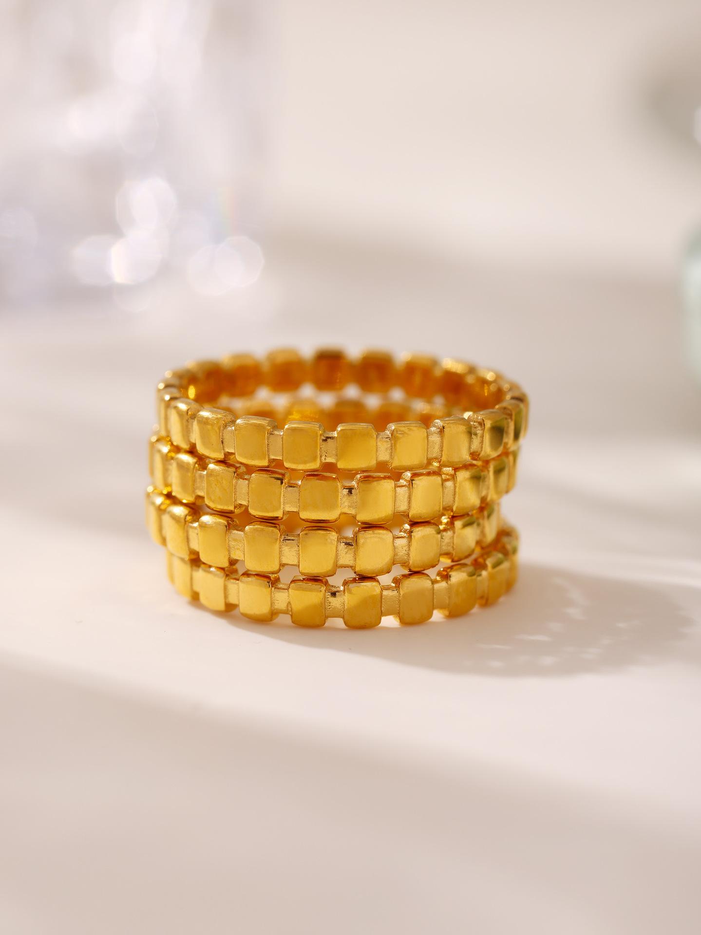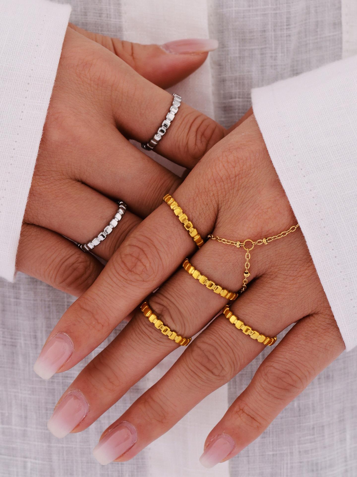 Anillo de puntada cuadrada pequeña europea y americana de azúcar anillo de nicho femenino acero de titanio chapado en oro de 18 quilates joyería de mano que no se desvanece al por mayor