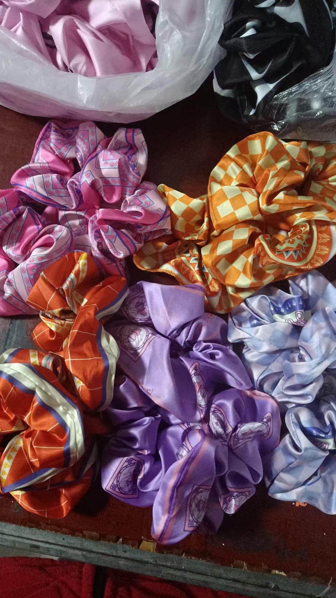 Scrunchie redondo--Scrunchie cuadrado--Scrunchie de seda de morera--Diadema--Diadema--Lazo y una serie de productos.