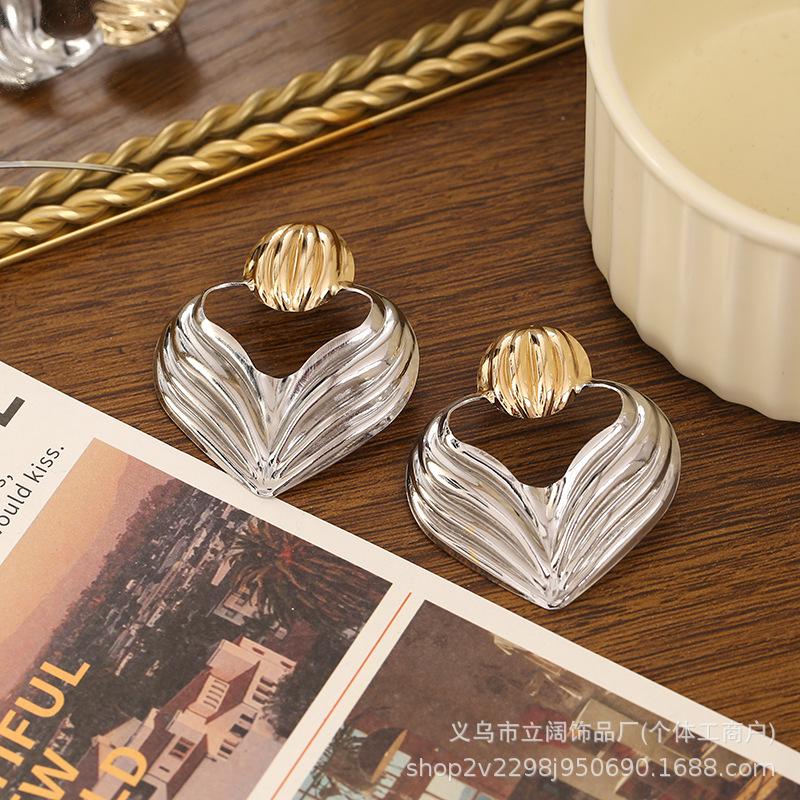 Aretes de Personalidad de Estilo Europeo y Americano para Mujer con Diseño Exagerado, Aretes Huecos en Forma de Corazón, Lujo Ligero, Aretes Nicho de Alto Valor