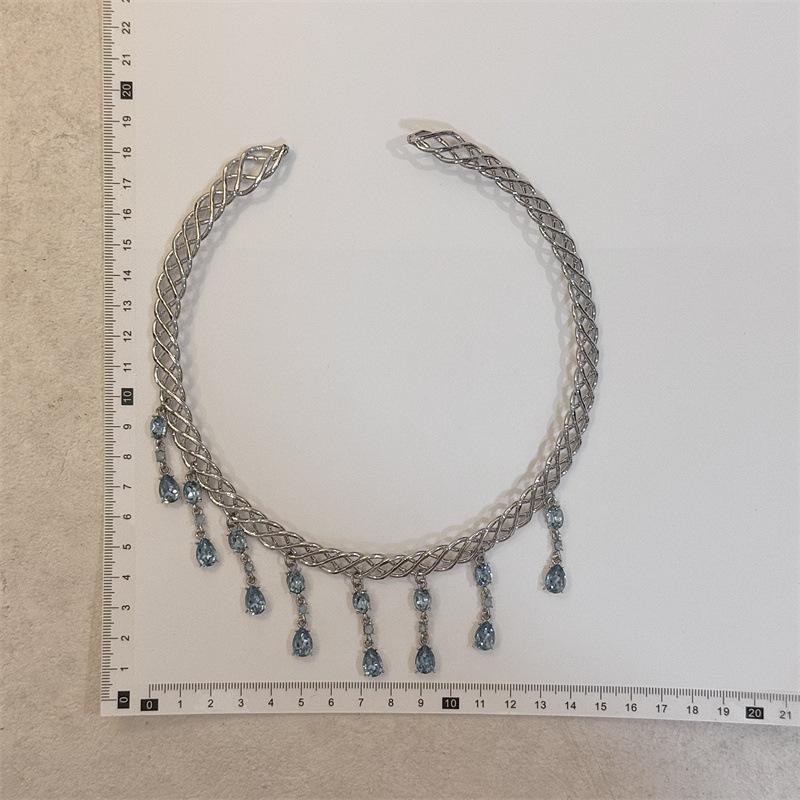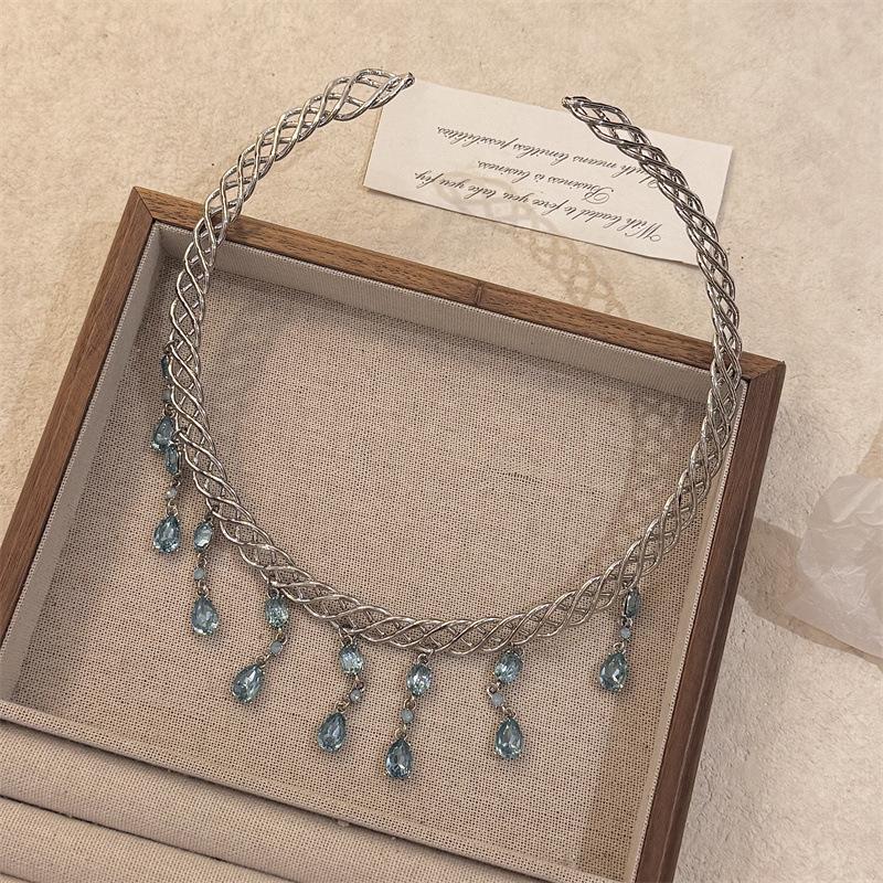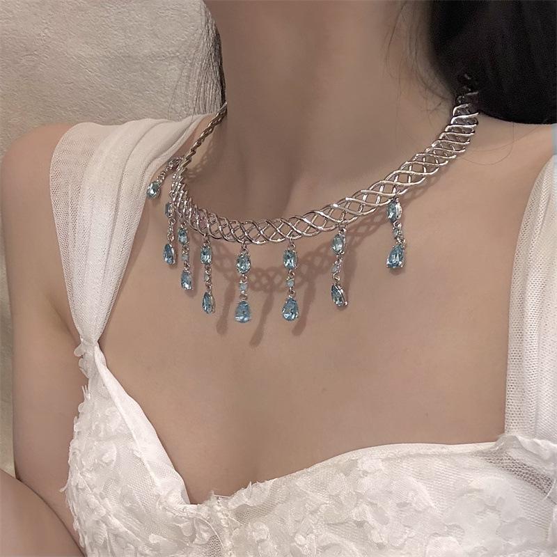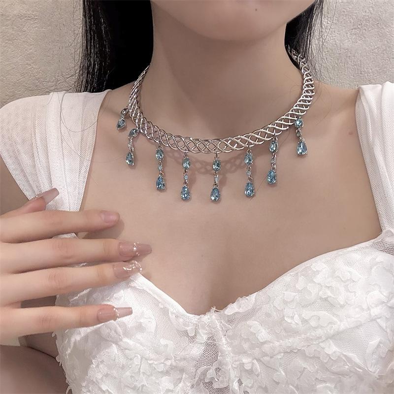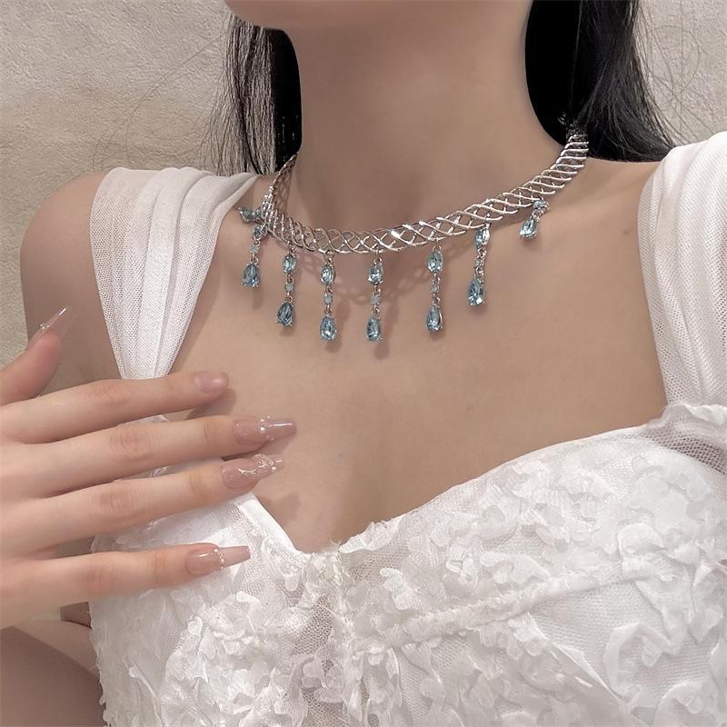 Collar francés retro de industria pesada azul gota de agua 2025 nuevo diseño de nicho personalidad cadena clavicular