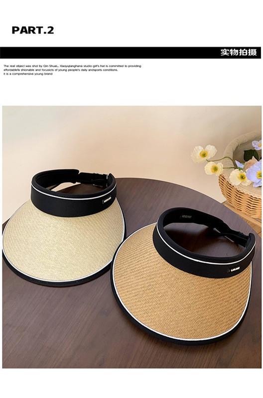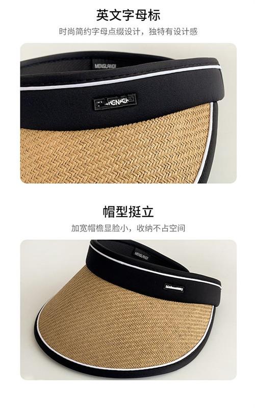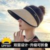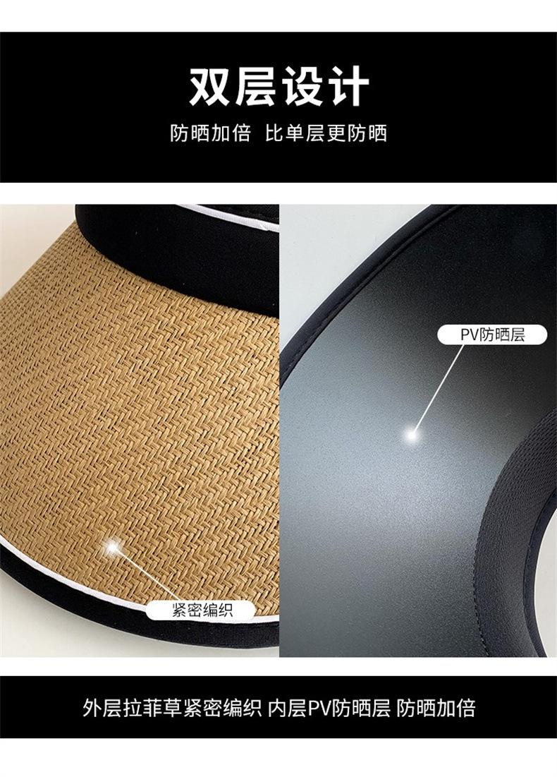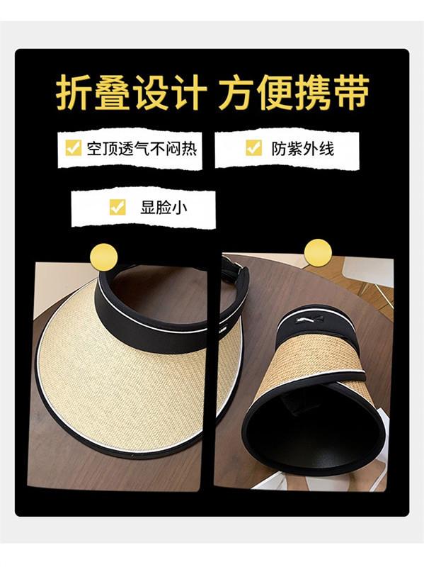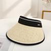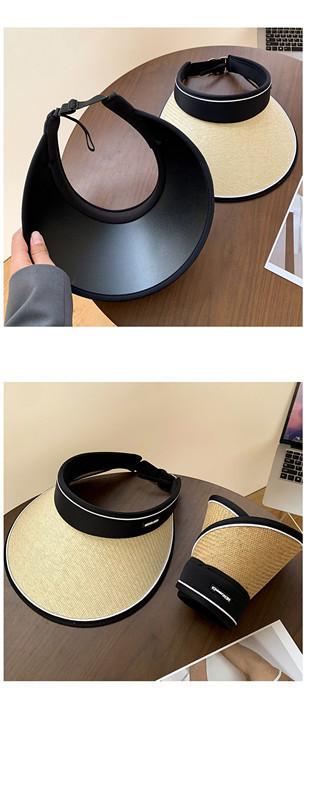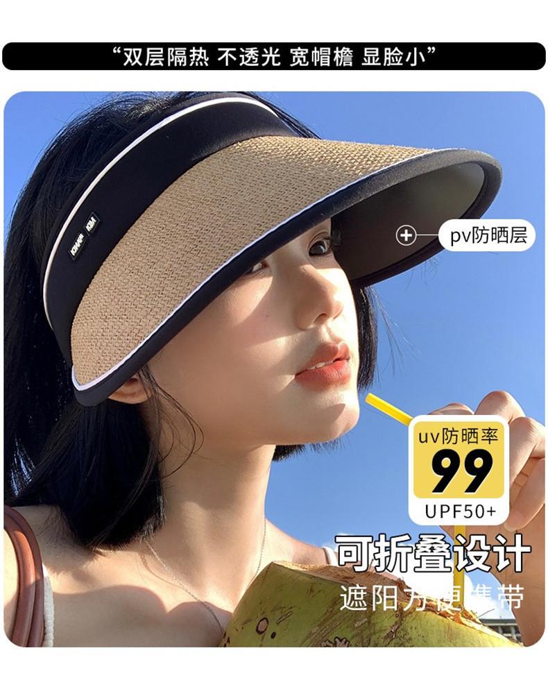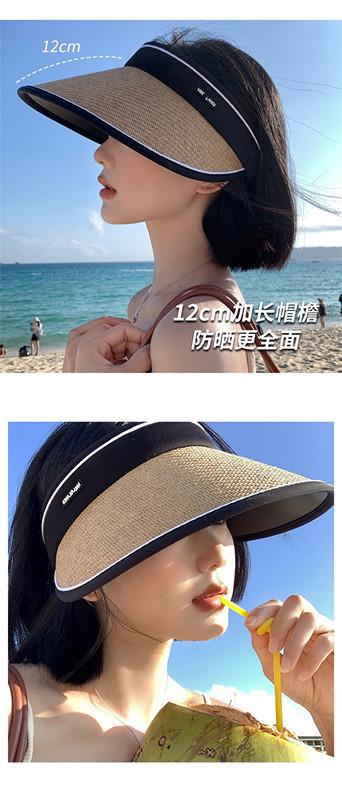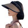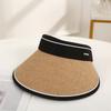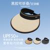 Sombrero de paja de goma negra con parte superior vacía para mujer, de verano, plegable, de ala grande, parasol, protección solar, para playa, protección UV