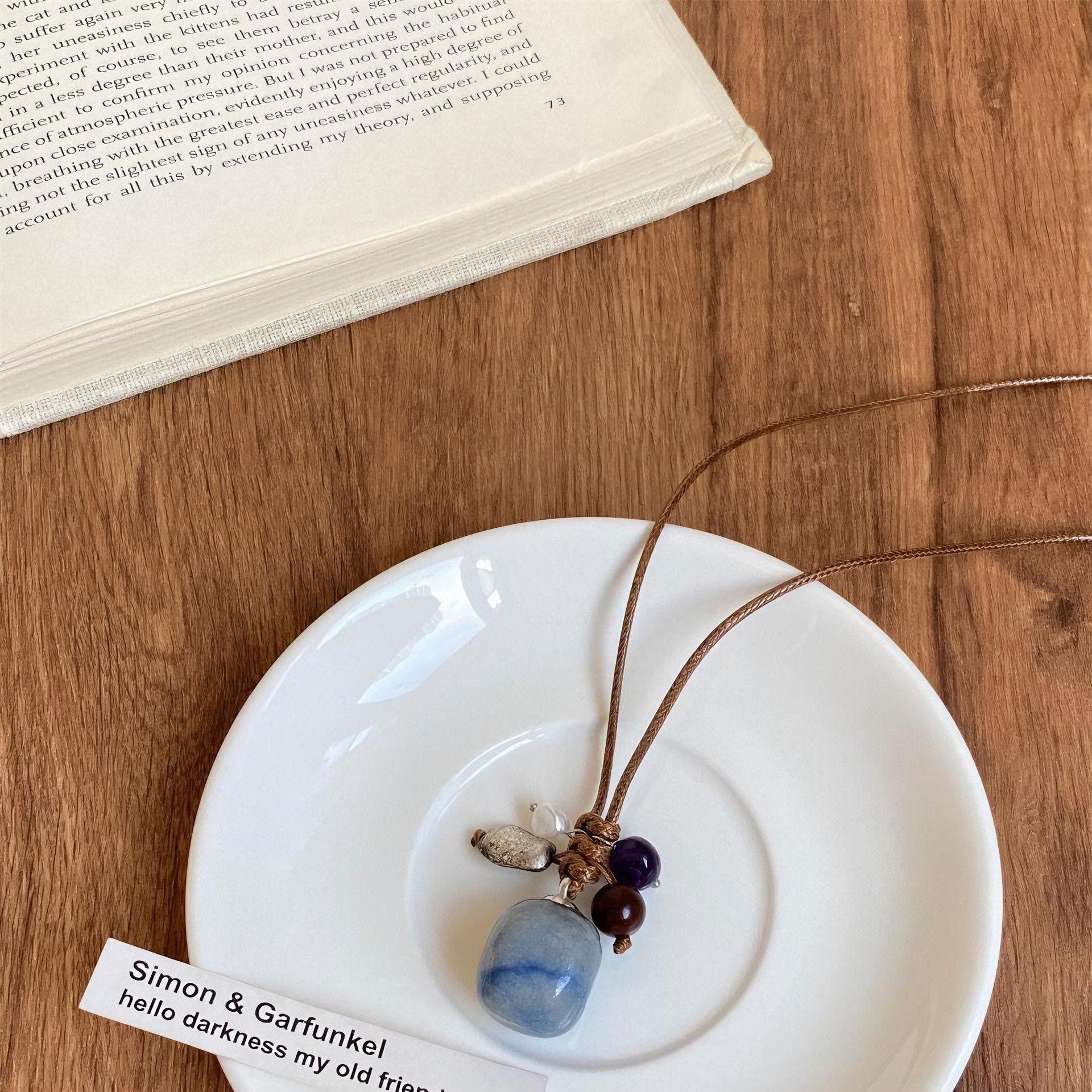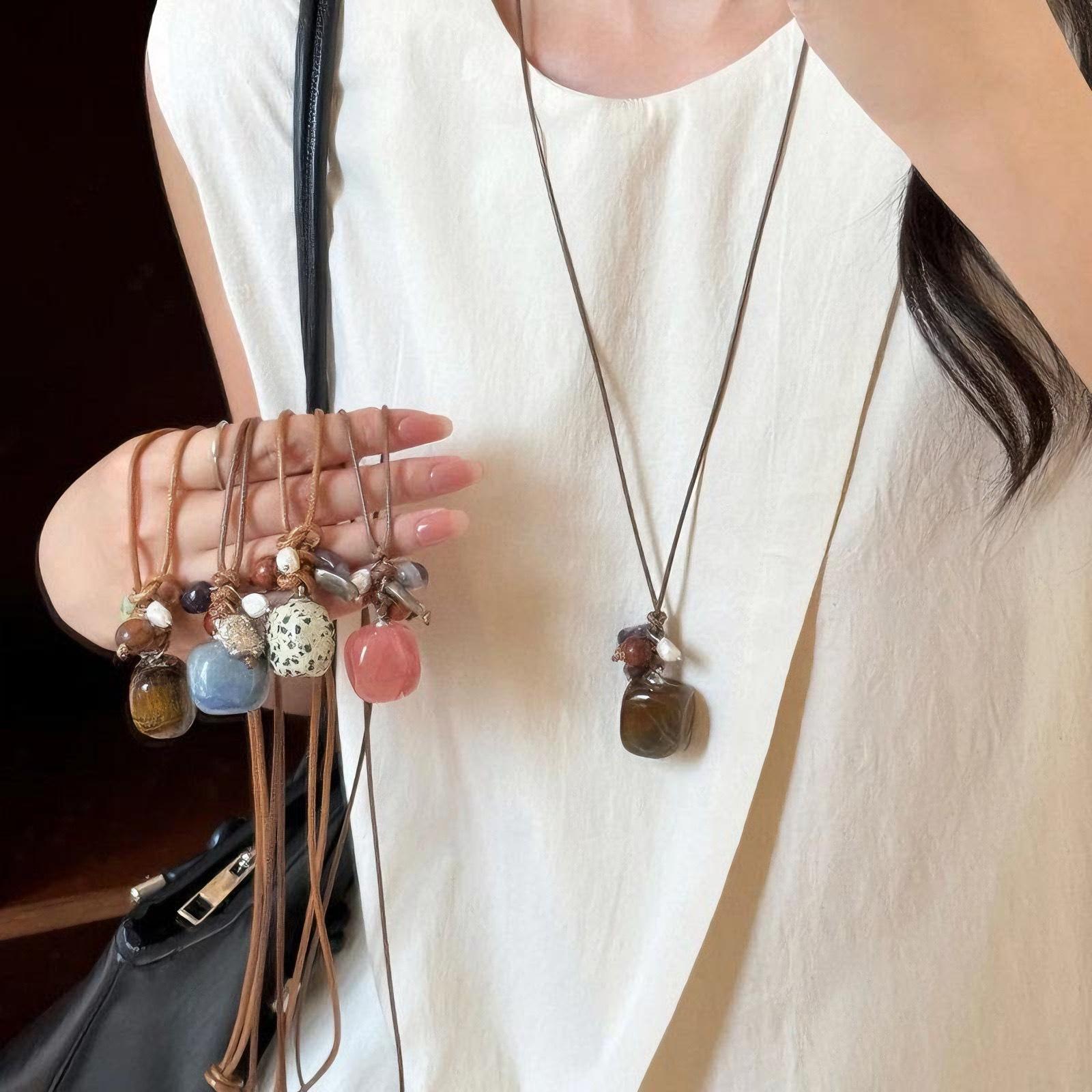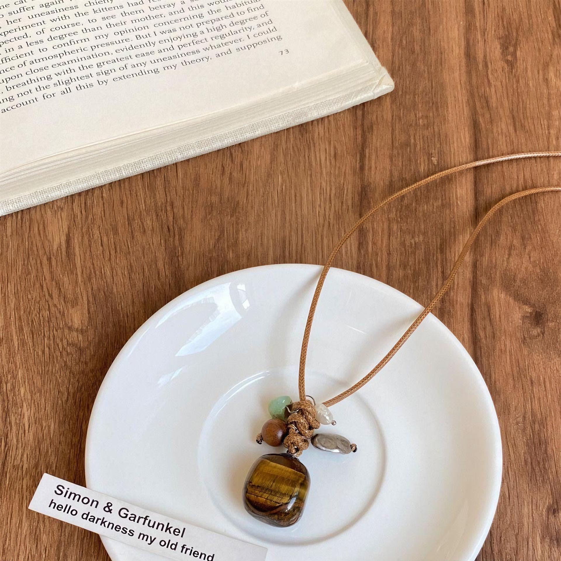 Collar de Cuerda Trenzada de Perla de Piedra Natural para Mujer Retro Nuevo Estilo Chino Piedra Ojo de Tigre Cadena Clavicular Largo Halter Accesorios de Punto