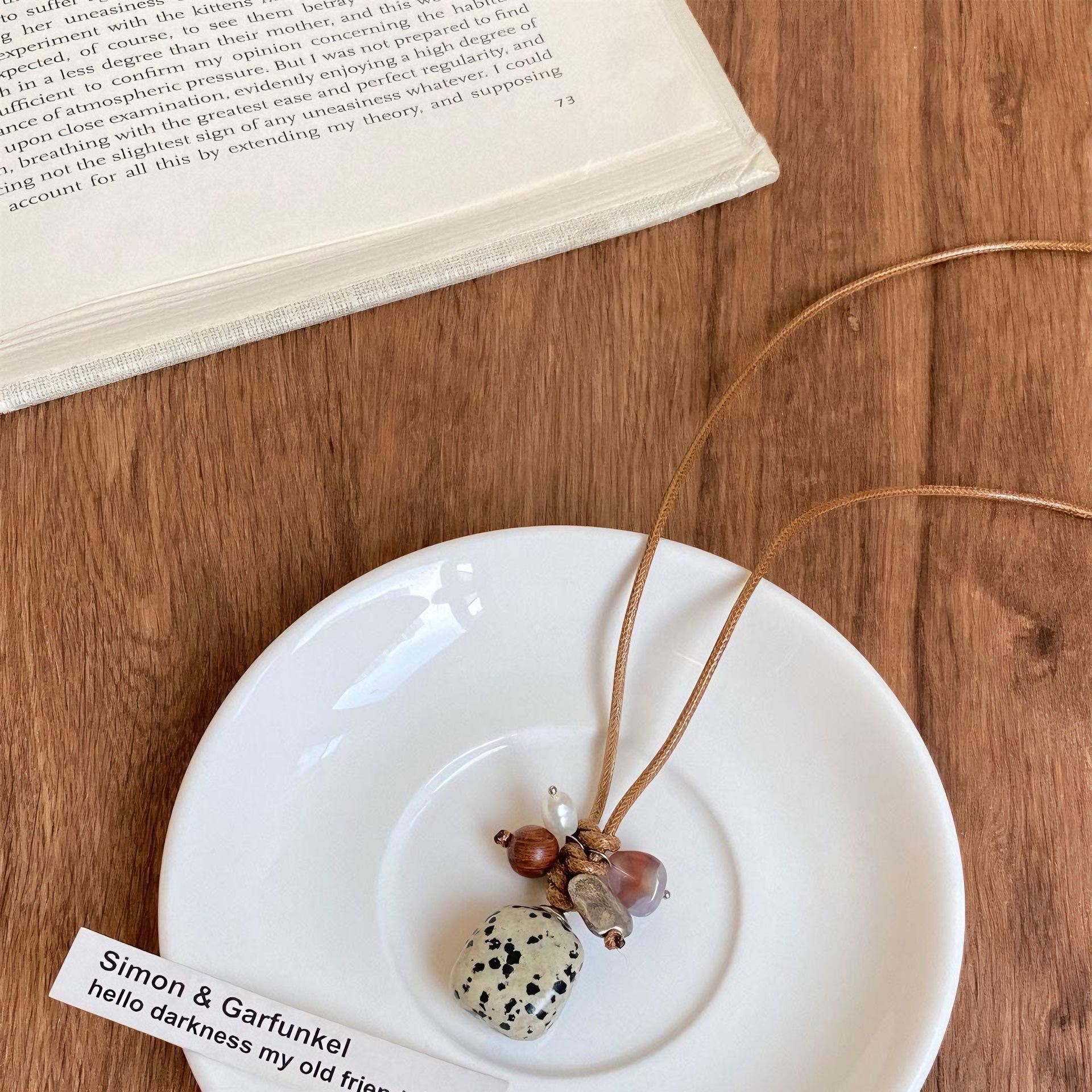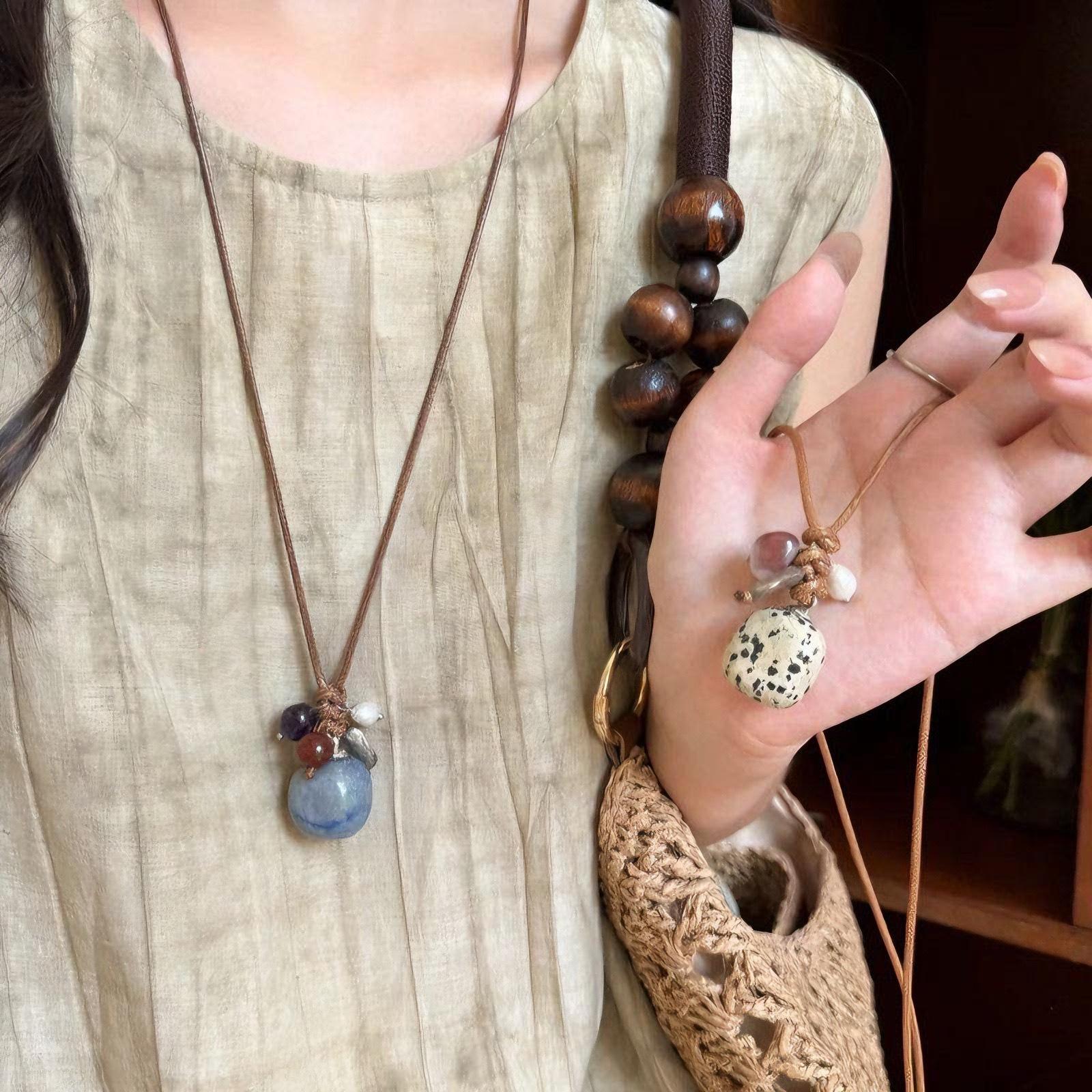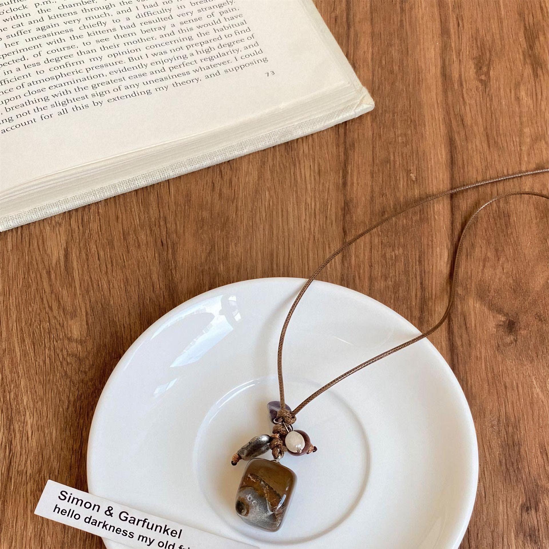 Collar de Cuerda Trenzada de Perla de Piedra Natural para Mujer Retro Nuevo Estilo Chino Piedra Ojo de Tigre Cadena Clavicular Largo Halter Accesorios de Punto
