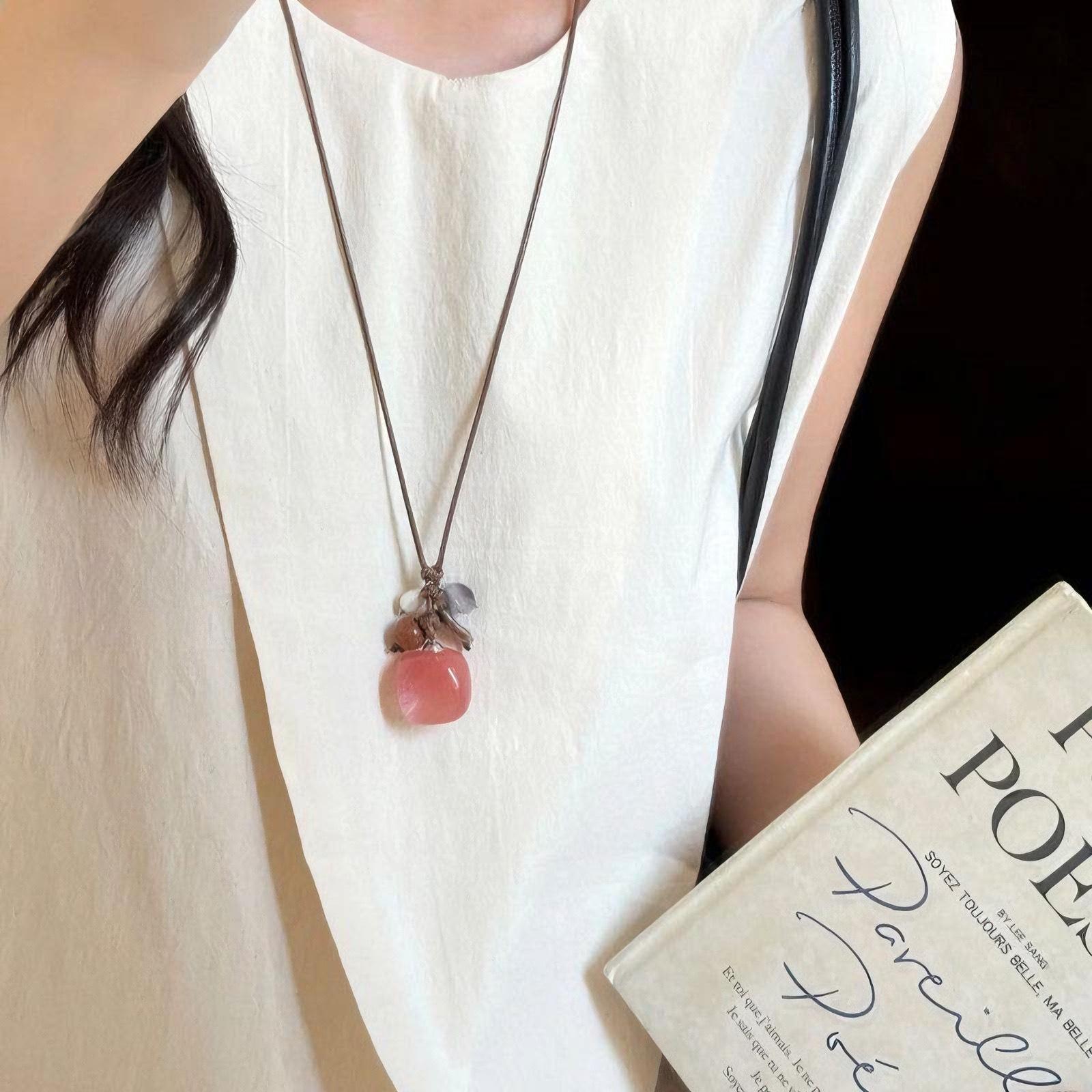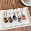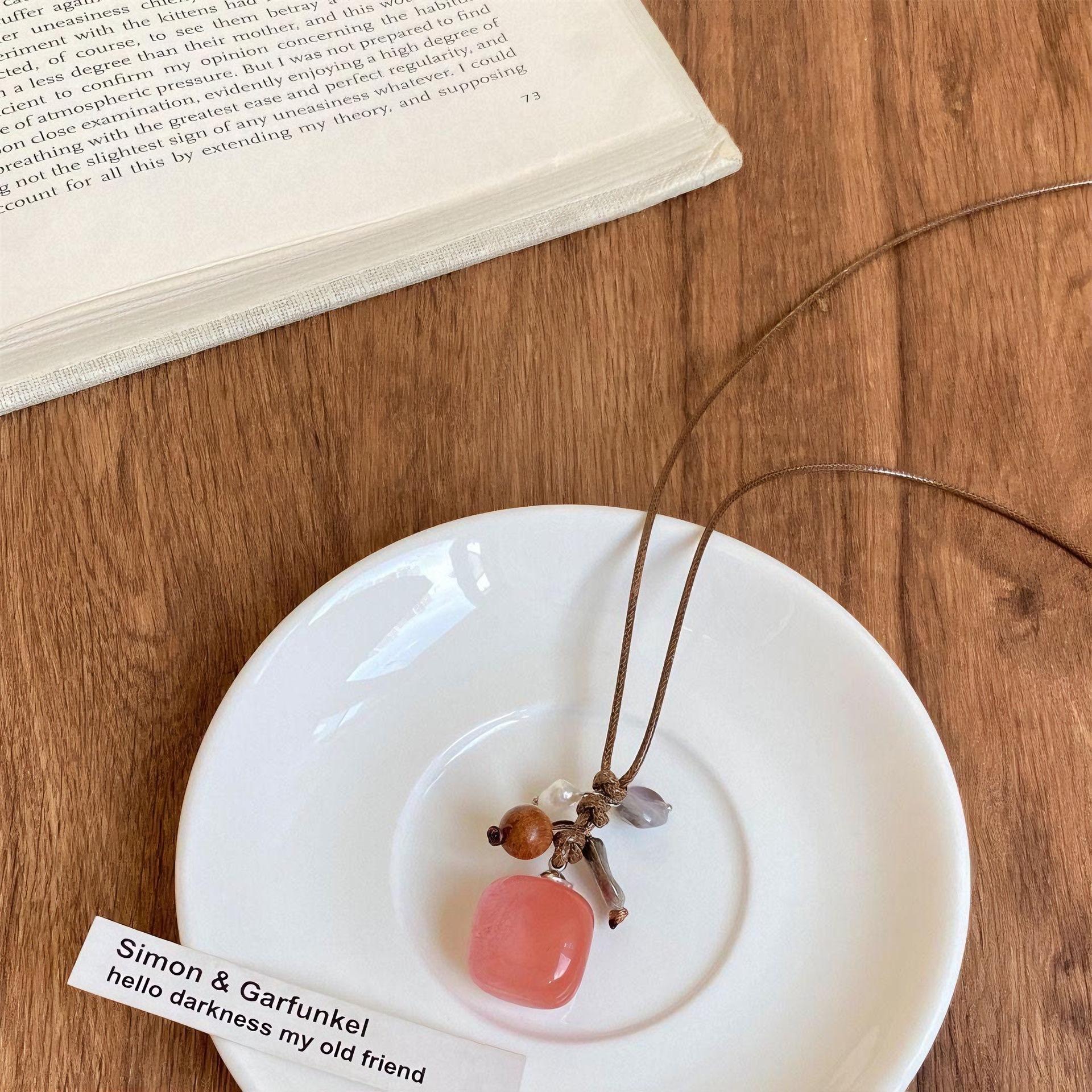 Rose quartz natural stone pearl necklace, Egg yolk natural woven necklace, Tiger eye stone natural braided nec...