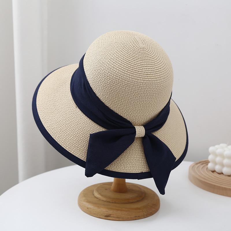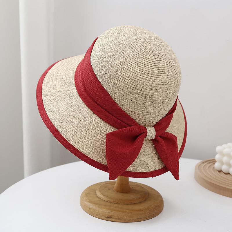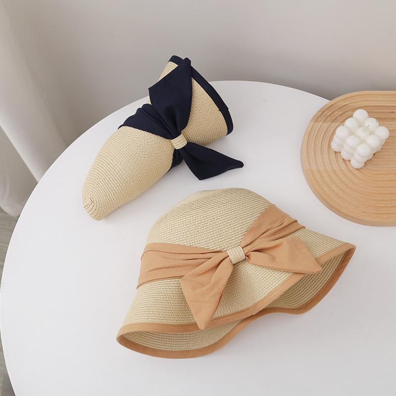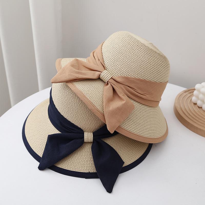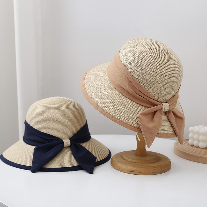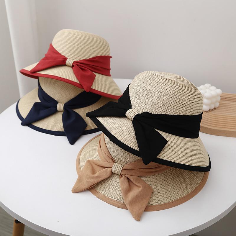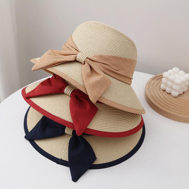 Nuevo Sombrero de Pescador de Papel con Cinta Ancha y Lazo para Mujer, Moda de Verano, Combinable, Sombrero para el Sol de Ala Ancha, Protección Solar, Sombrero de Playa, Moderno