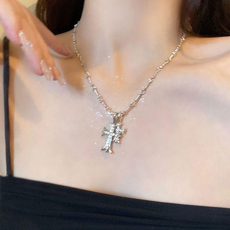 Collar largo con cruz de lujo ligero para mujer, nuevo estilo 2023, estilo frío, nicho de alta calidad, accesorios de cadena de clavícula dulces y geniales.