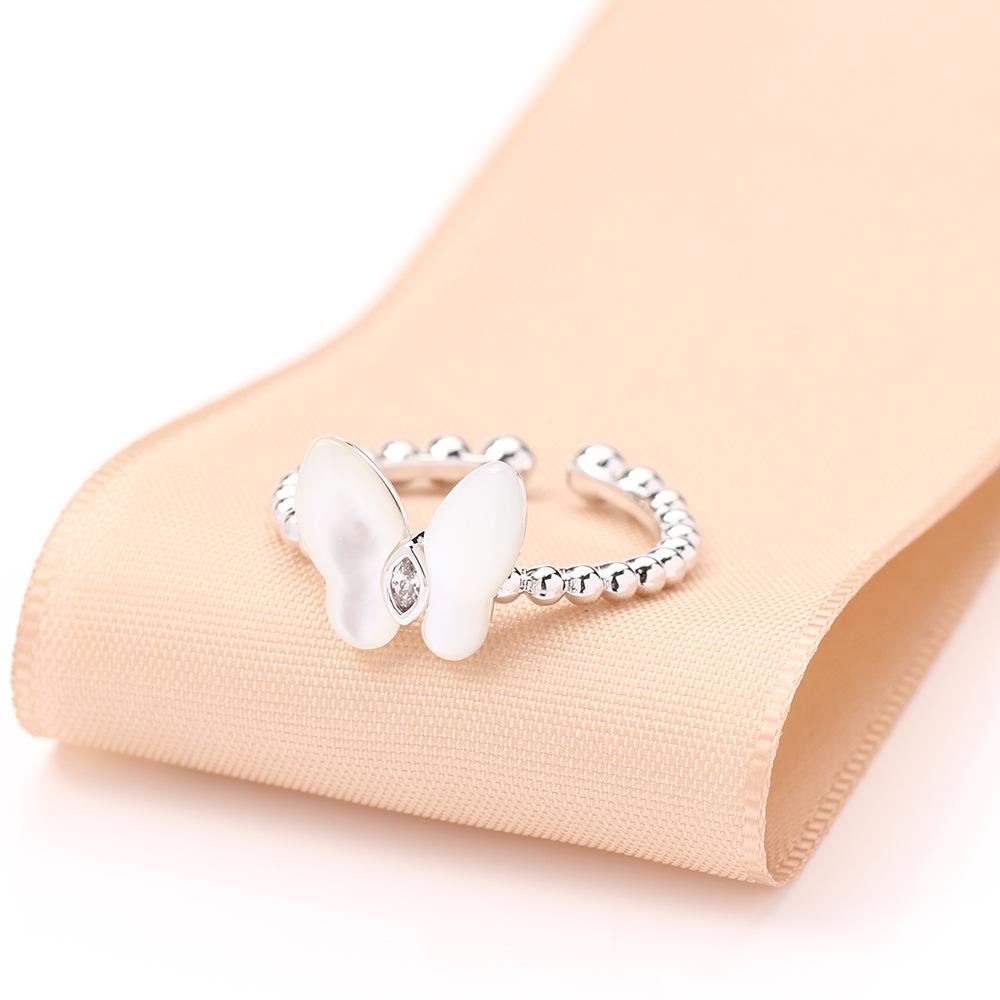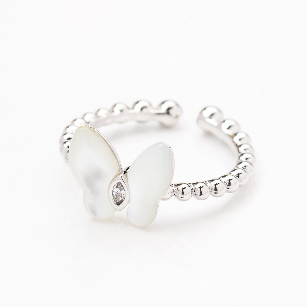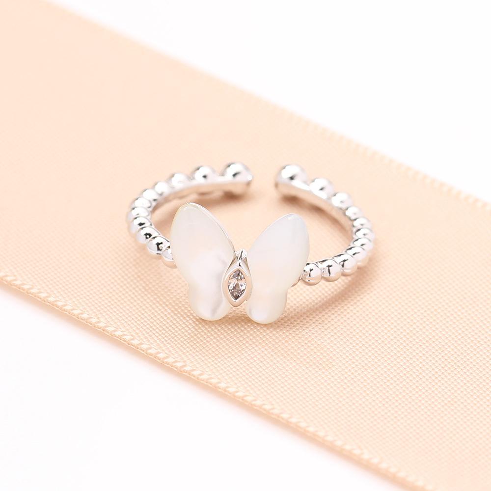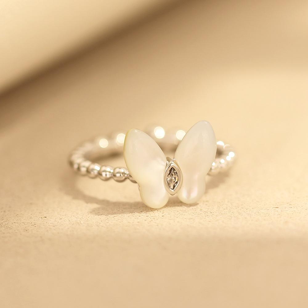 Anillo de Mariposa de Nácar Natural Simple y Versátil de Alta Gama Apertura Tamaño Ajustable Anillo para Dedo Índice Anillo de Mujer Elegante