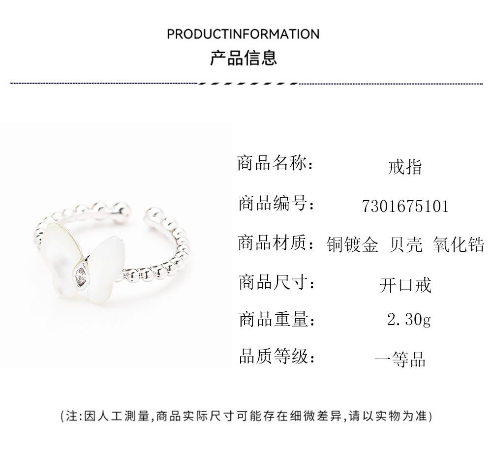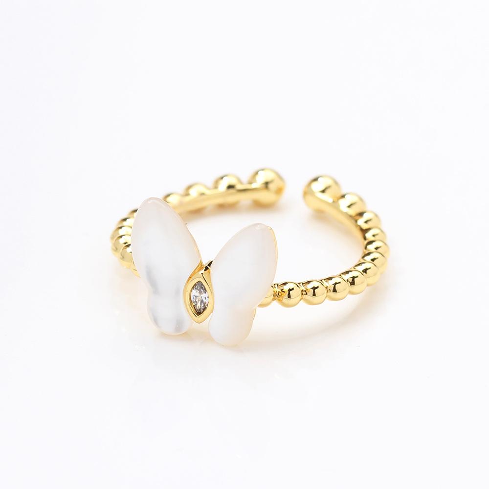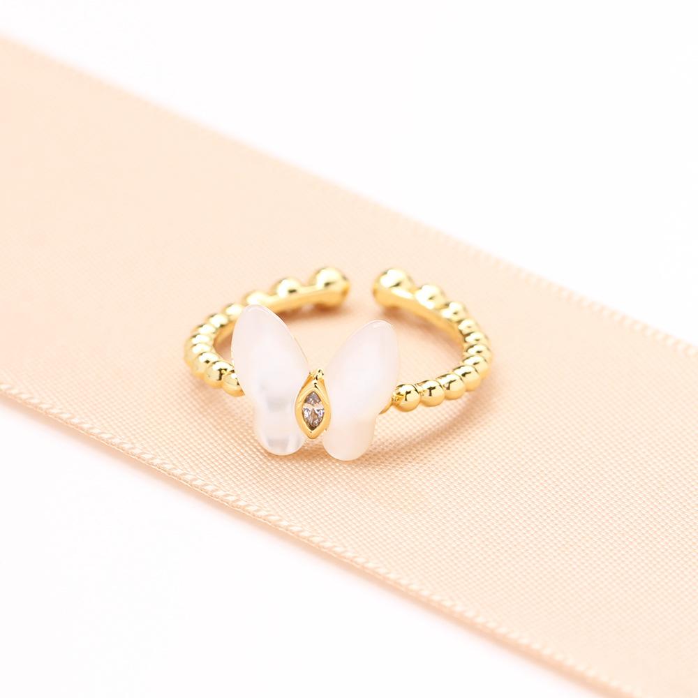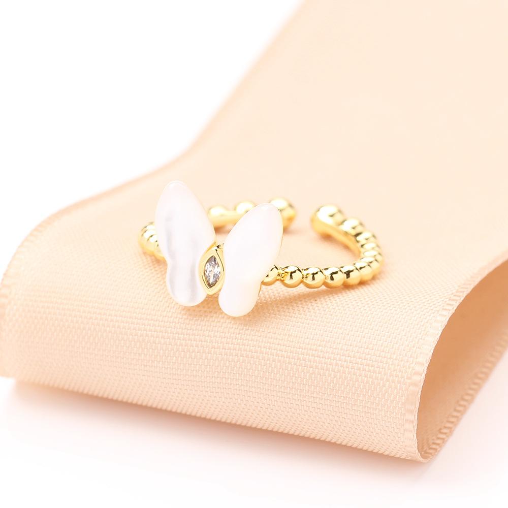 Anillo de Mariposa de Nácar Natural Simple y Versátil de Alta Gama Apertura Tamaño Ajustable Anillo para Dedo Índice Anillo de Mujer Elegante