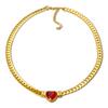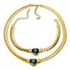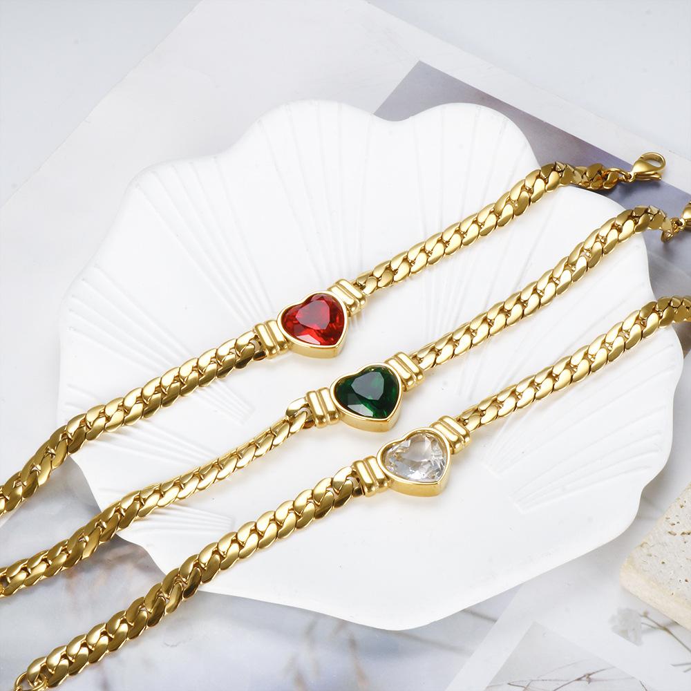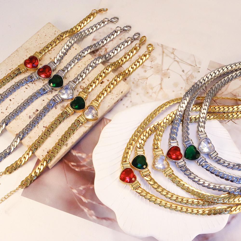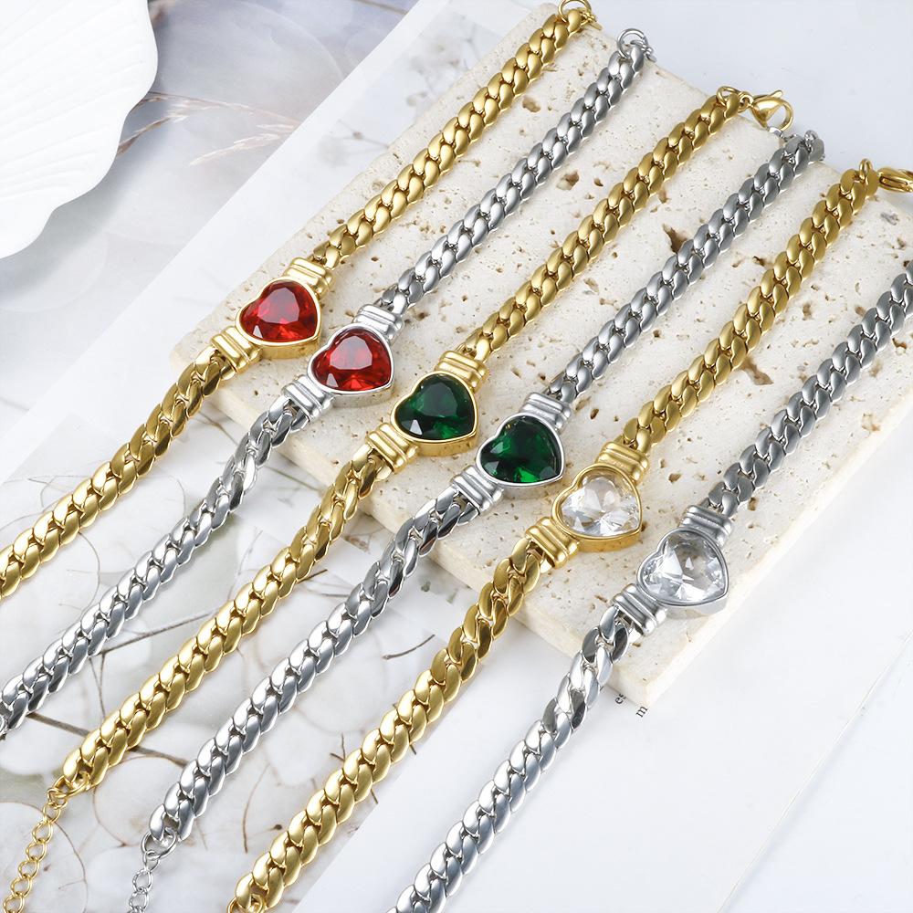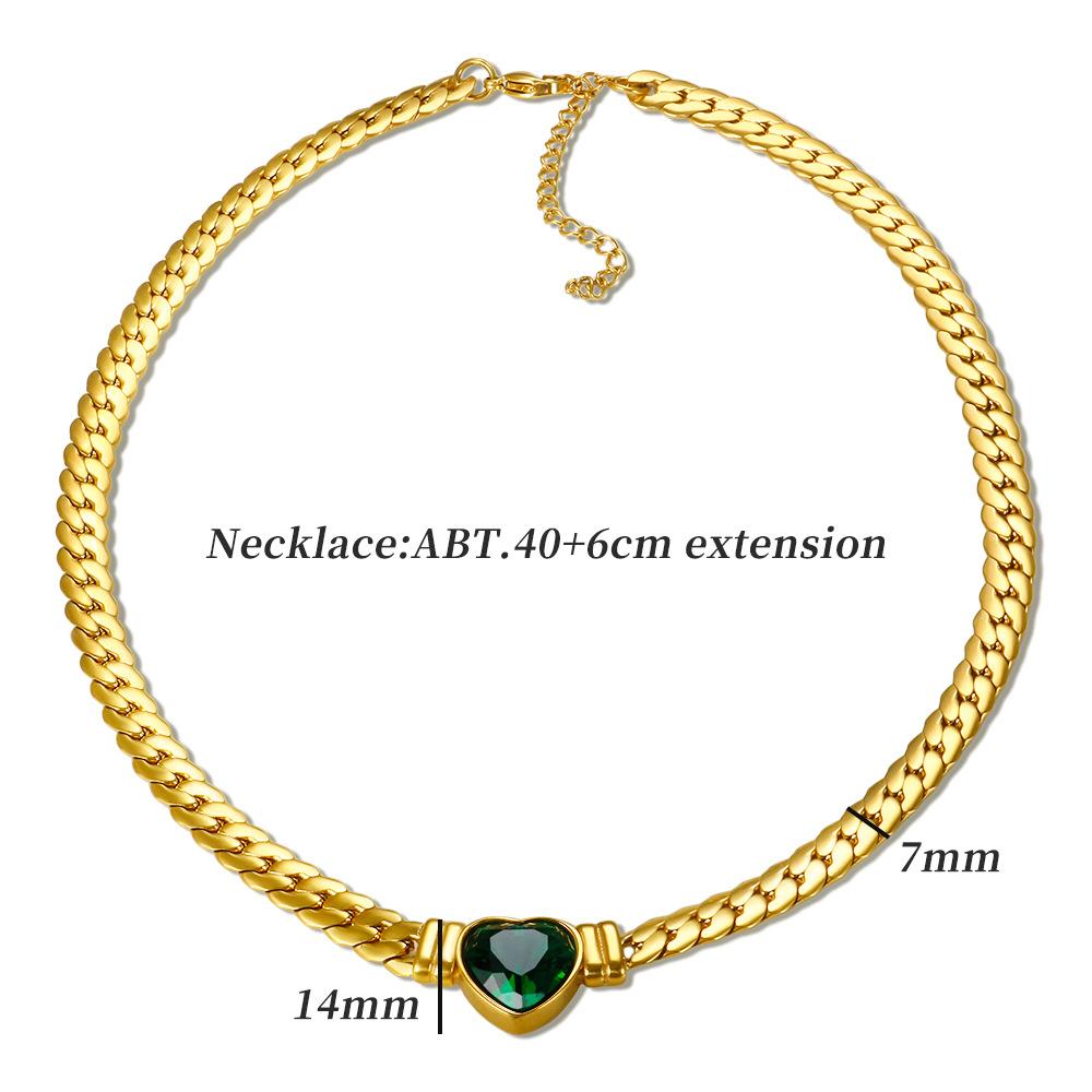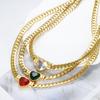 White heart-shaped zircon-steel necklace, Red heart-shaped zircon-steel necklace, Green heart zircon-steel nec...