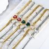 Pulsera europea y americana de acero de titanio con circonita verde amorosa, moda versátil, no se decolora, temperamento retro simple, collar de diamantes