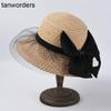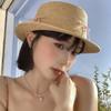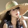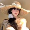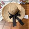 Sombrero de Paja Rafi con Lazo Francés para Mujer Verano Ala Ancha Sombrilla Protector Solar Sombrero Vacaciones Playa Orilla del Mar Sombrero Tejido