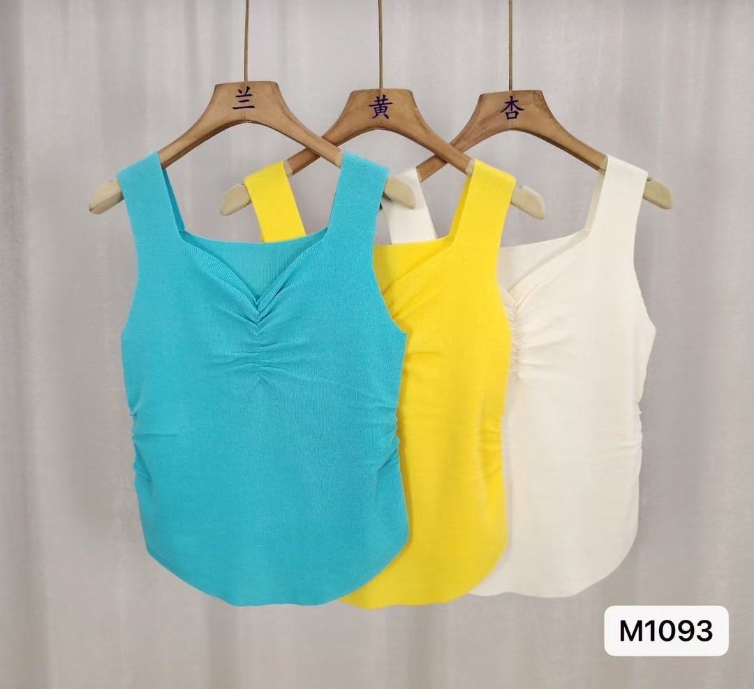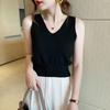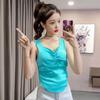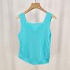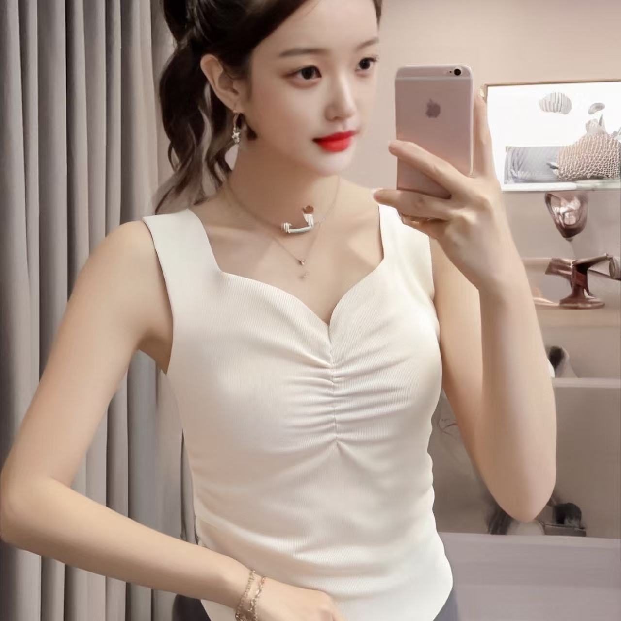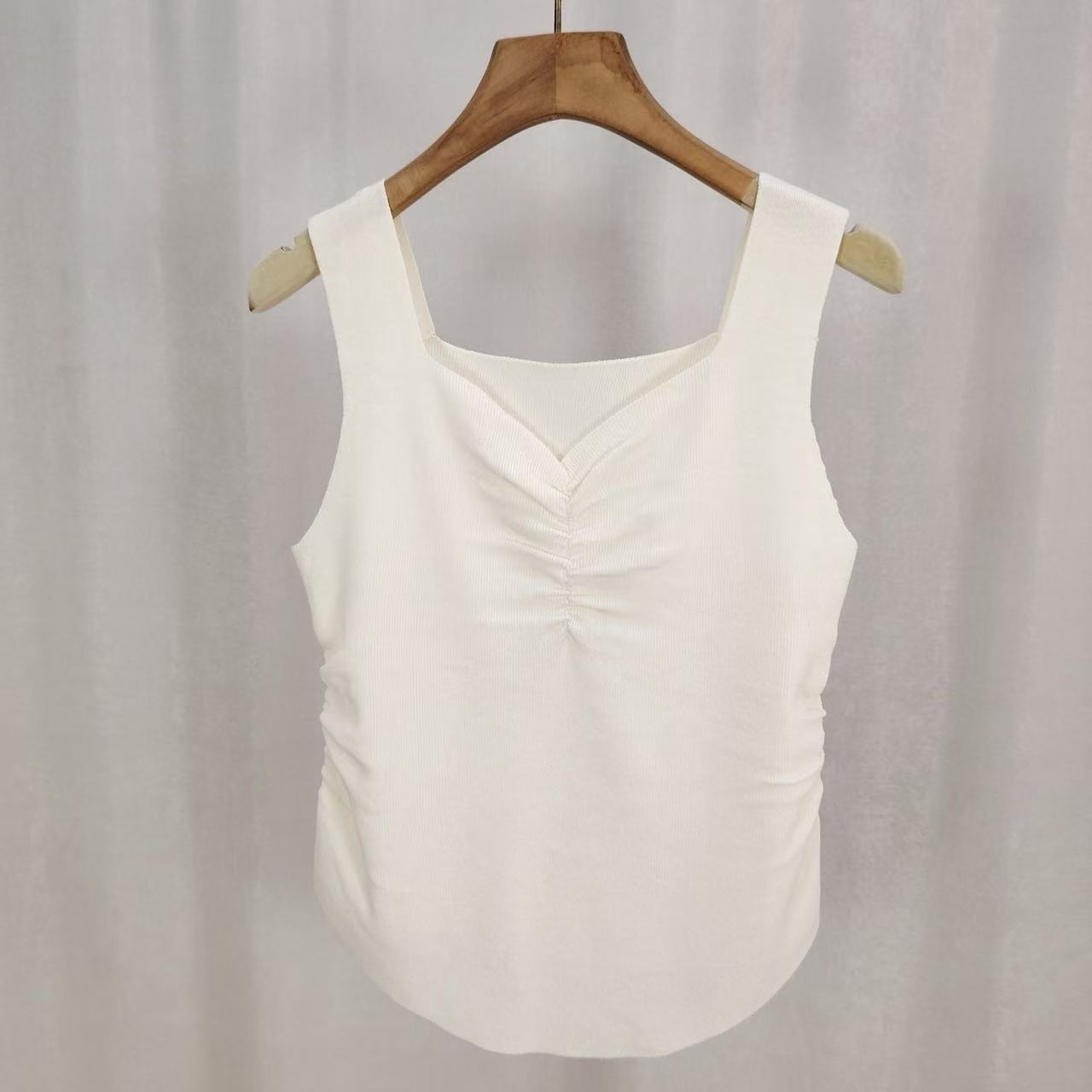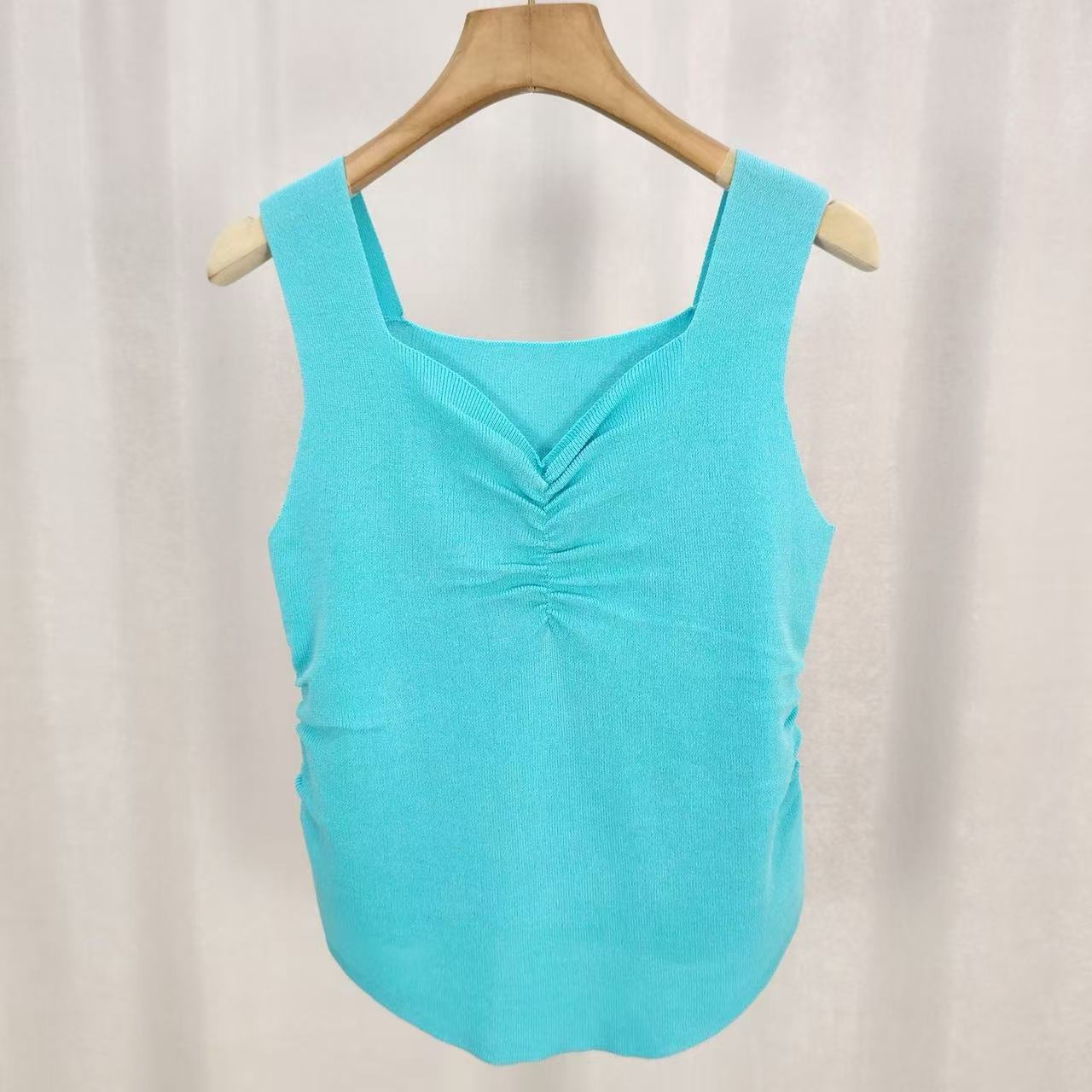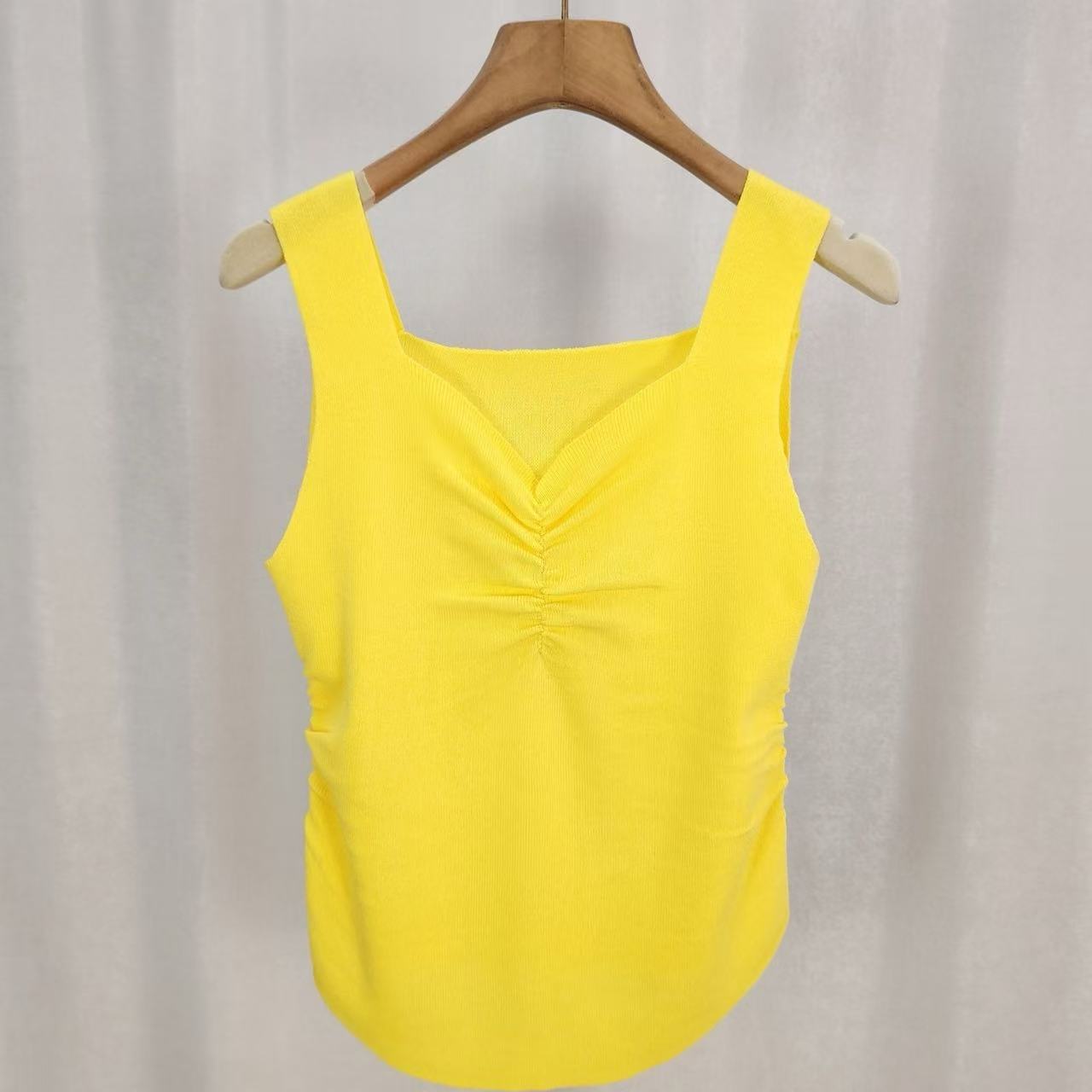 Verano Nuevo Ajustado Plisado Tejido Camisola Corta Color Sólido Sin Mangas Ropa Interior Ropa Exterior Top Básico para Mujer