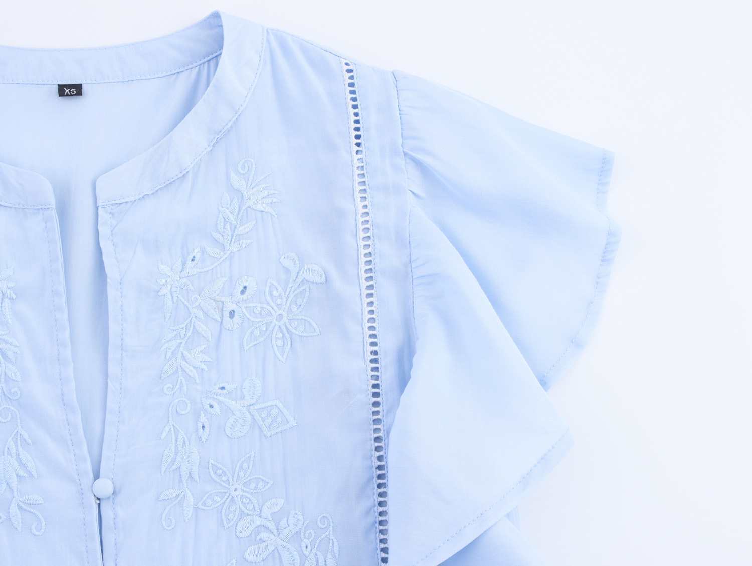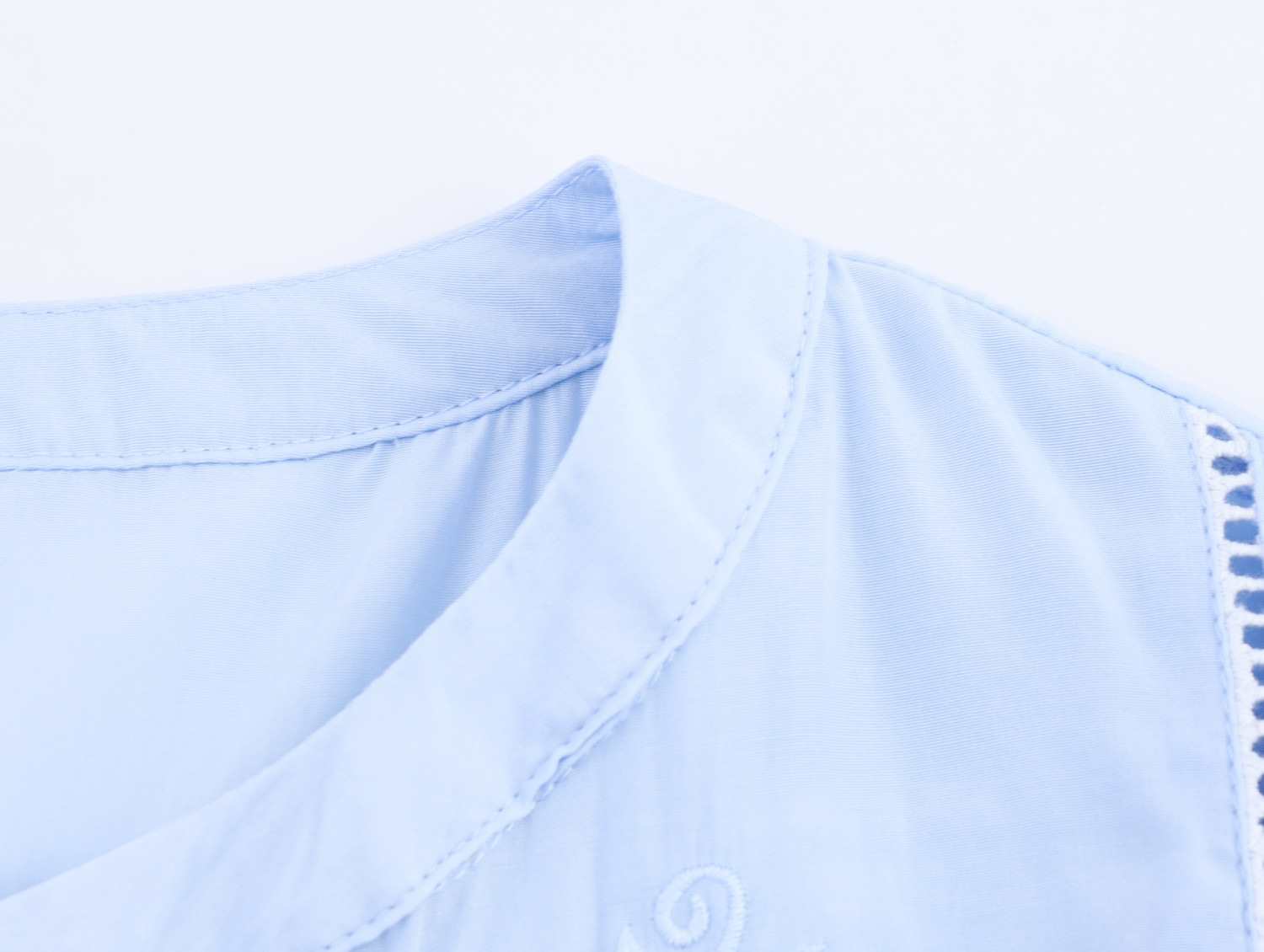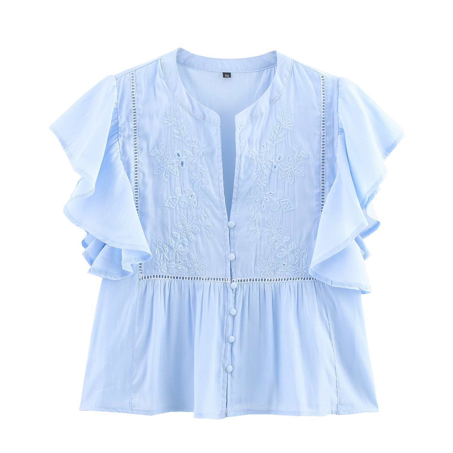 Camisa Bordada Comercio Exterior Nuevo Verano Capas Manga Corta Decoración Venta al por Mayor Estilo Europeo y Americano Color de la Imagen Algodón