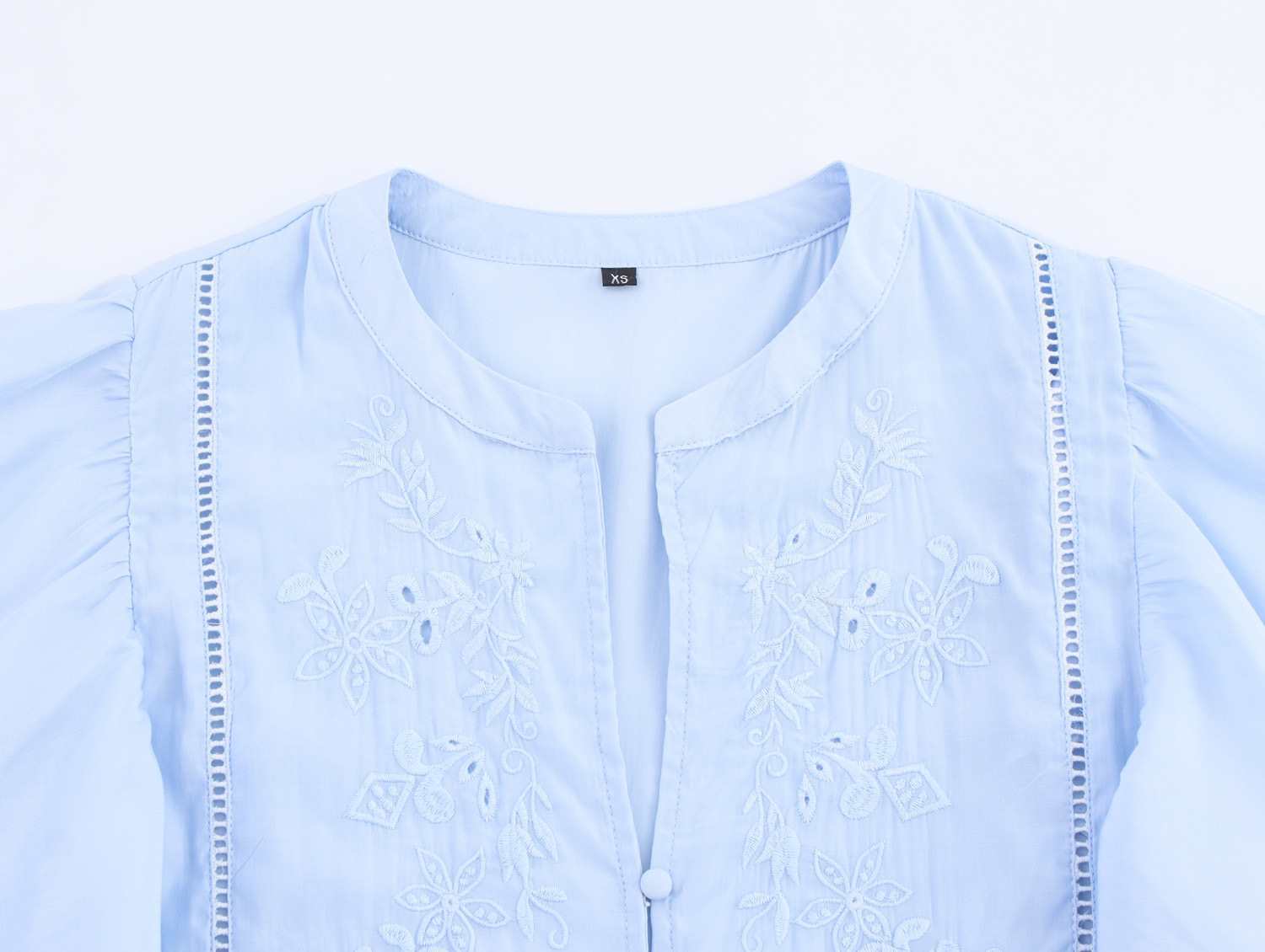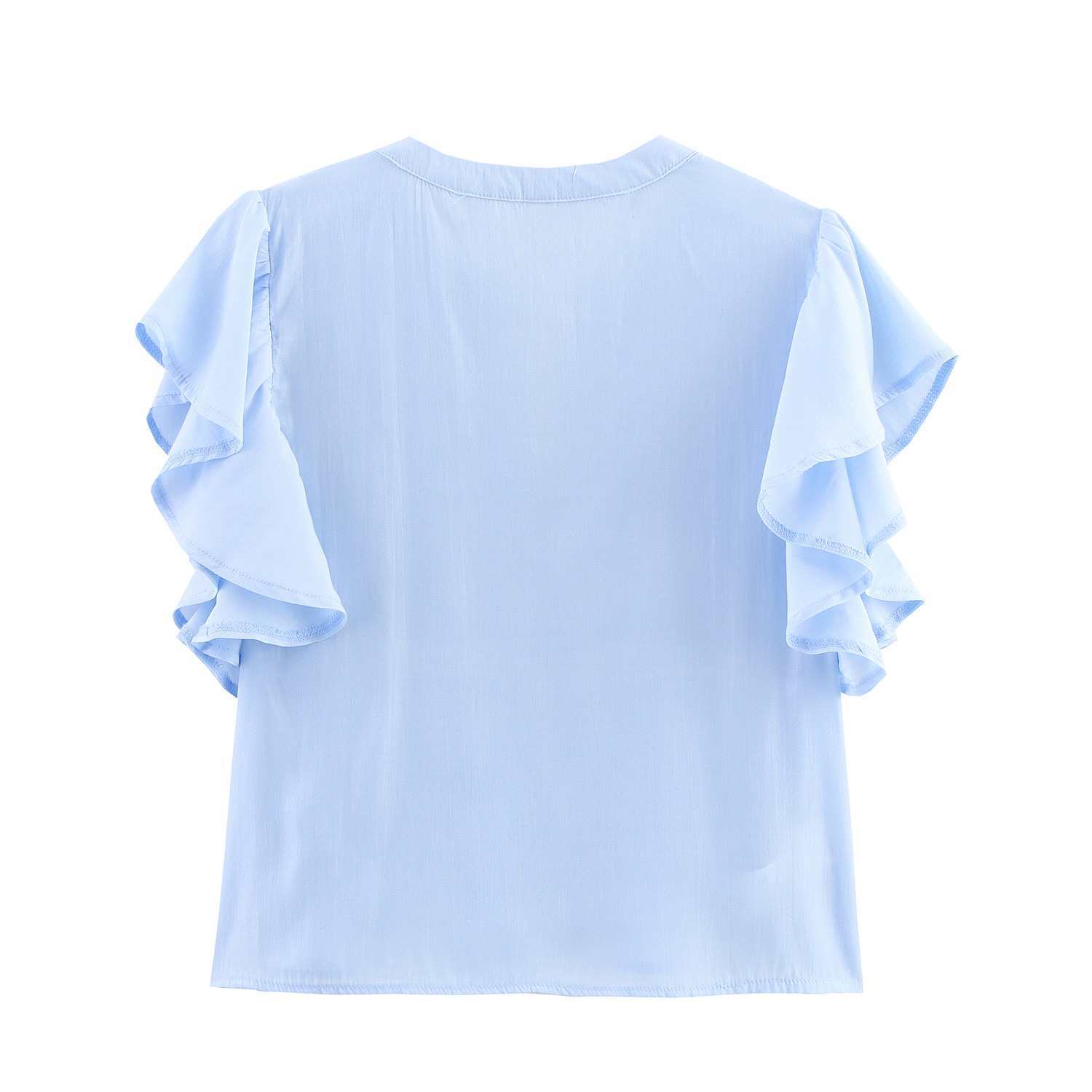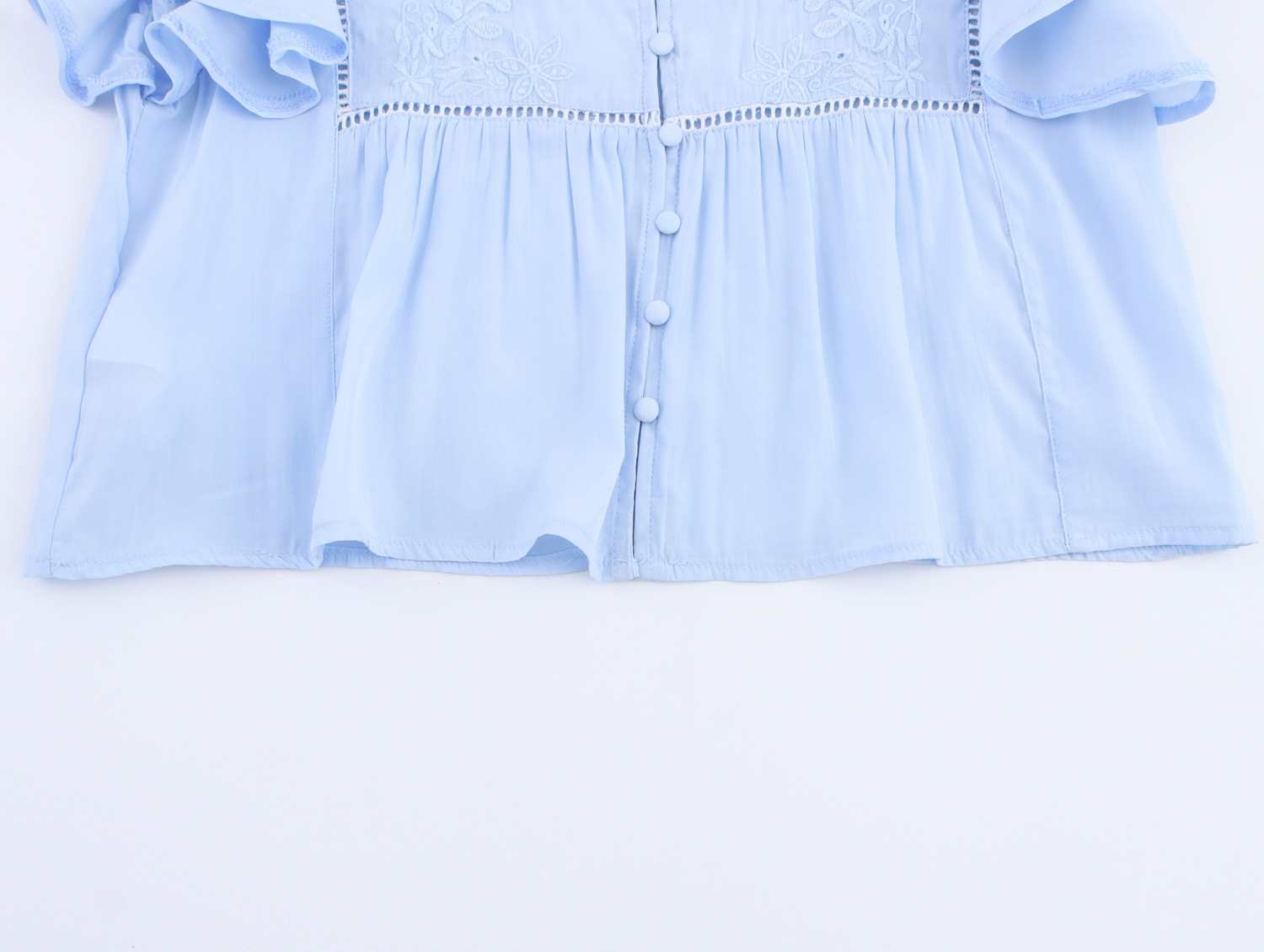 Camisa Bordada Comercio Exterior Nuevo Verano Capas Manga Corta Decoración Venta al por Mayor Estilo Europeo y Americano Color de la Imagen Algodón