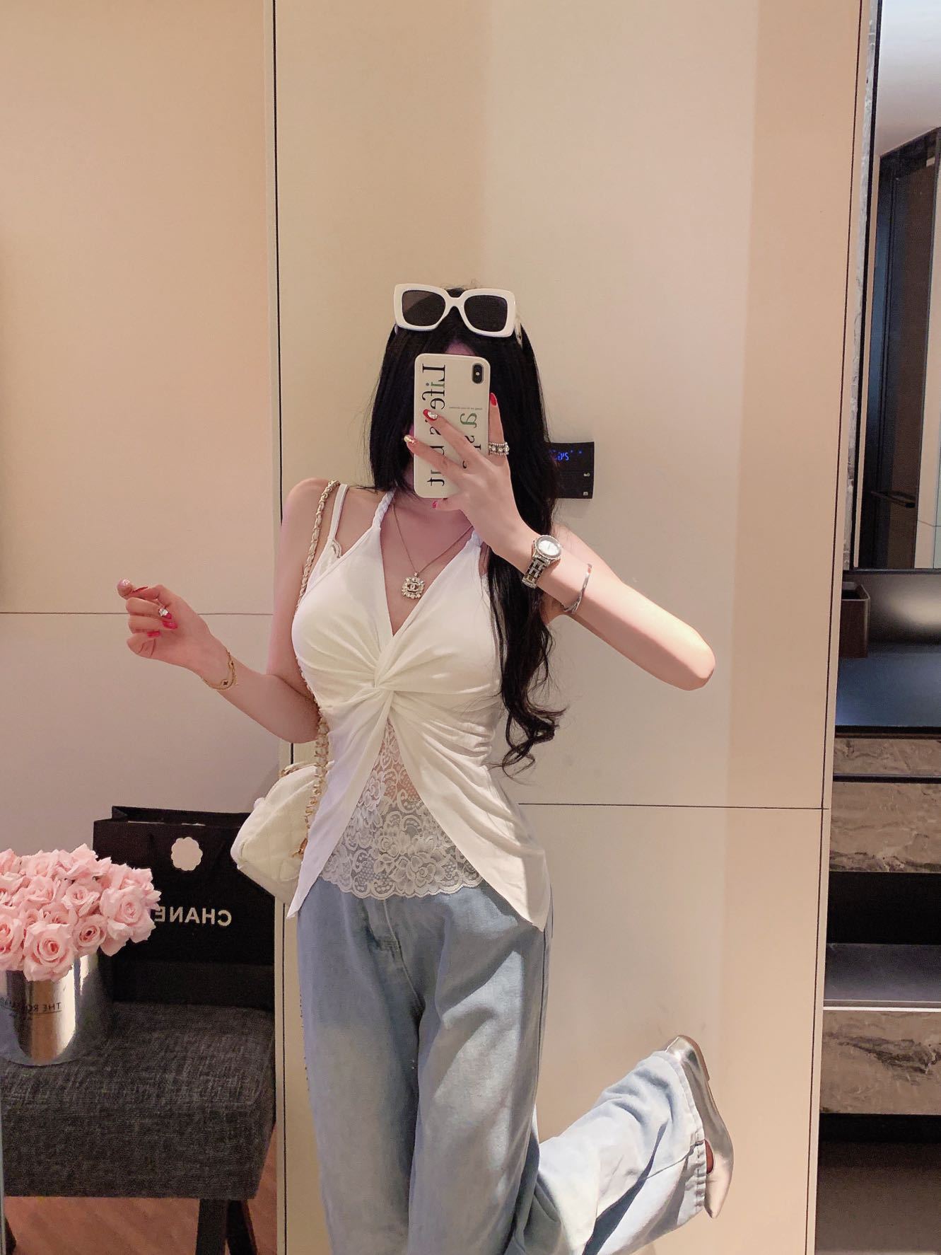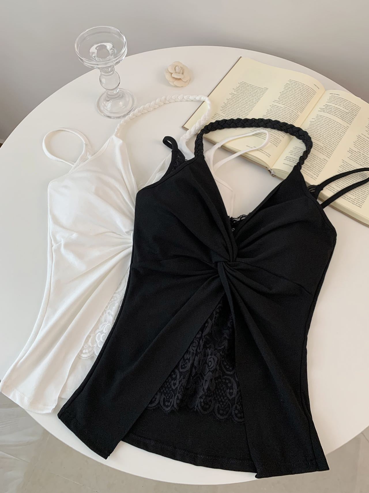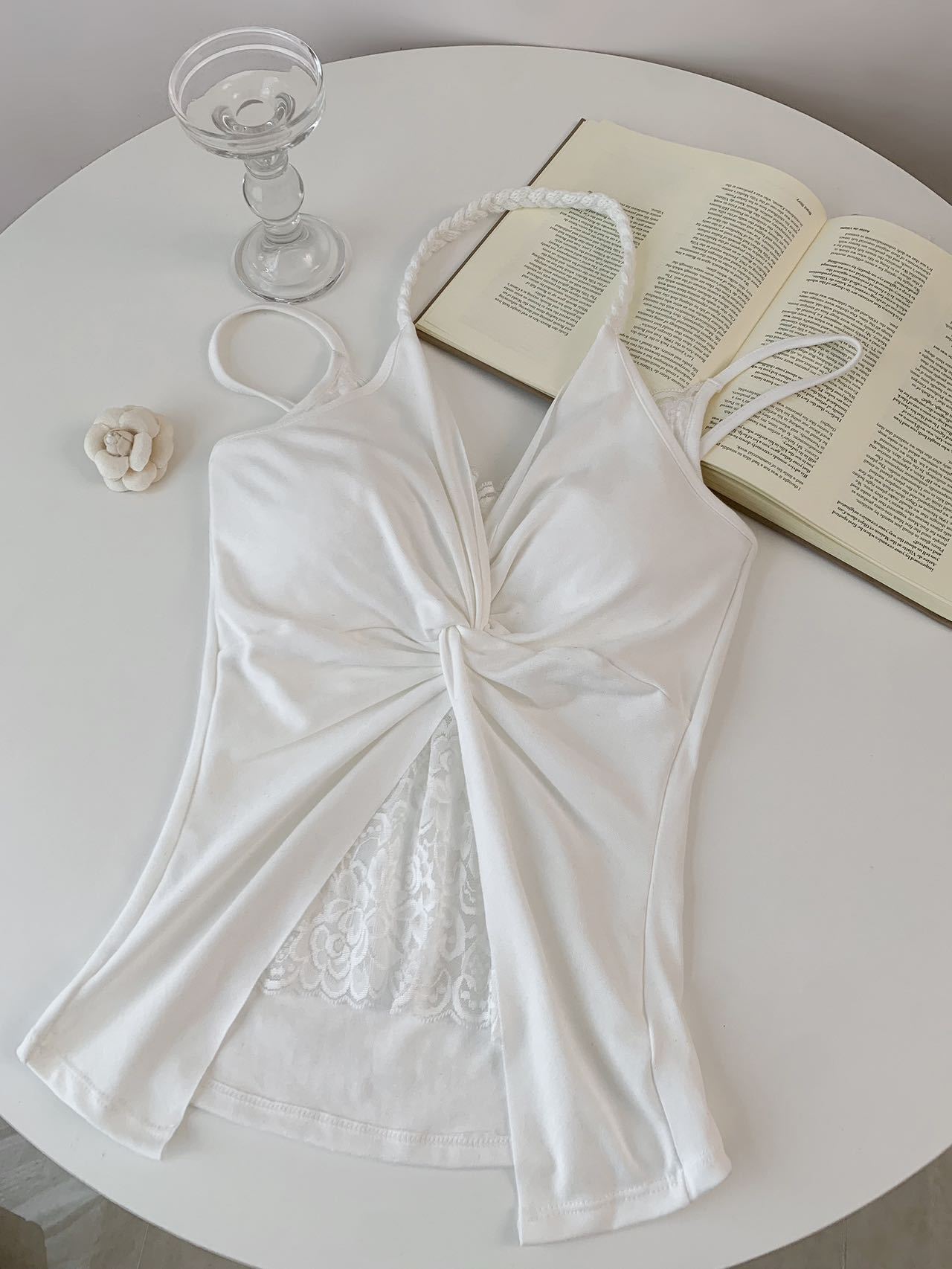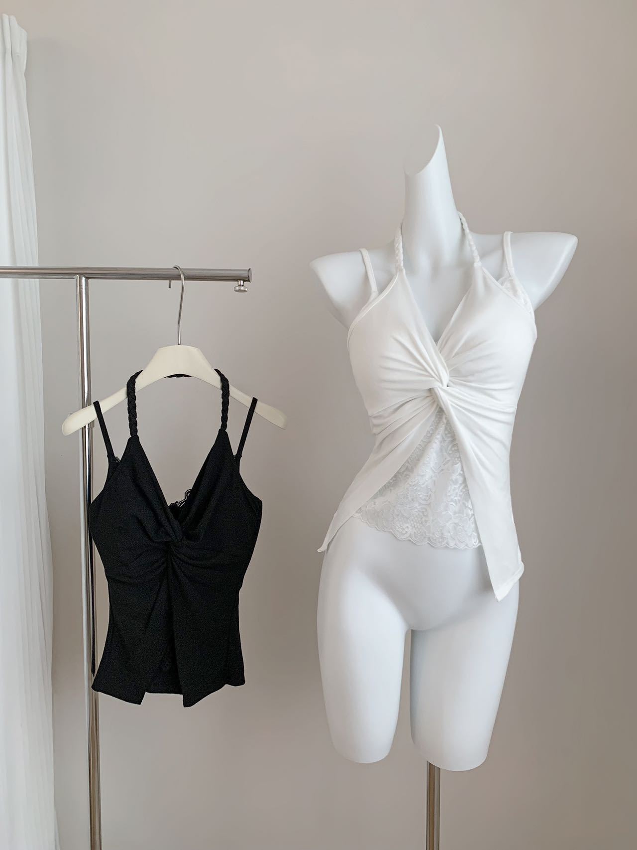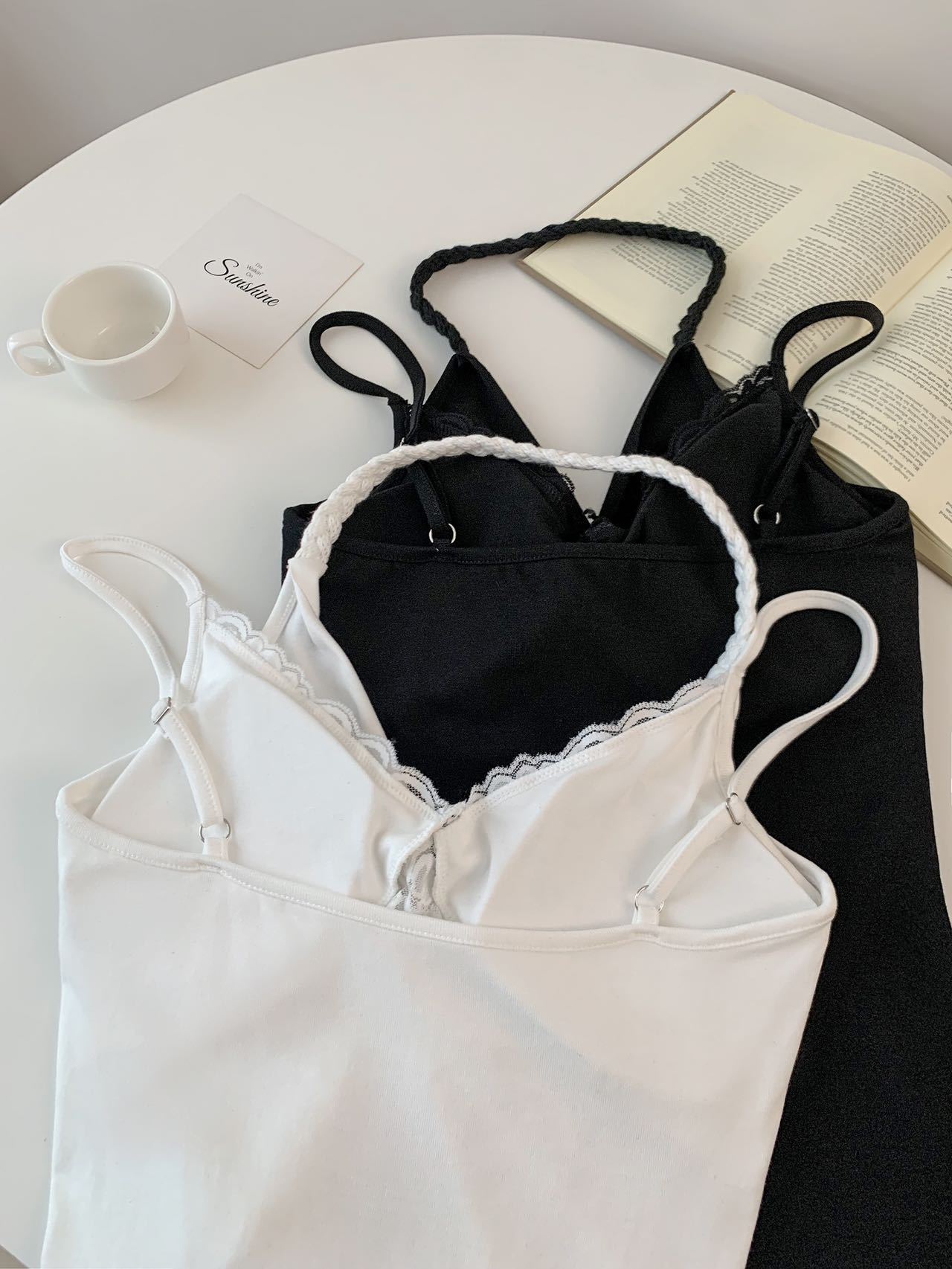 Deseo Puro Sexy Encaje Halter Cuello Hermosa Espalda Sujetador Chaleco Integrado Ropa Exterior Chica Caliente Adelgazante Cuello en V Camisola Top