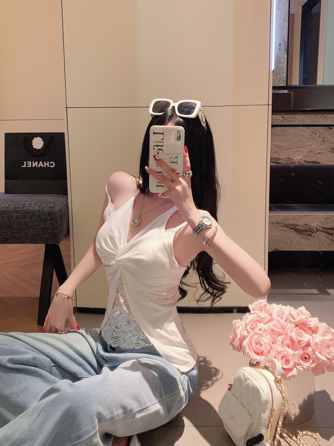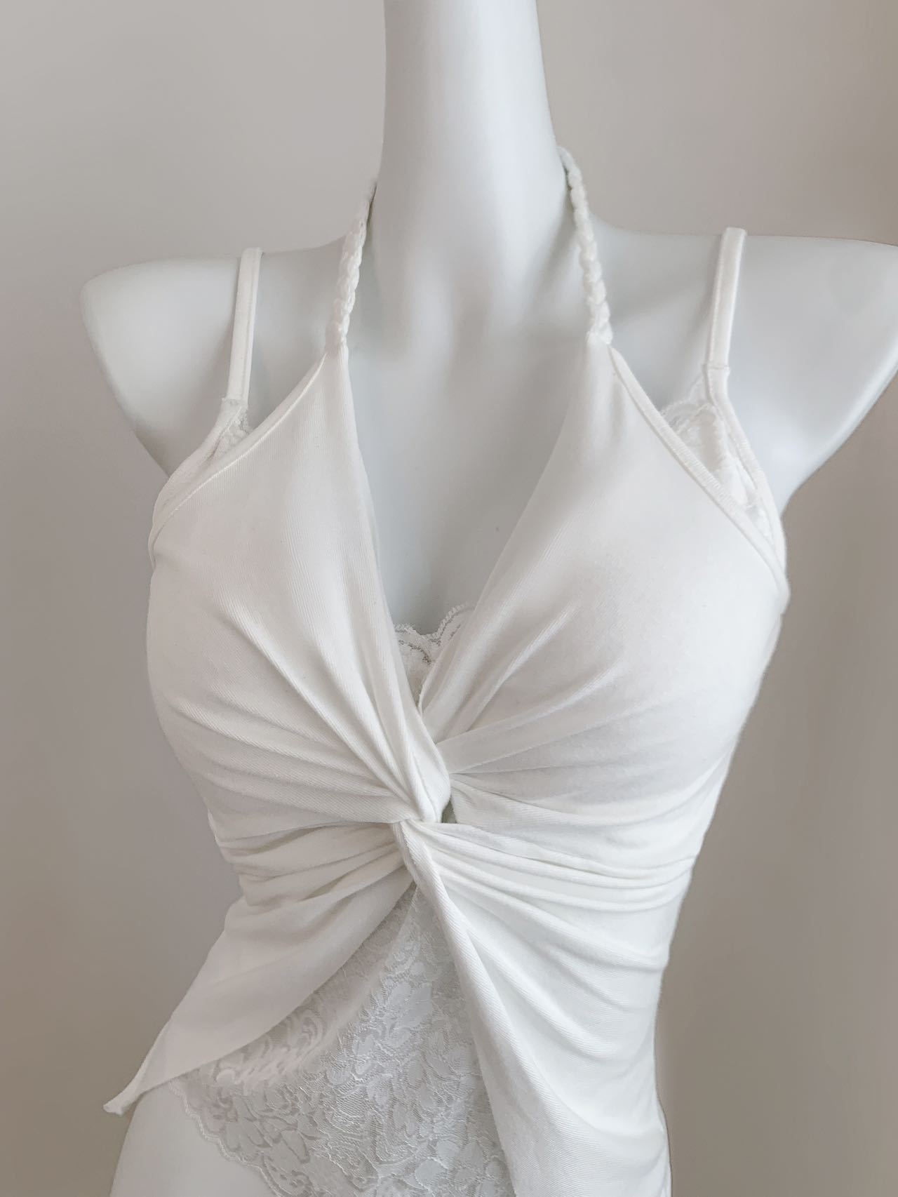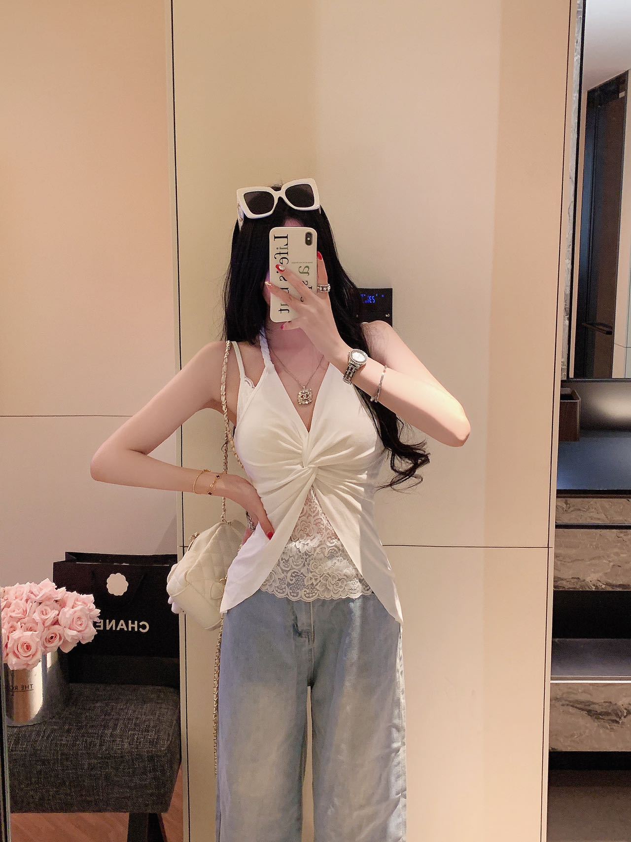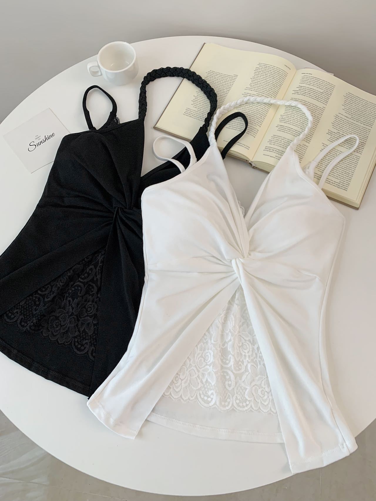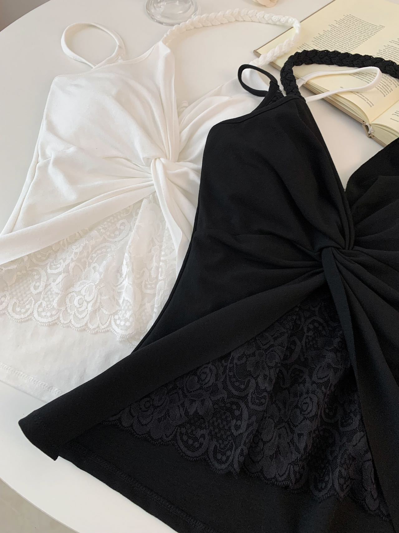 Deseo Puro Sexy Encaje Halter Cuello Hermosa Espalda Sujetador Chaleco Integrado Ropa Exterior Chica Caliente Adelgazante Cuello en V Camisola Top