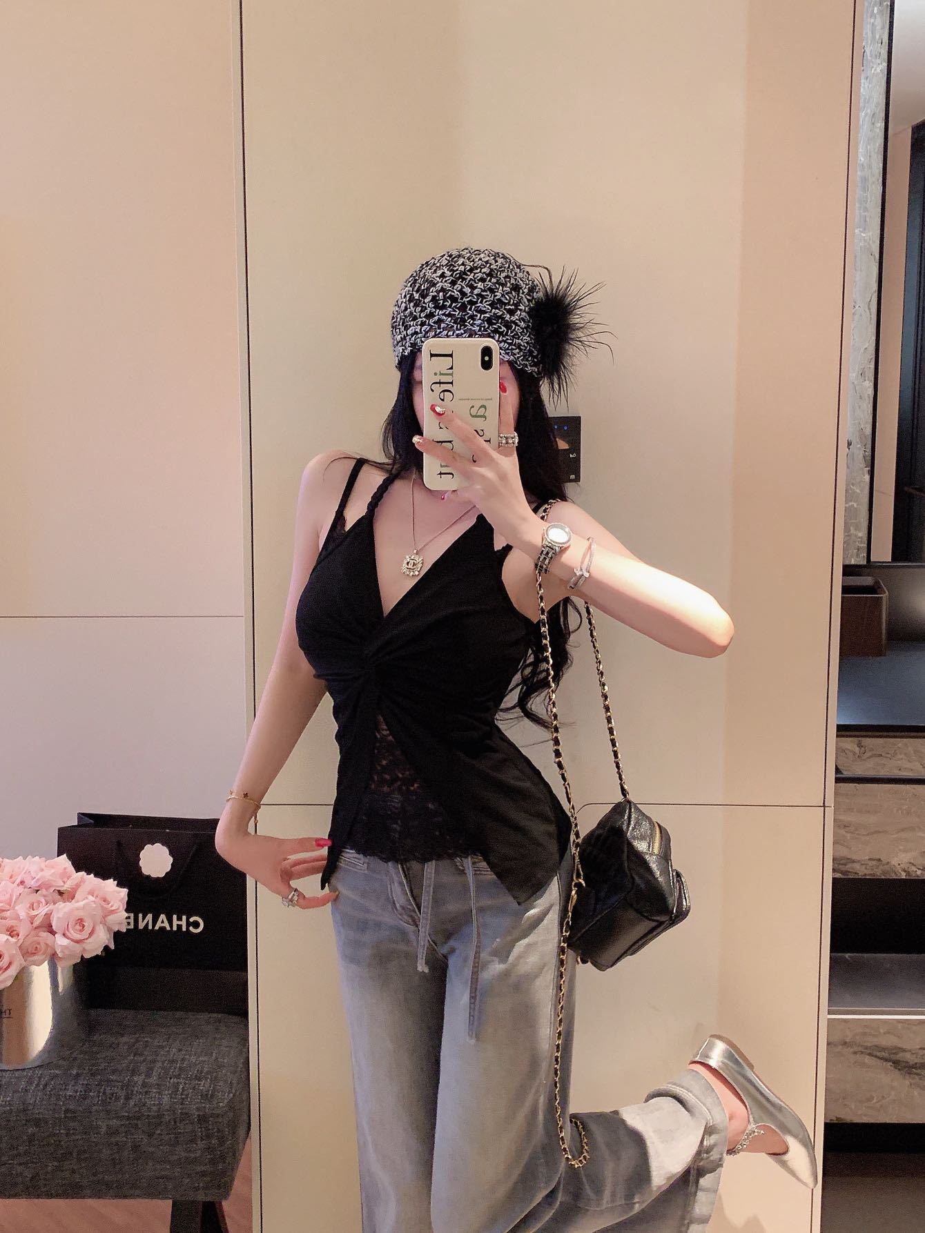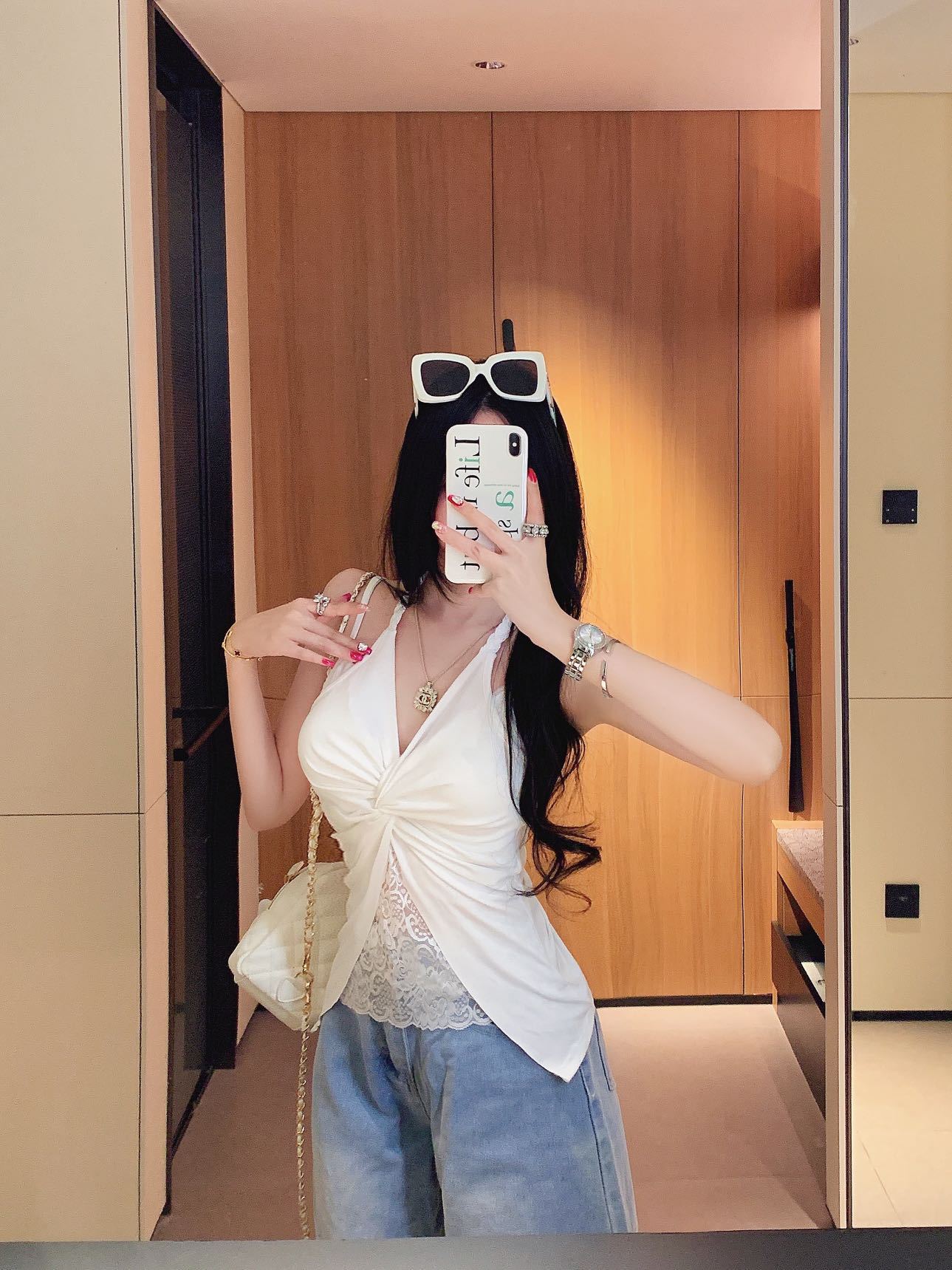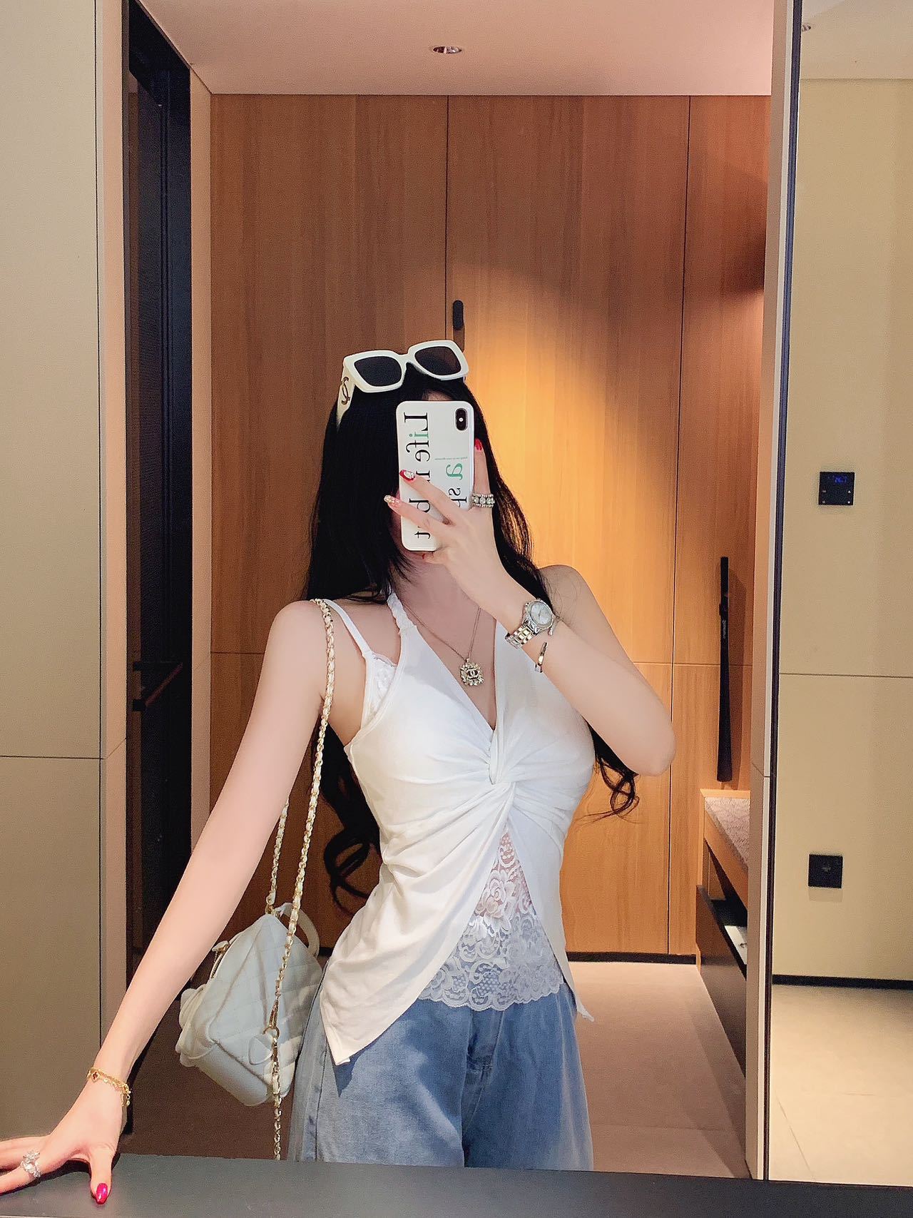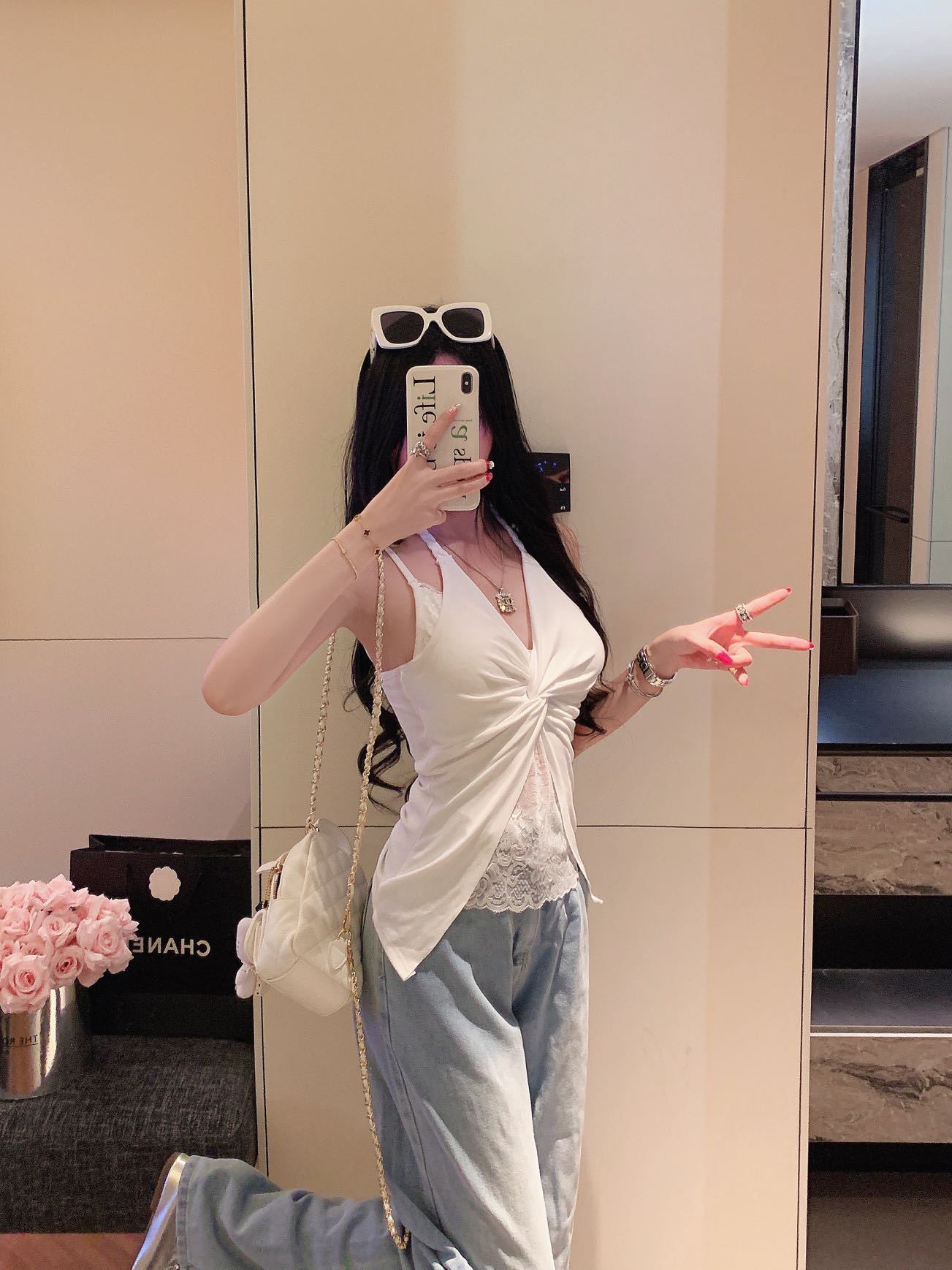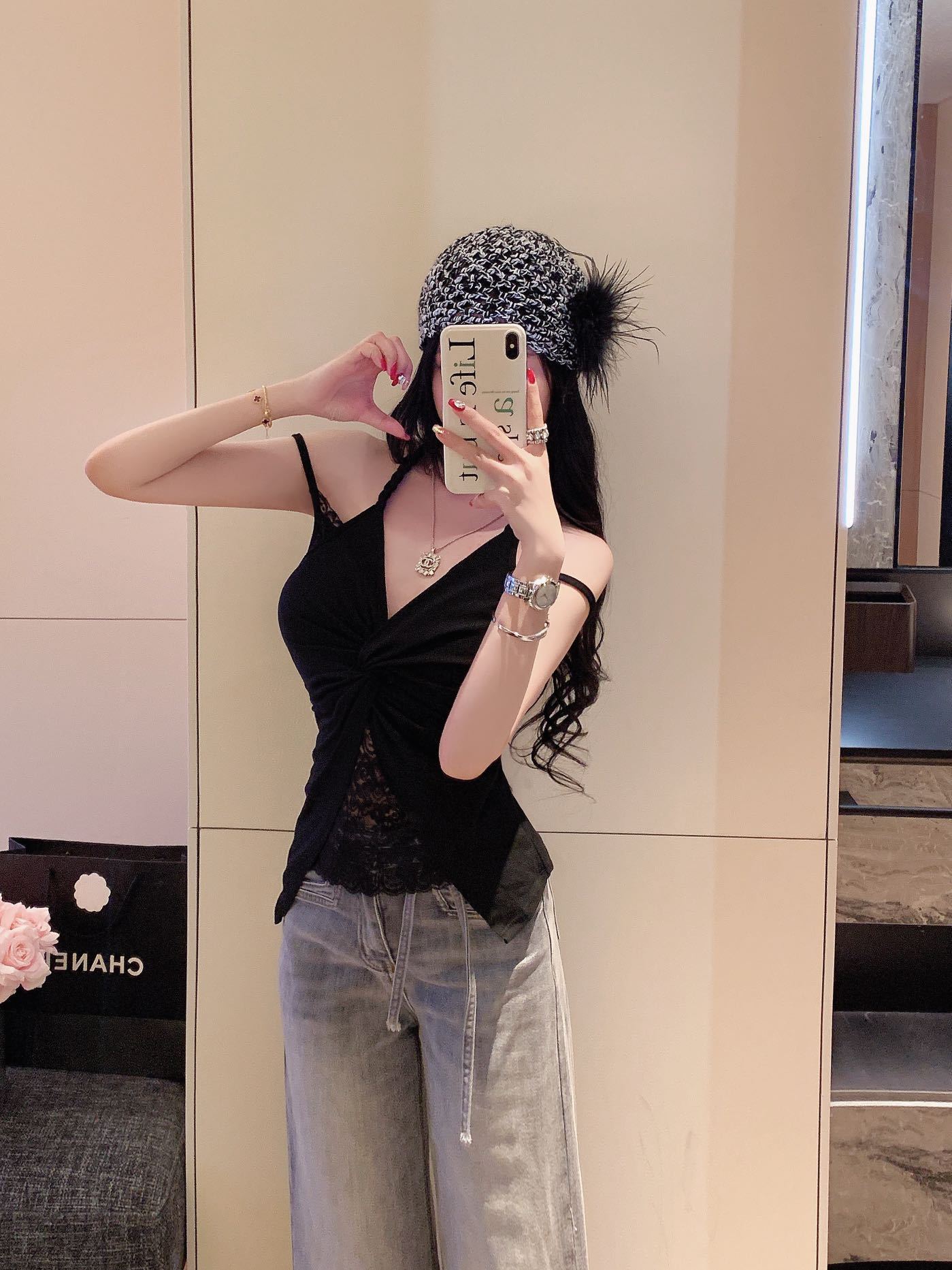 Deseo Puro Sexy Encaje Halter Cuello Hermosa Espalda Sujetador Chaleco Integrado Ropa Exterior Chica Caliente Adelgazante Cuello en V Camisola Top