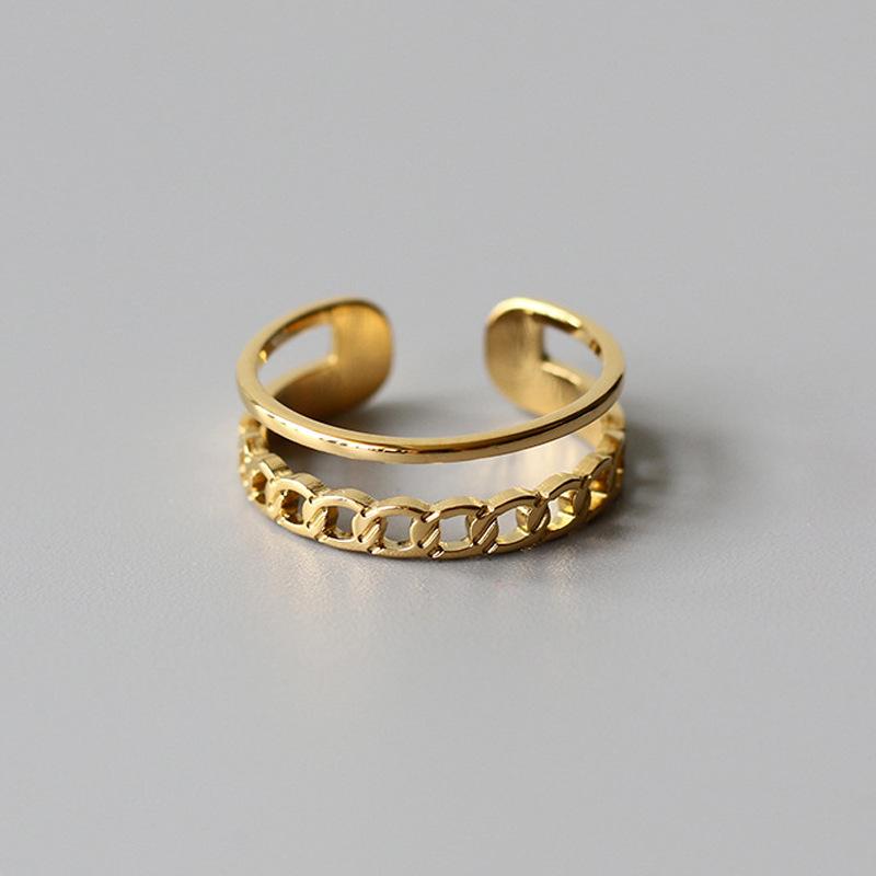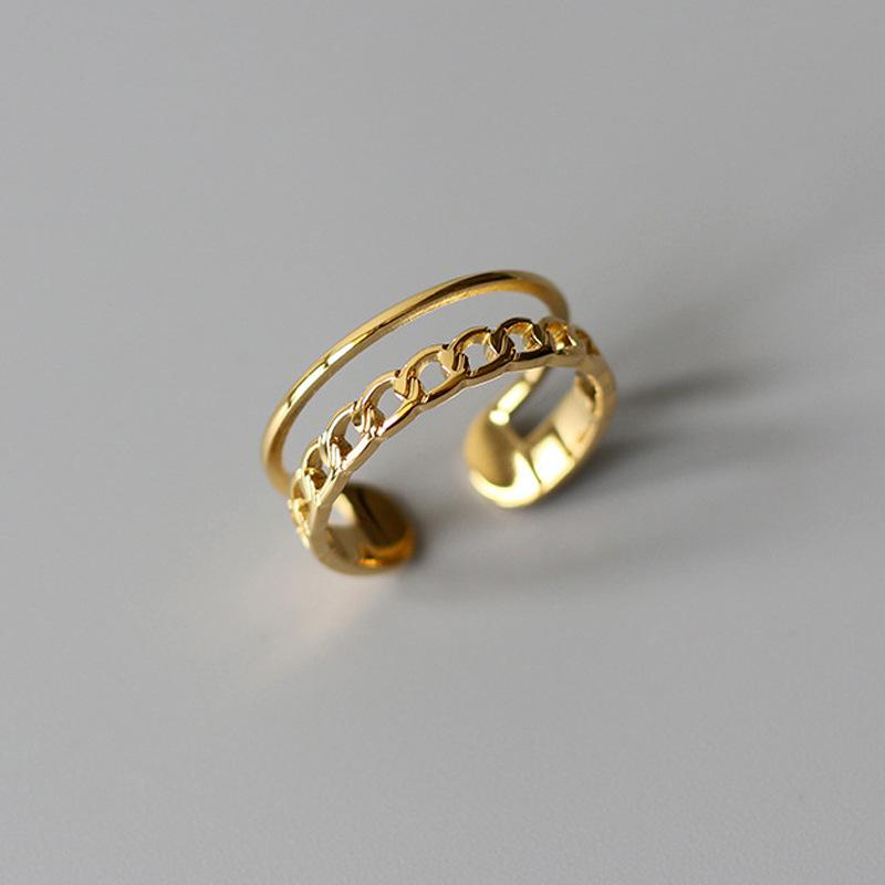 Nuevo anillo de cadena de doble capa Moda europea y americana personalidad net red Joker simple abierto anillo de dedo índice suministro de comercio electrónico