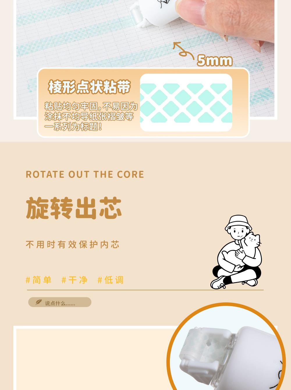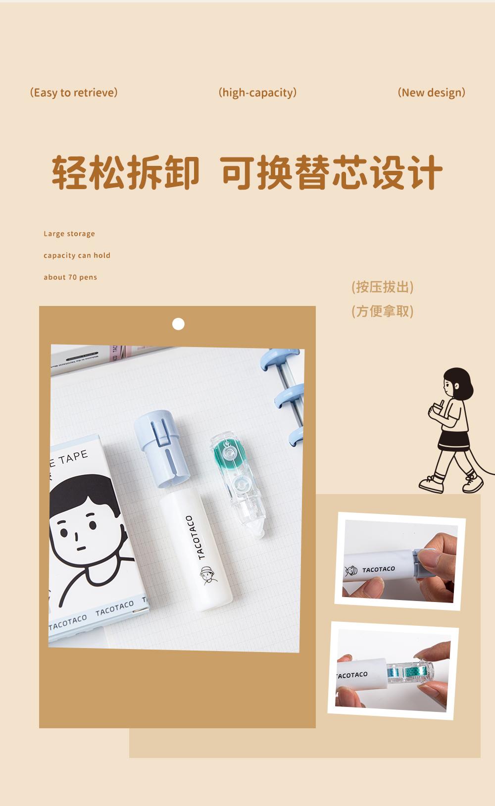 Cinta Correctora de Gran Capacidad con Punto Adhesivo Giratorio Clase 3-2 Núcleo Transparente Reemplazable Estilo Ins de Alto Valor para Estudiantes
