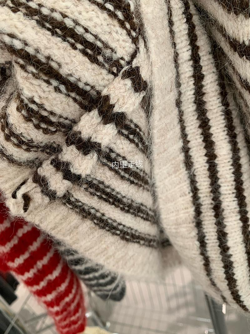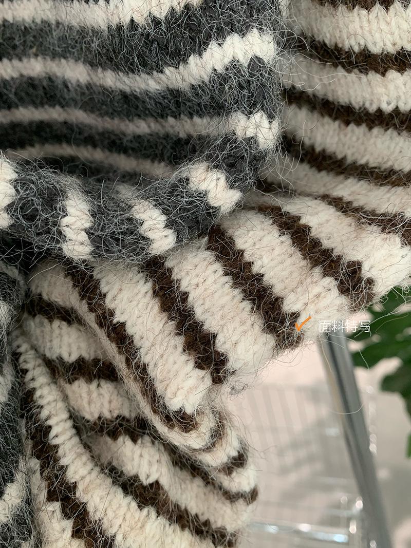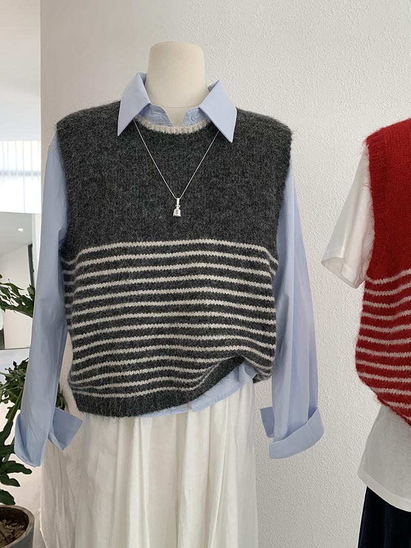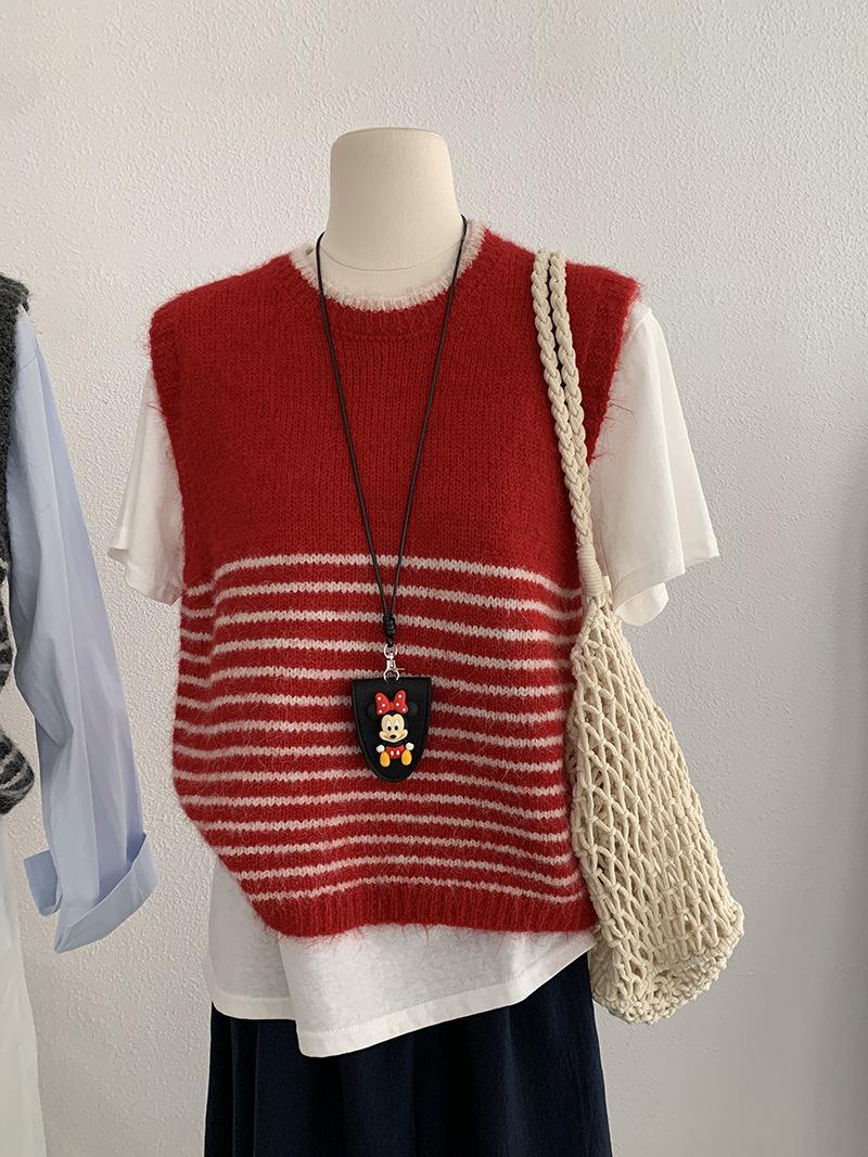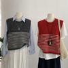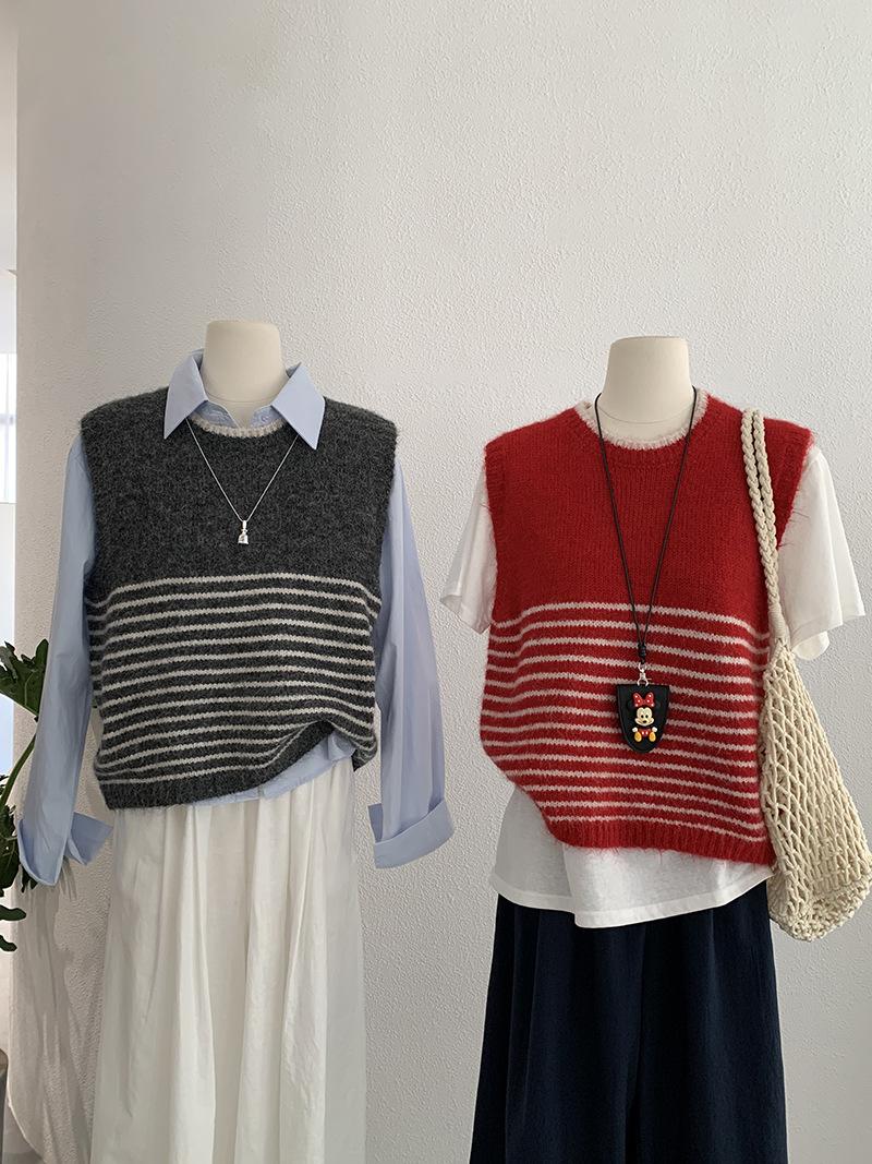 Omalai Chaleco de Punto sin Mangas con Cuello Redondo y Rayas en Contraste Principios de Otoño Capa Superior Versátil Coreana Foto Real 4037