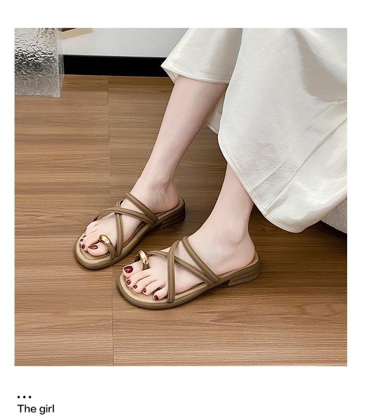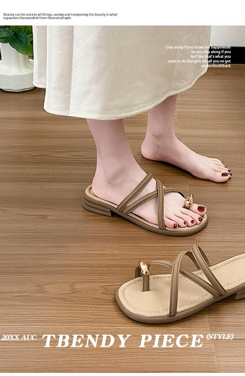 Pantuflas para Mujer Verano para Exterior 2025 Nuevas Retro Nicho Sandalias Estilo Coreano Planas de Hada Vacaciones Playa Zapatos de Mar