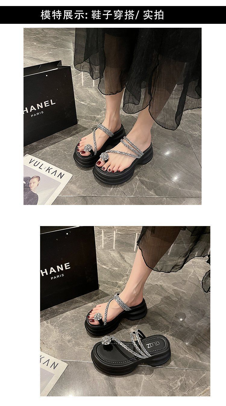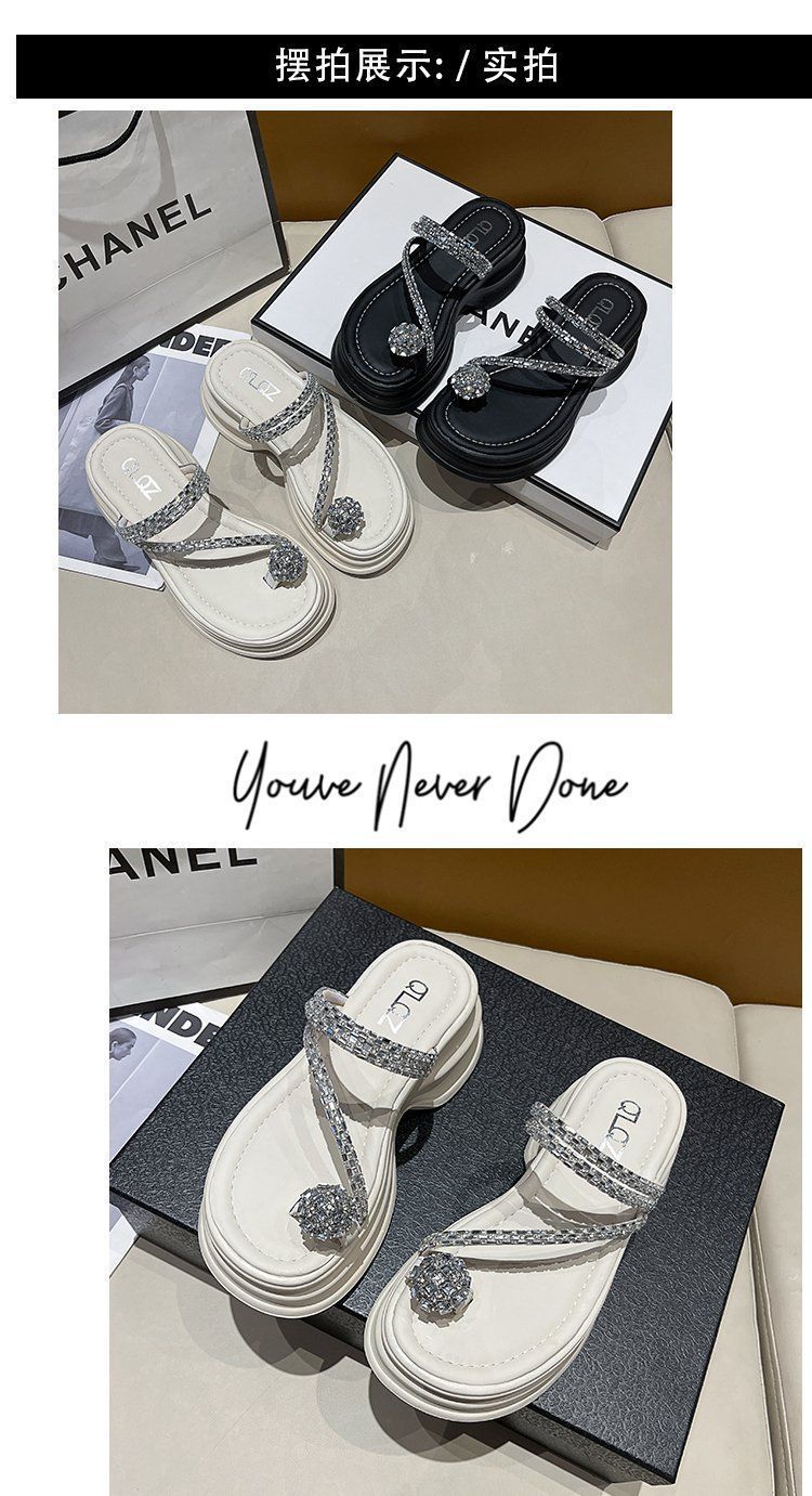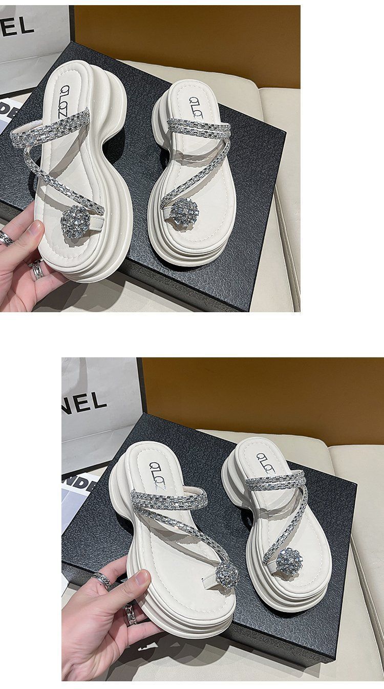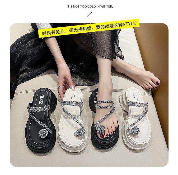 Sandalias de plataforma con punta de diamantes de imitación para mujer, estilo hada, combinables con todo, ¡novedad en verano de 2024!