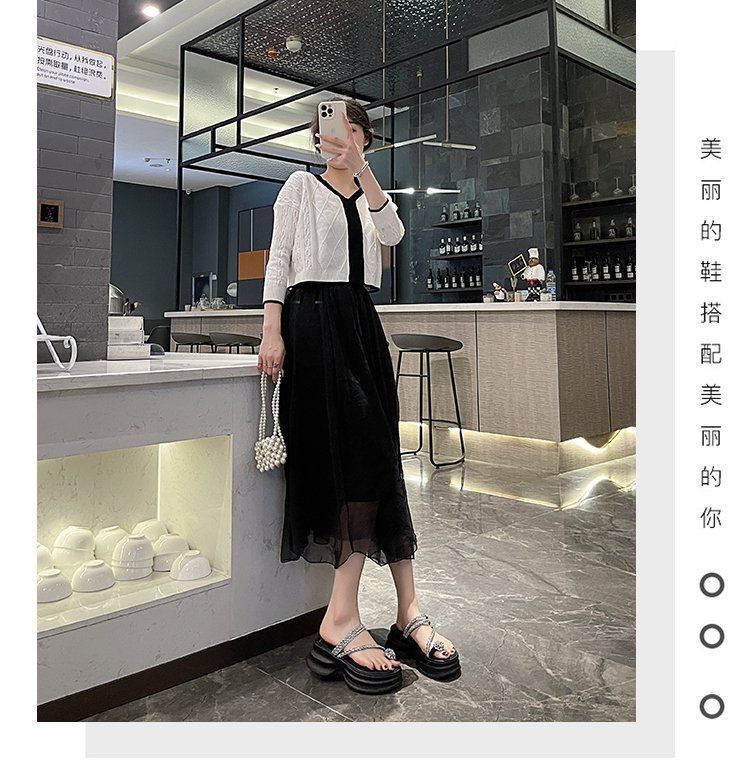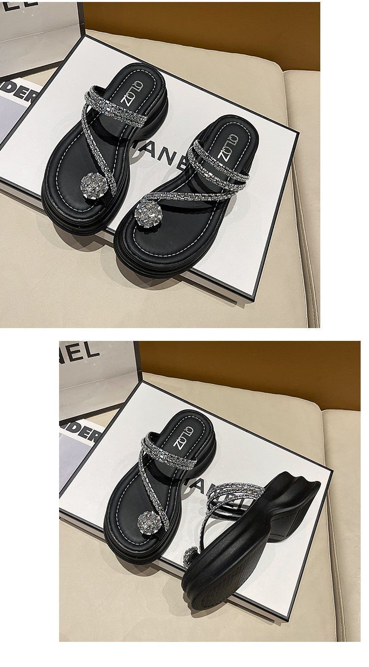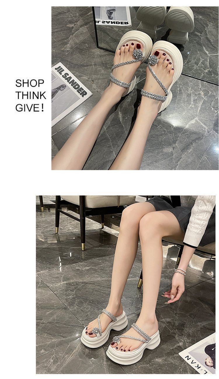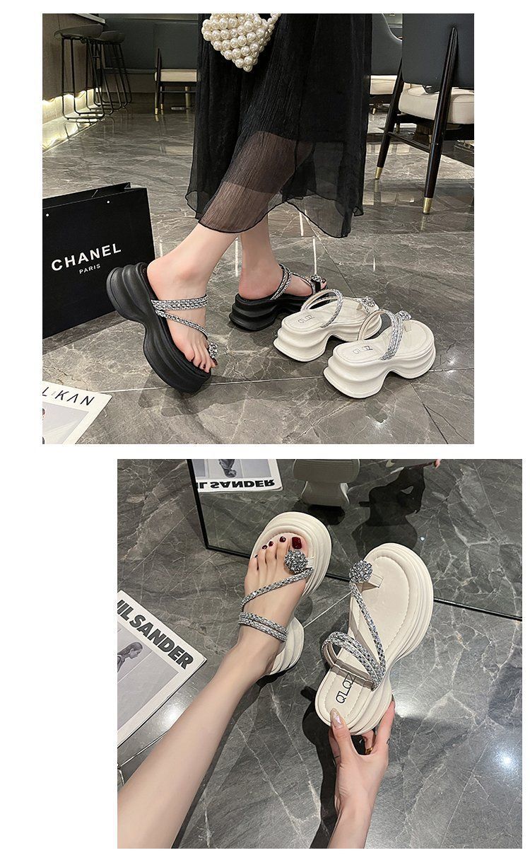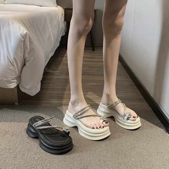 Sandalias de plataforma con punta de diamantes de imitación para mujer, estilo hada, combinables con todo, ¡novedad en verano de 2024!