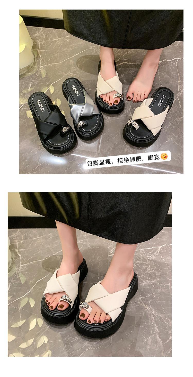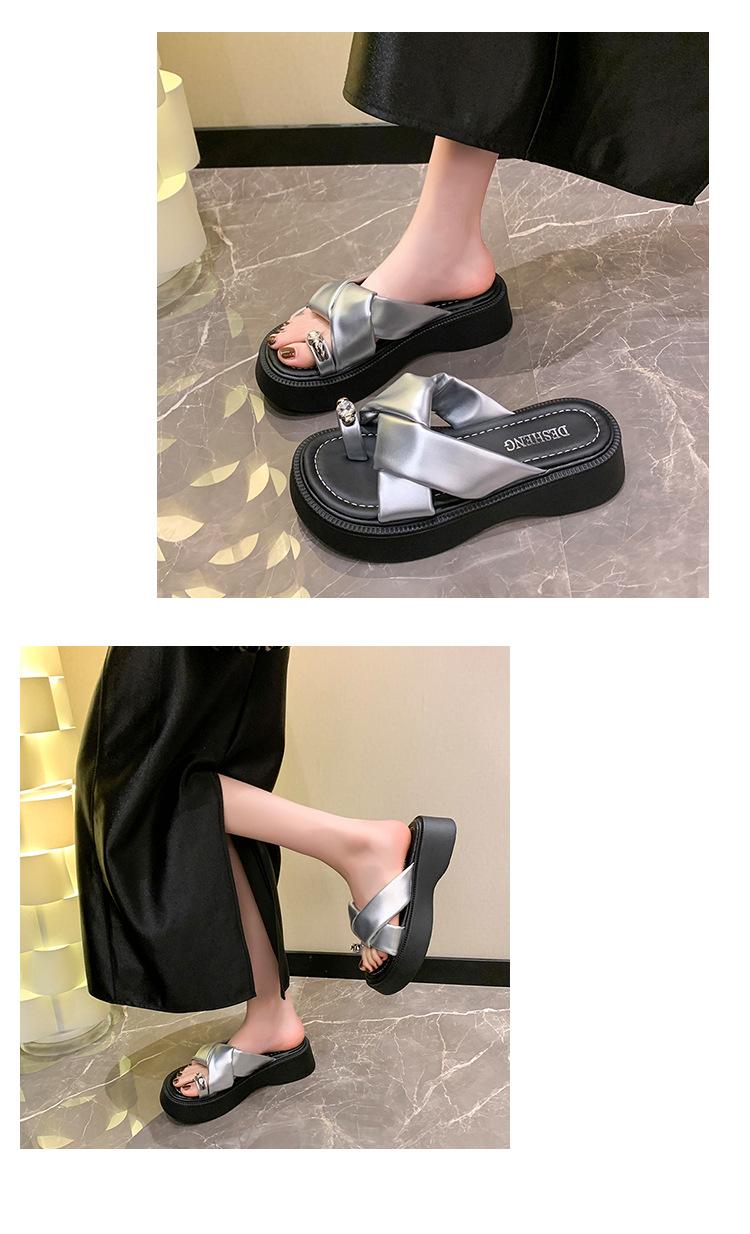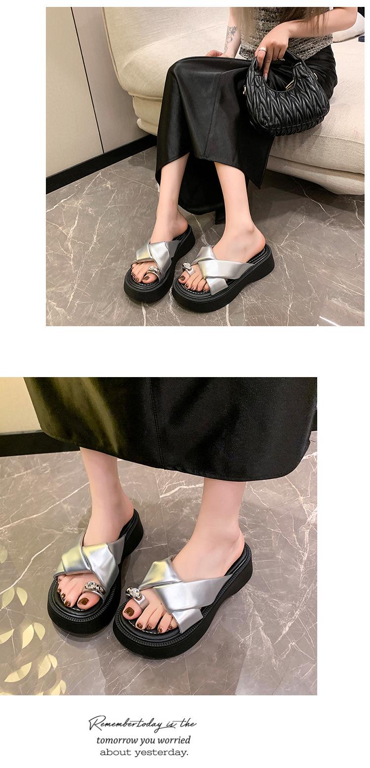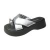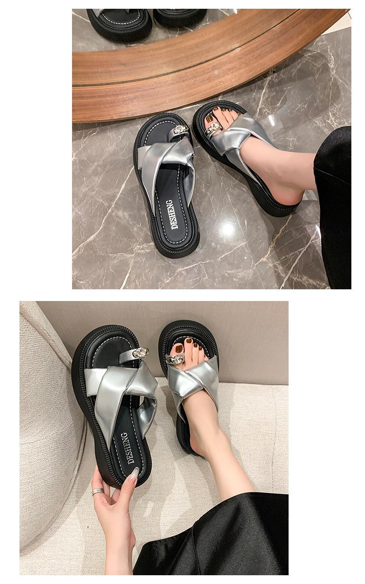 2025 Nuevo Estilo de Verano Pantuflas Plateadas de Dedo Pequeño para Mujer para Usar Chanclas Casuales de Suela Gruesa Sandalias de Playa
