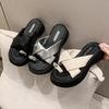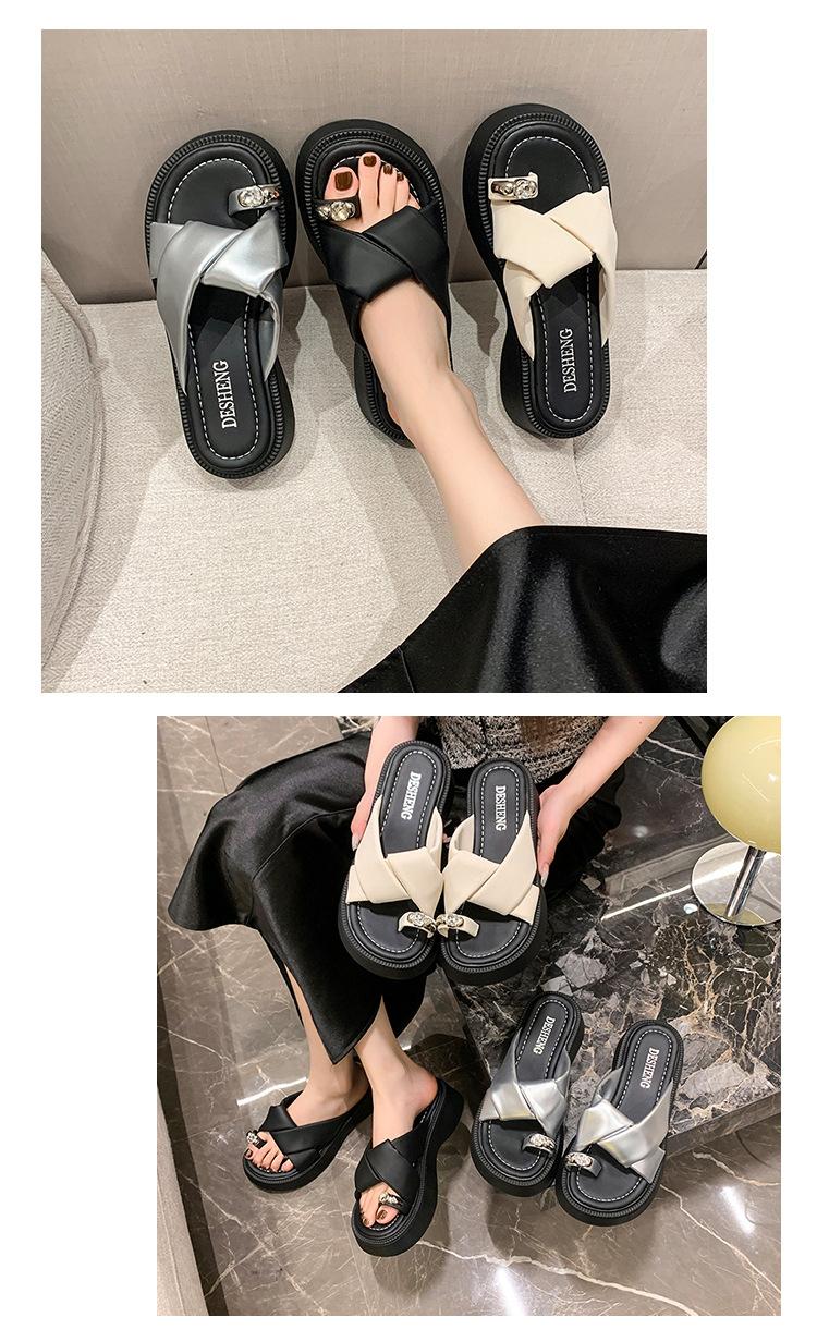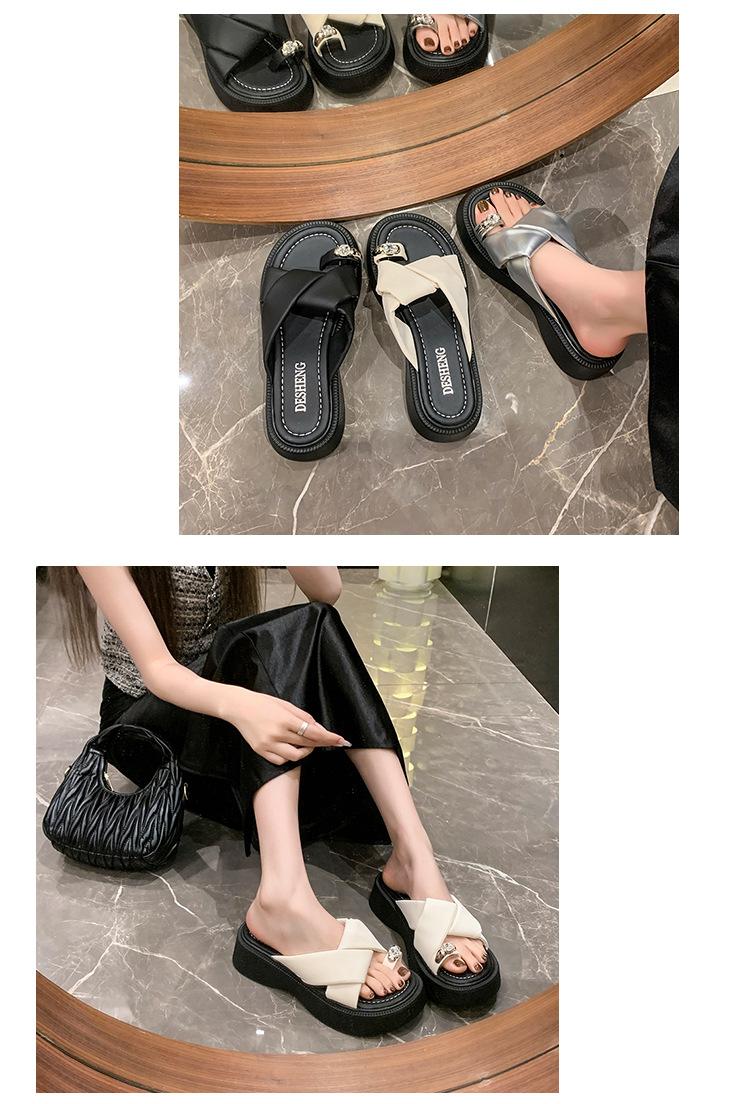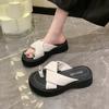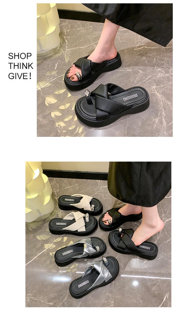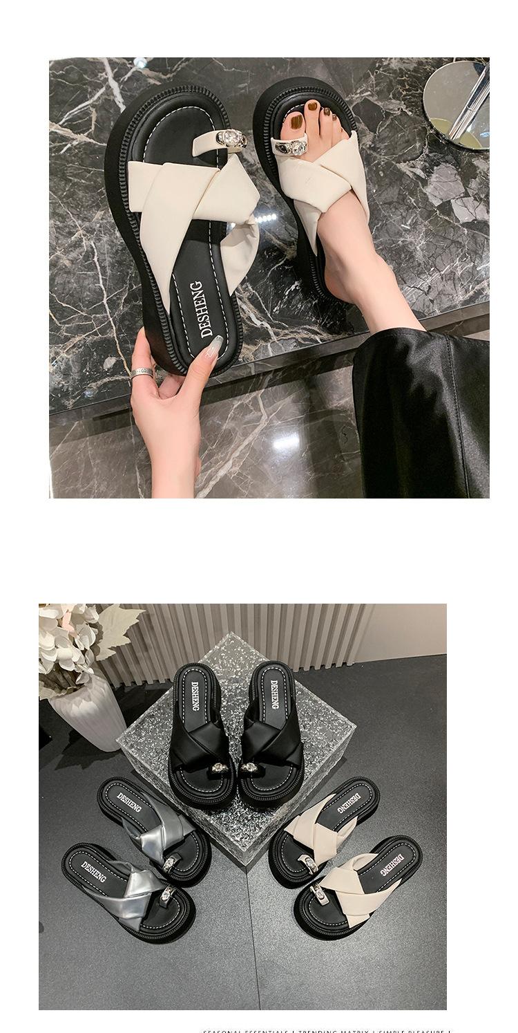 2025 Nuevo Estilo de Verano Pantuflas Plateadas de Dedo Pequeño para Mujer para Usar Chanclas Casuales de Suela Gruesa Sandalias de Playa