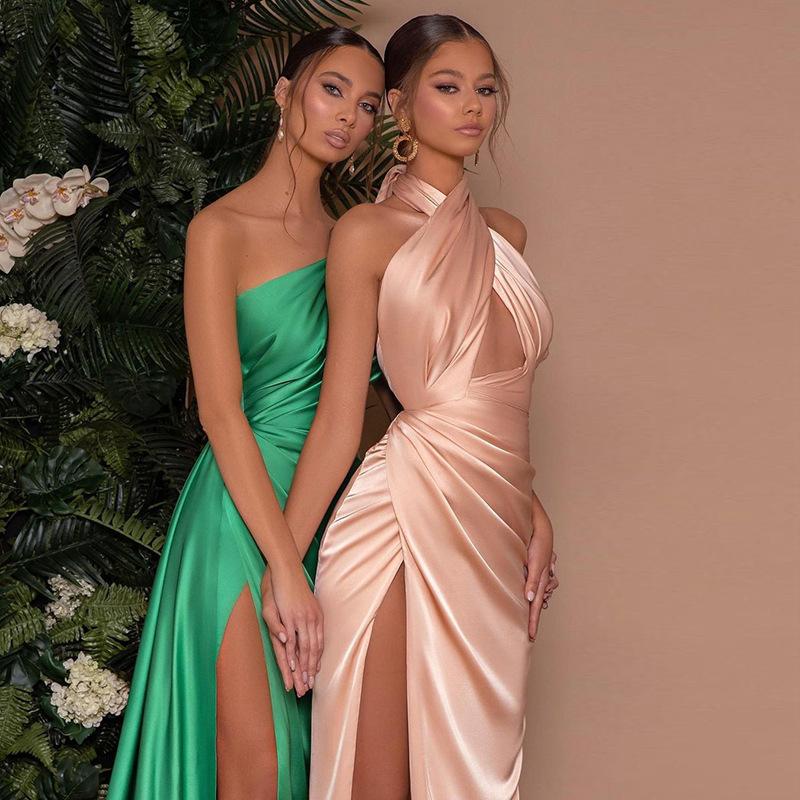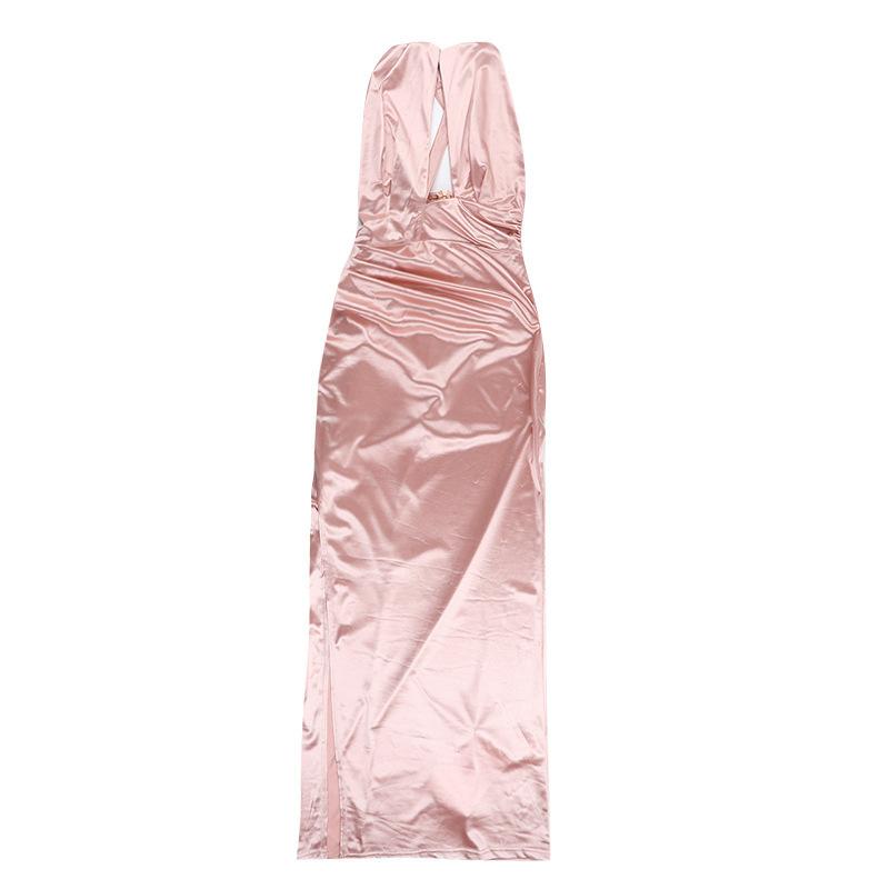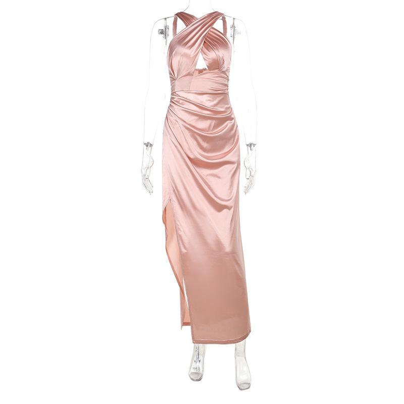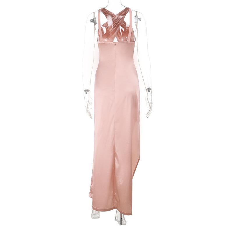 Yj25202 Vestido Sexy con Abertura y Halter Cruzado para Mujer Estilo Europeo y Americano Transfronterizo Vestido Nuevo Falda Larga
