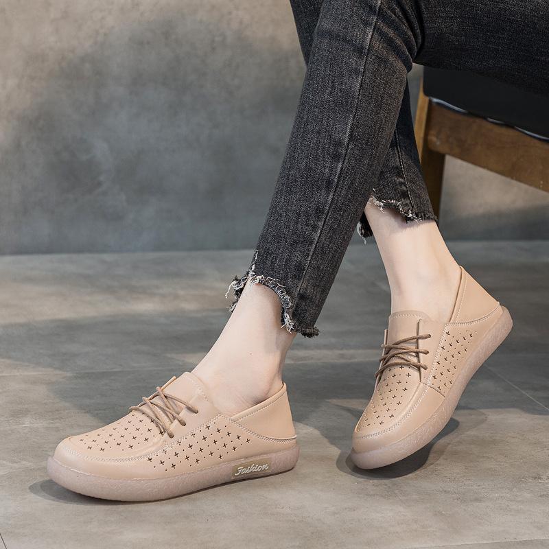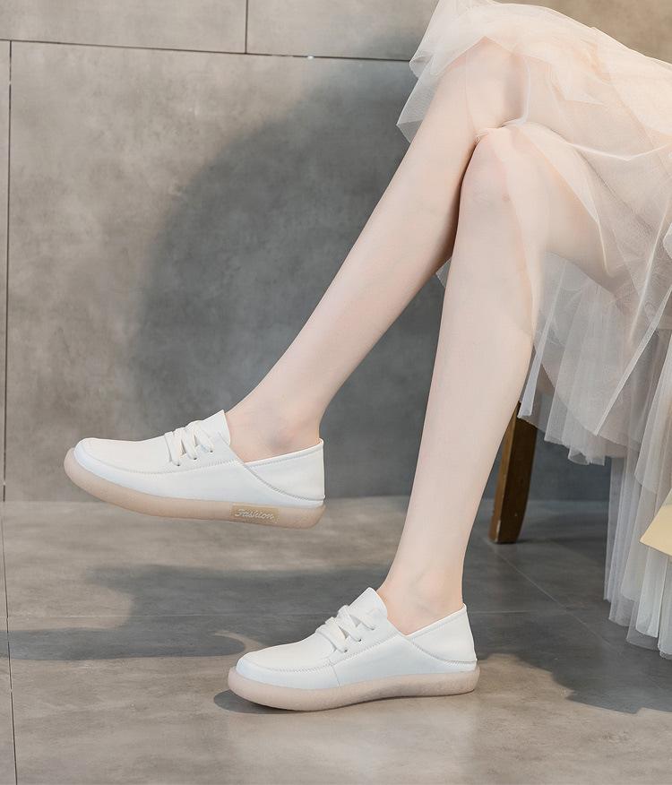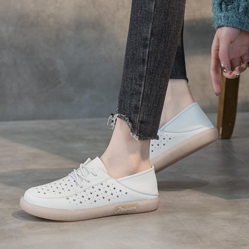 Zapatos Blancos 2025 Verano para Mujer Nuevo Estilo Color Sólido Superficie Suave Suela Blanda Mocasines Británicos para Mujer Zapatos Planos Zapatos de Enfermera Talla Grande