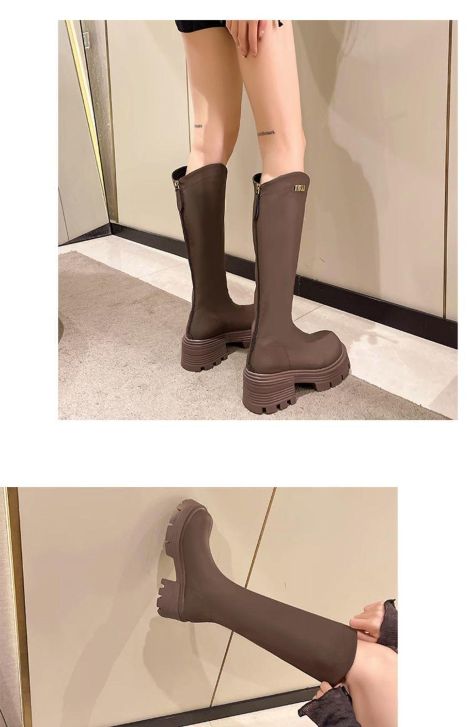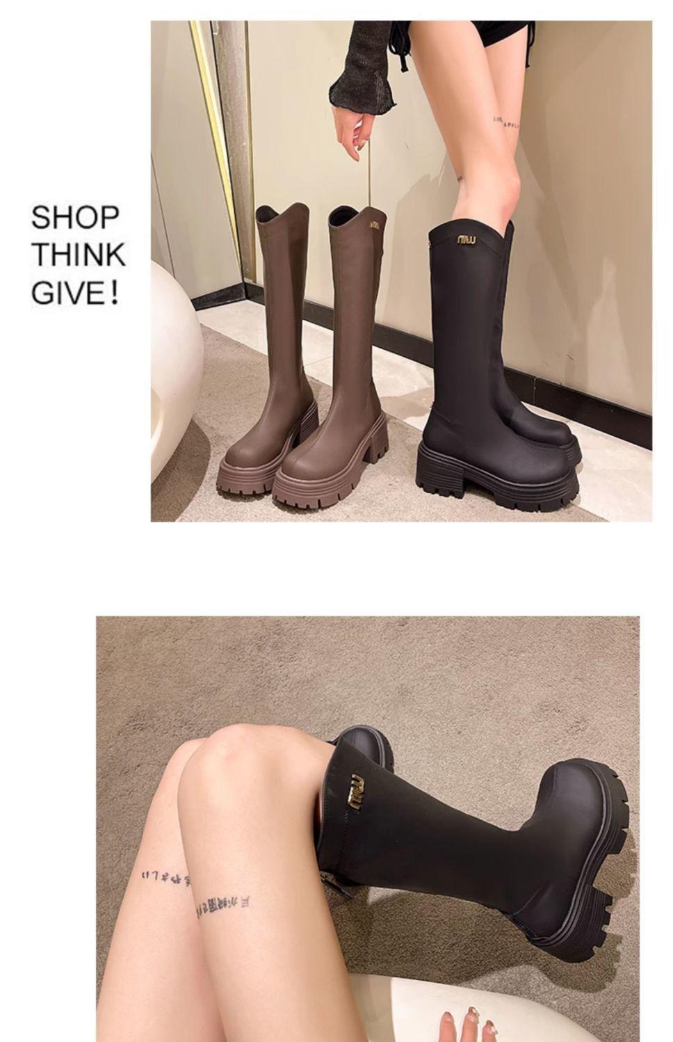 Botas de moda cómodas de estilo británico con suela gruesa para combinar con todo para mujer, nuevas explosión otoño e invierno 2024, botas altas hasta la rodilla tipo caballero