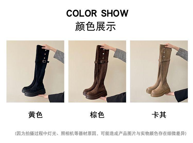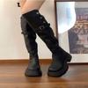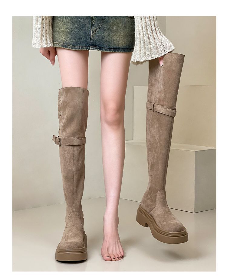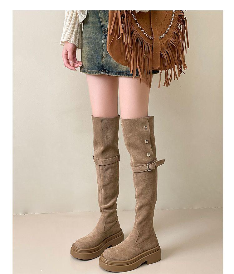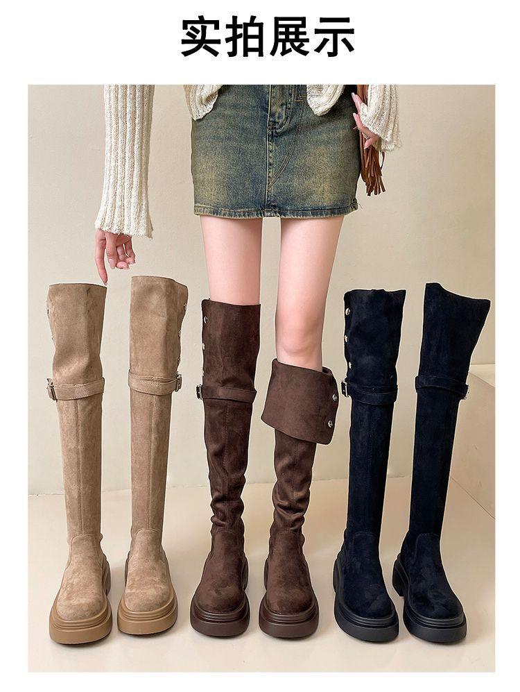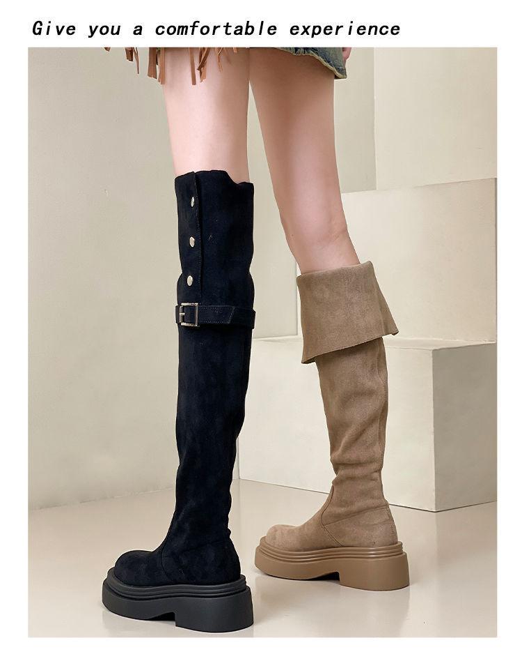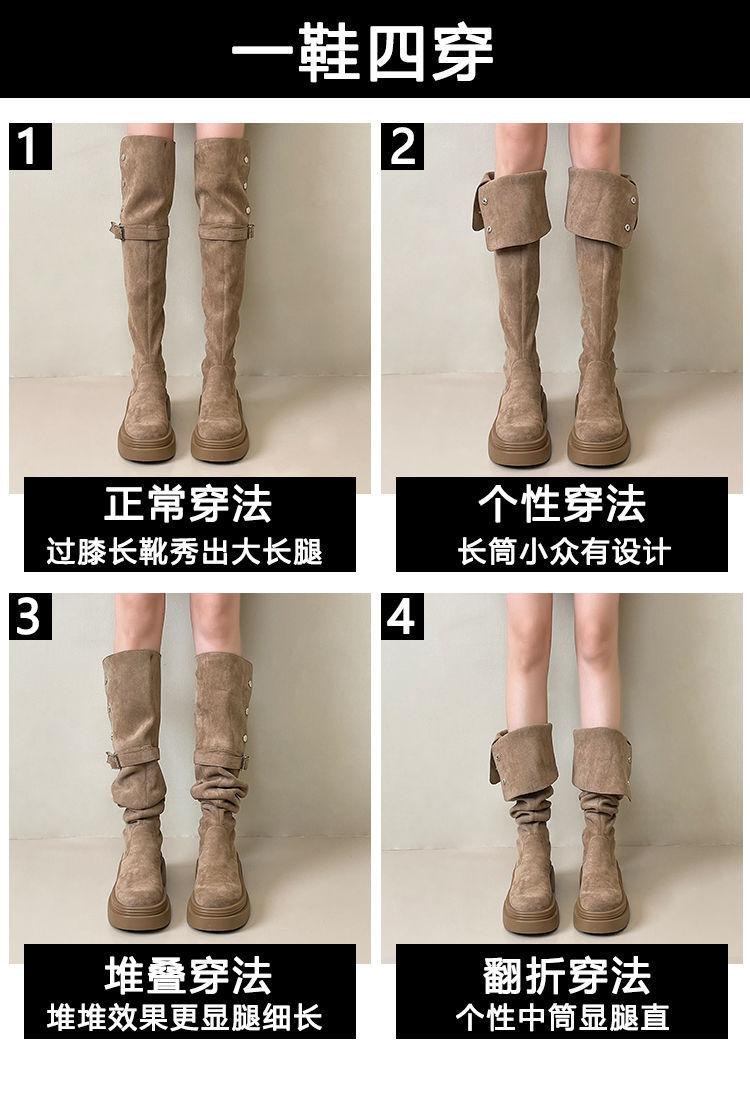 Botas Caqui con Hebilla para Mujer 2024 Otoño e Invierno Nuevas Plegables de Dos Usos Botas de Caballero de Suela Gruesa Botas Slim por Encima de la Rodilla