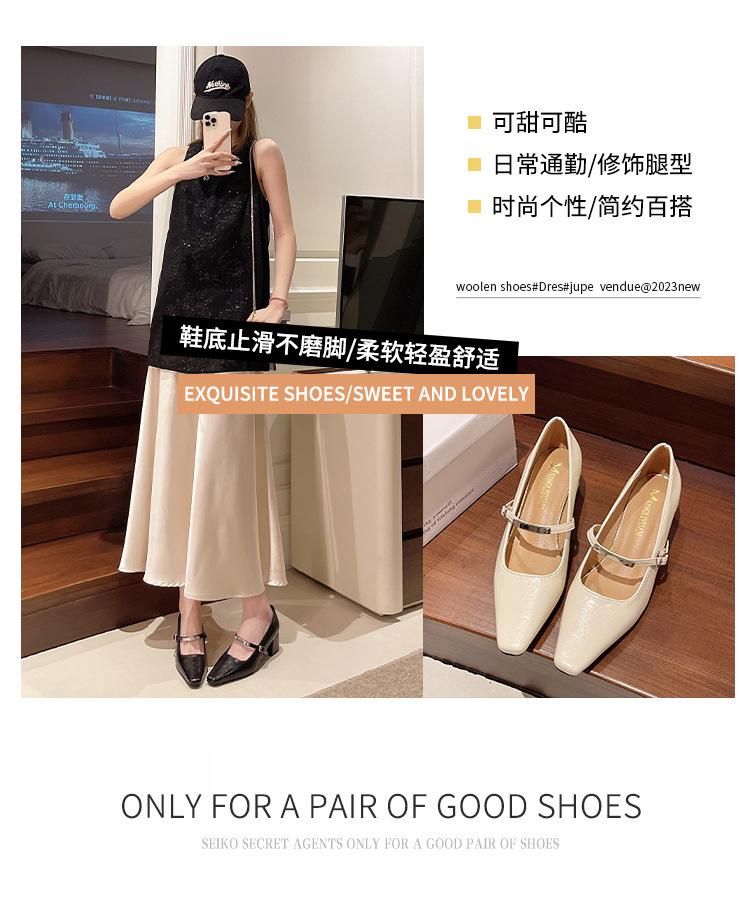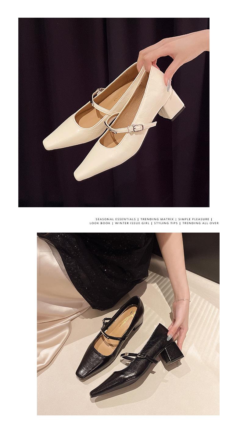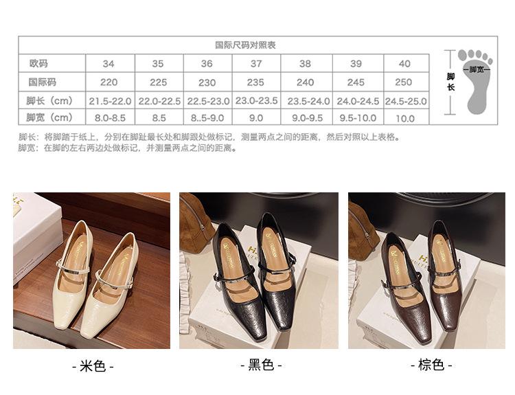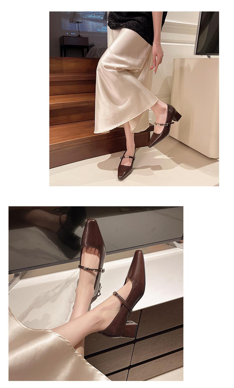 Zapatos de tacón Mary Jane para mujer 2025 Primavera Nuevo estilo Tacón grueso Estilo francés con falda Elegantes Punta afilada Boca poco profunda Zapatos de tacón alto para mujer