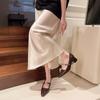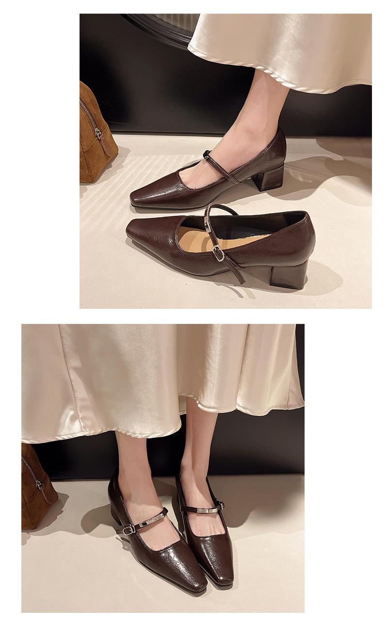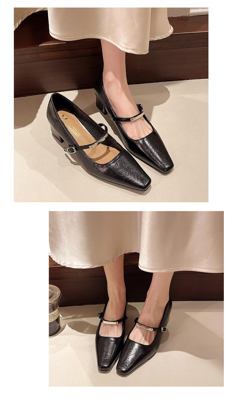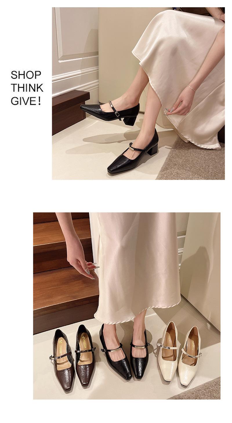 Zapatos de tacón Mary Jane para mujer 2025 Primavera Nuevo estilo Tacón grueso Estilo francés con falda Elegantes Punta afilada Boca poco profunda Zapatos de tacón alto para mujer