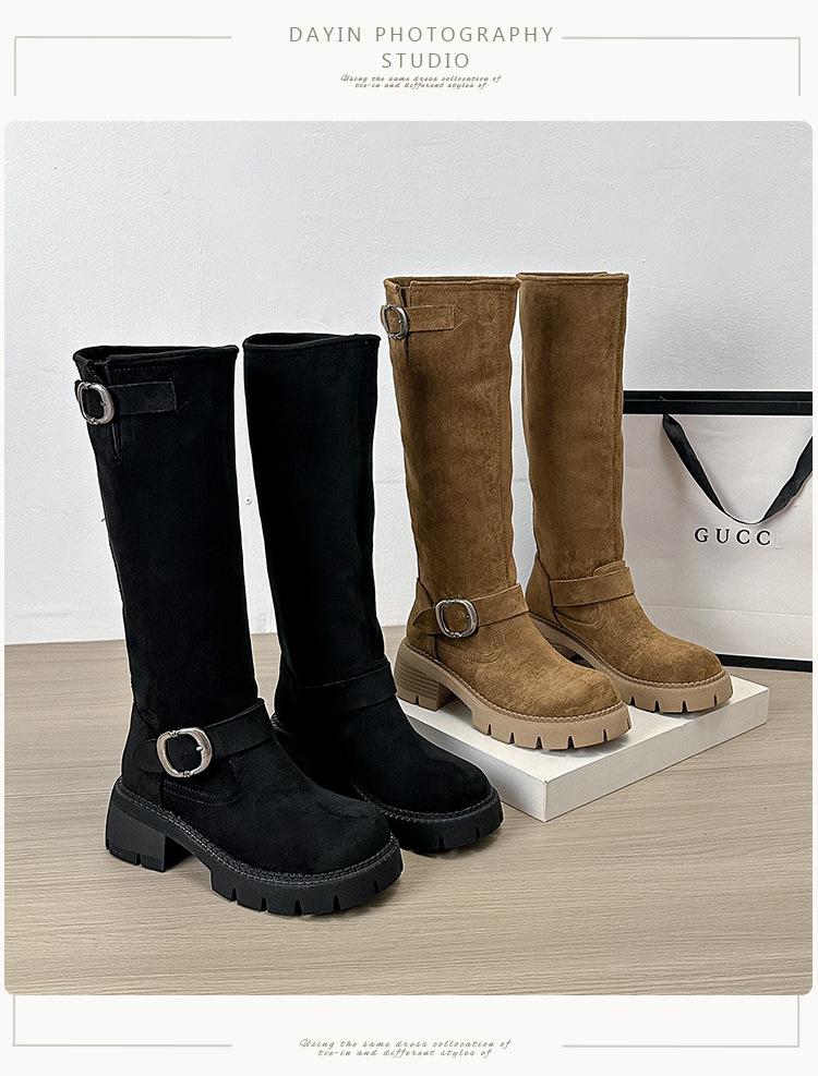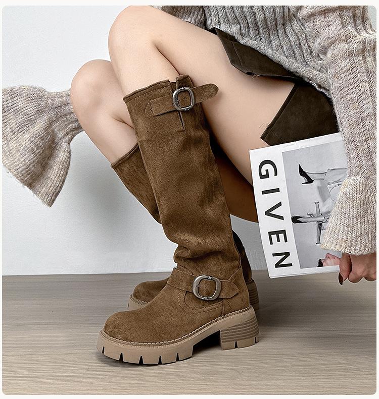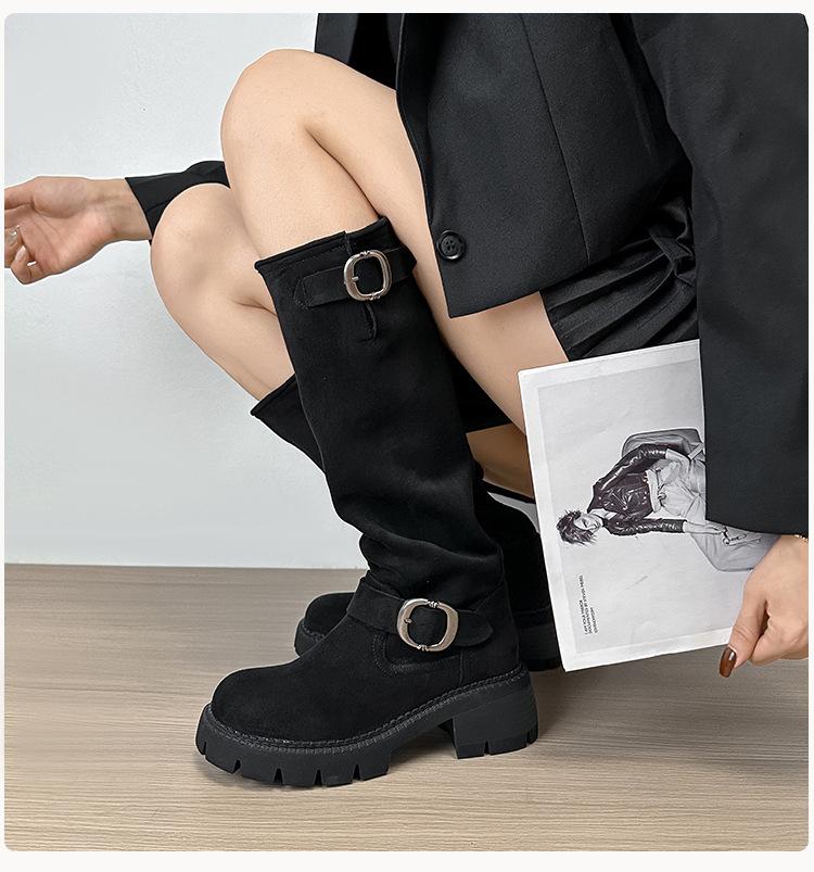 Botas Elásticas de Gamuza Nuevas 2024 Botas Delgadas Pero Botas Largas Hasta la Rodilla para Mujer Suela Gruesa Chica Gordita Botas Largas Botas de Caballero