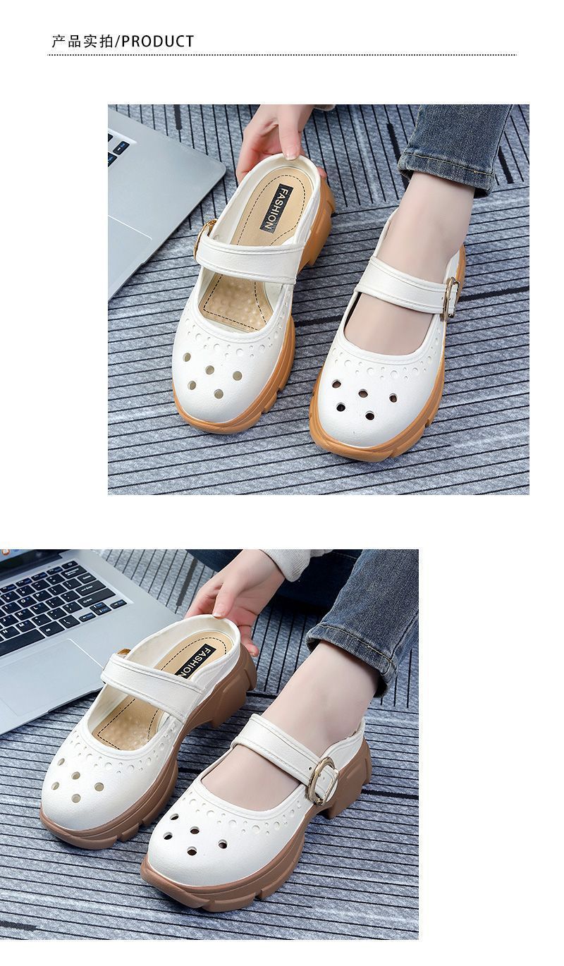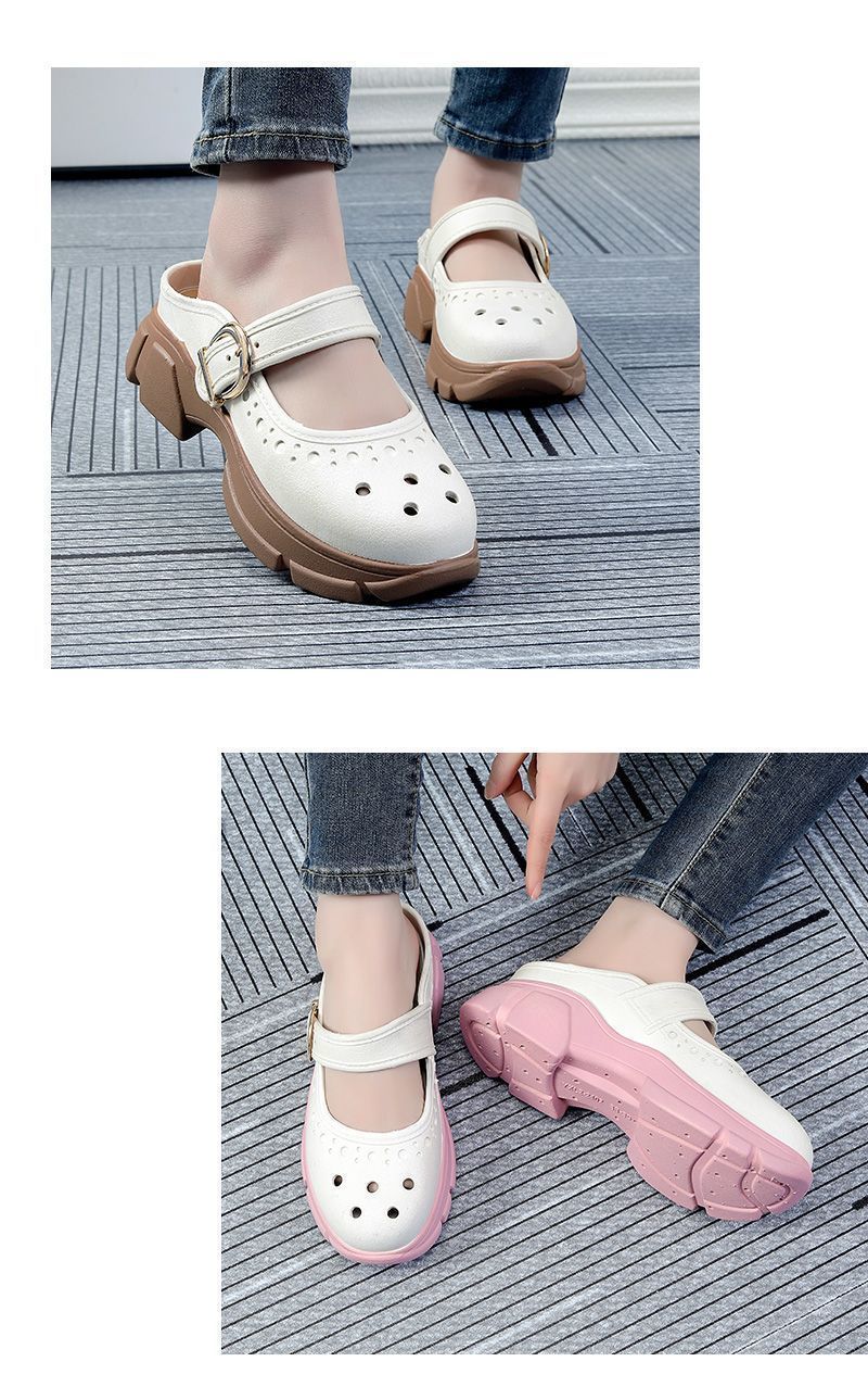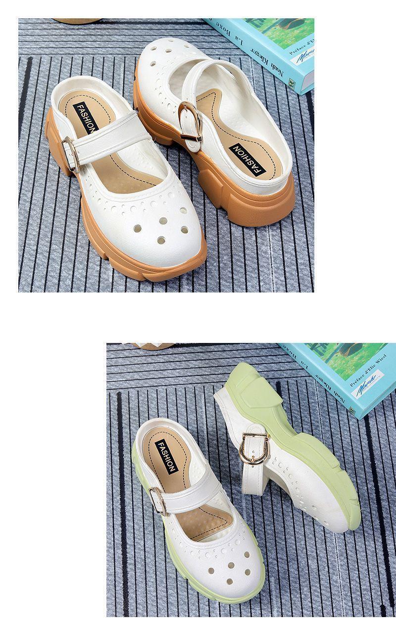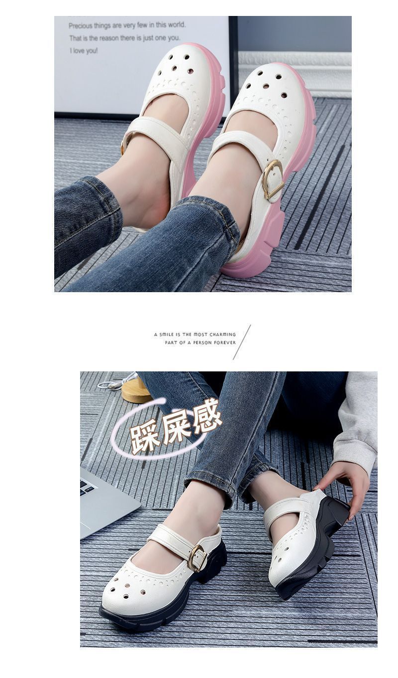Zapatos Croc Nuevos de Verano para Mujer Celebridad de Internet Recortes Moda Ropa Exterior Zapatillas Baotou Suela Gruesa Aumento de Altura Antideslizantes Sandalias Anti-Olor
