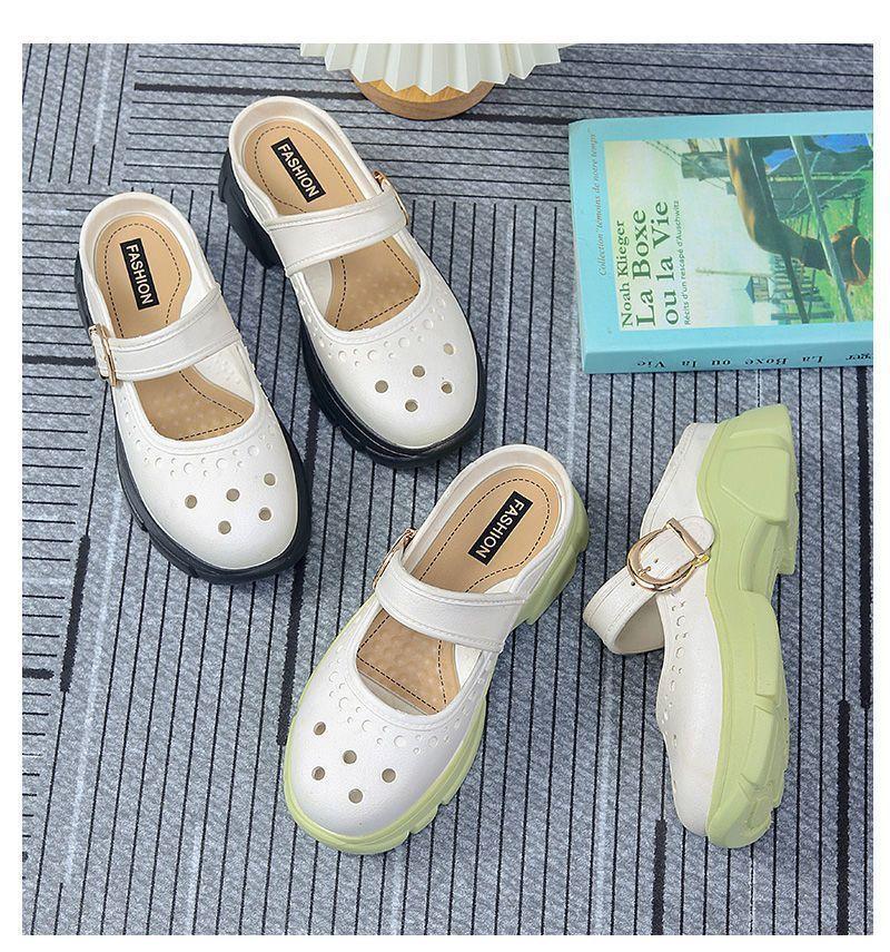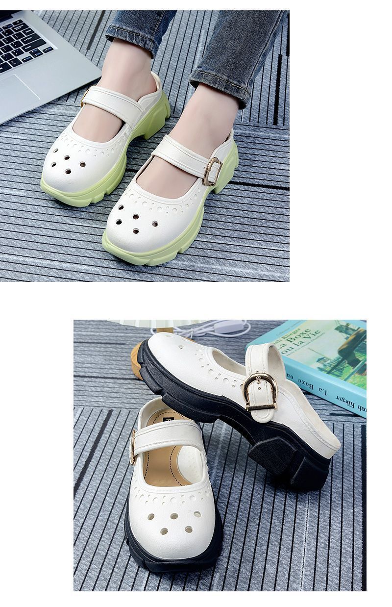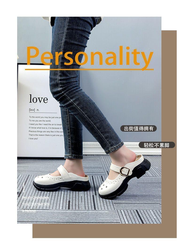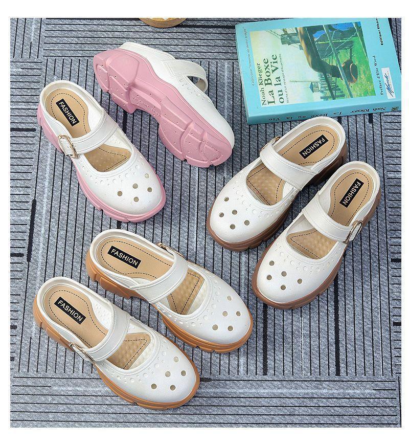 Zapatos Croc Nuevos de Verano para Mujer Celebridad de Internet Recortes Moda Ropa Exterior Zapatillas Baotou Suela Gruesa Aumento de Altura Antideslizantes Sandalias Anti-Olor