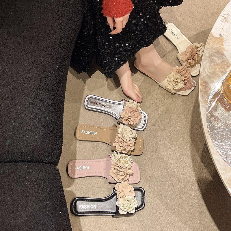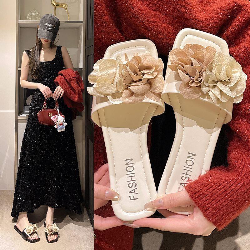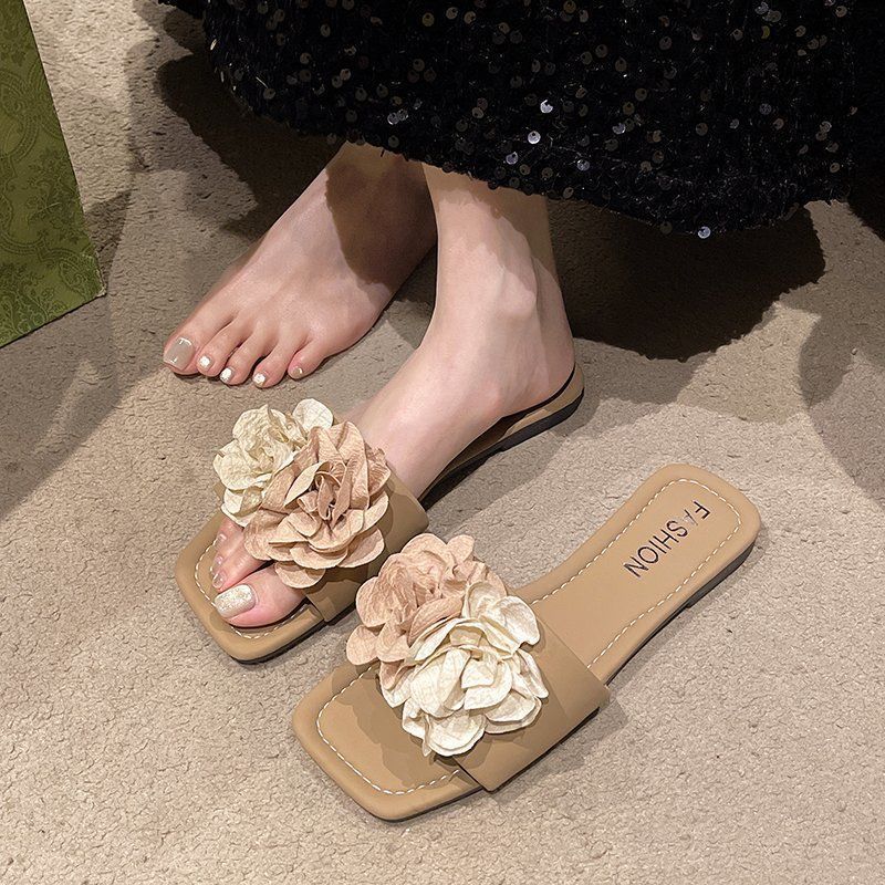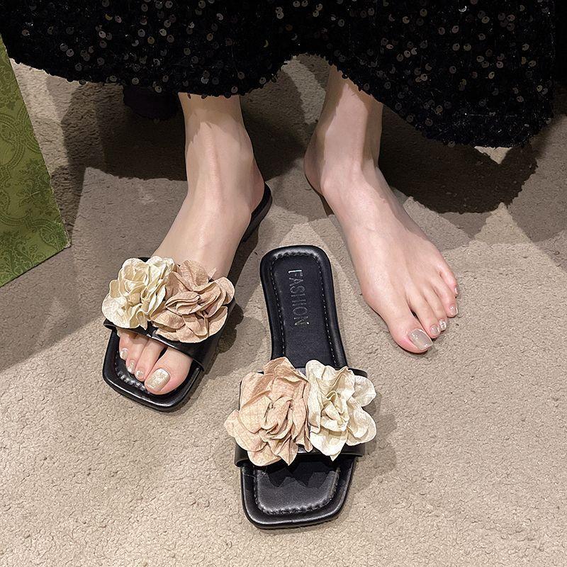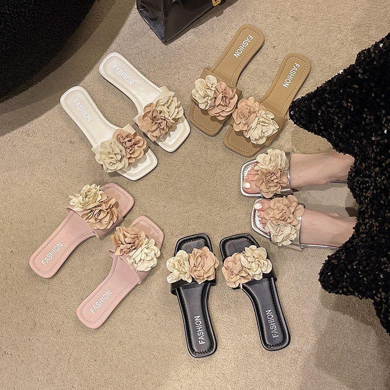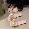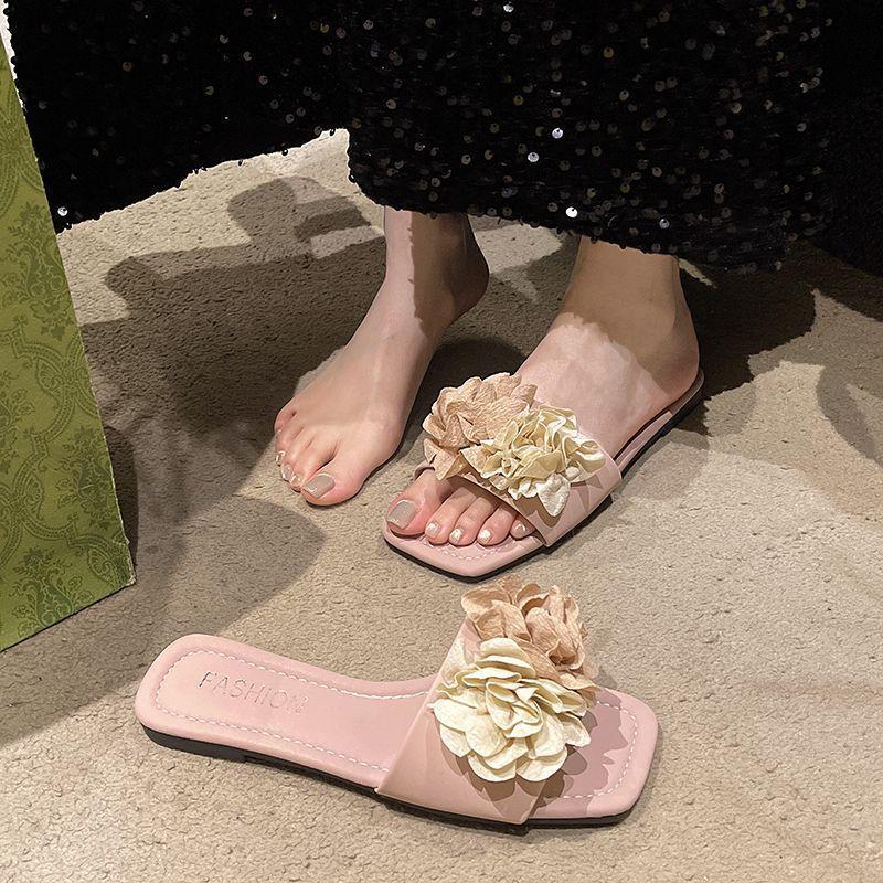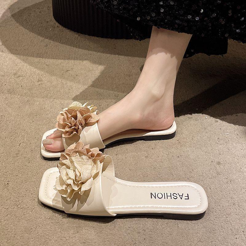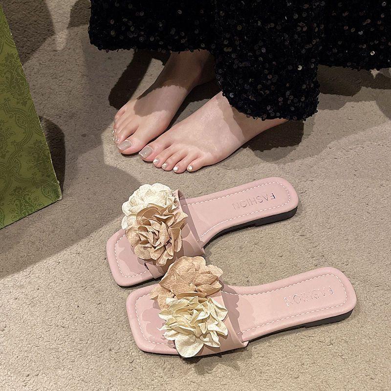 Sandalias de Playa Florales de Estilo Hada de Moda para Mujer 2025 Verano Nuevas Chanclas de Playa Planas sin Cordones