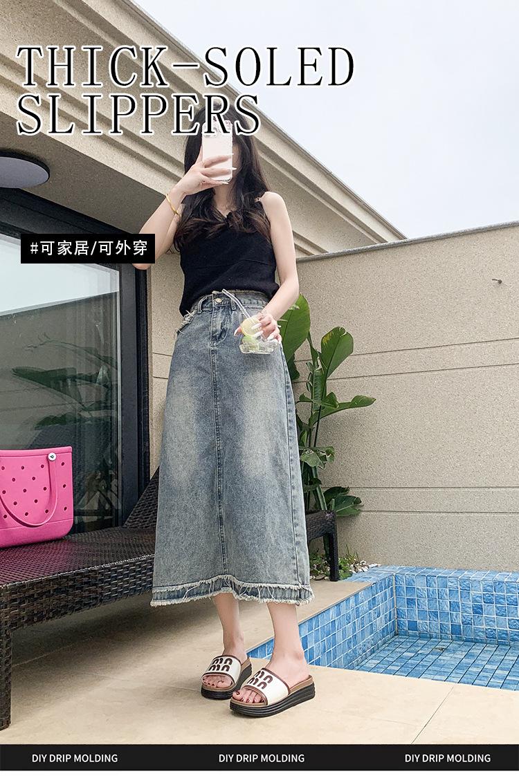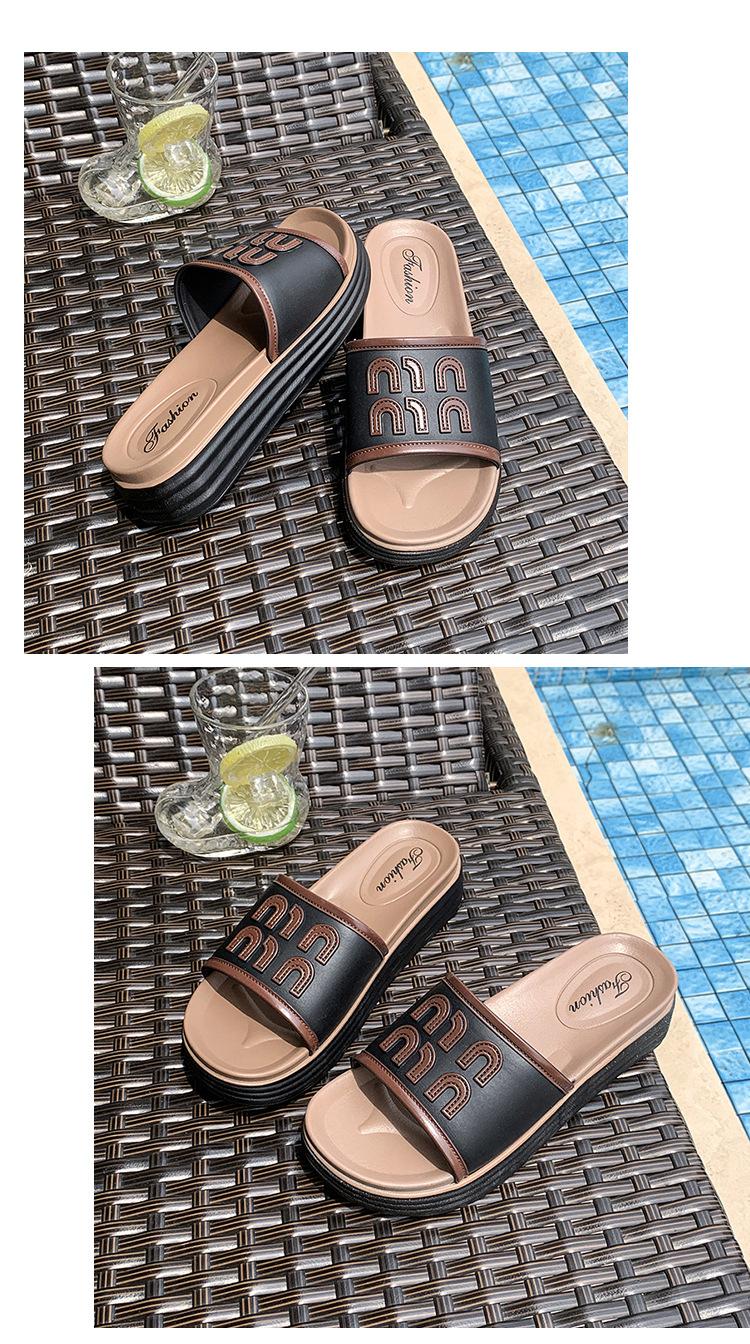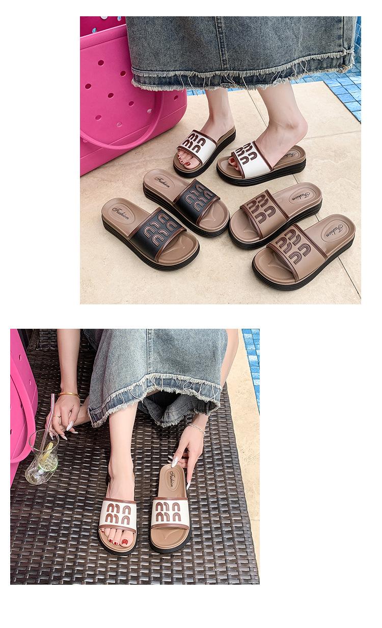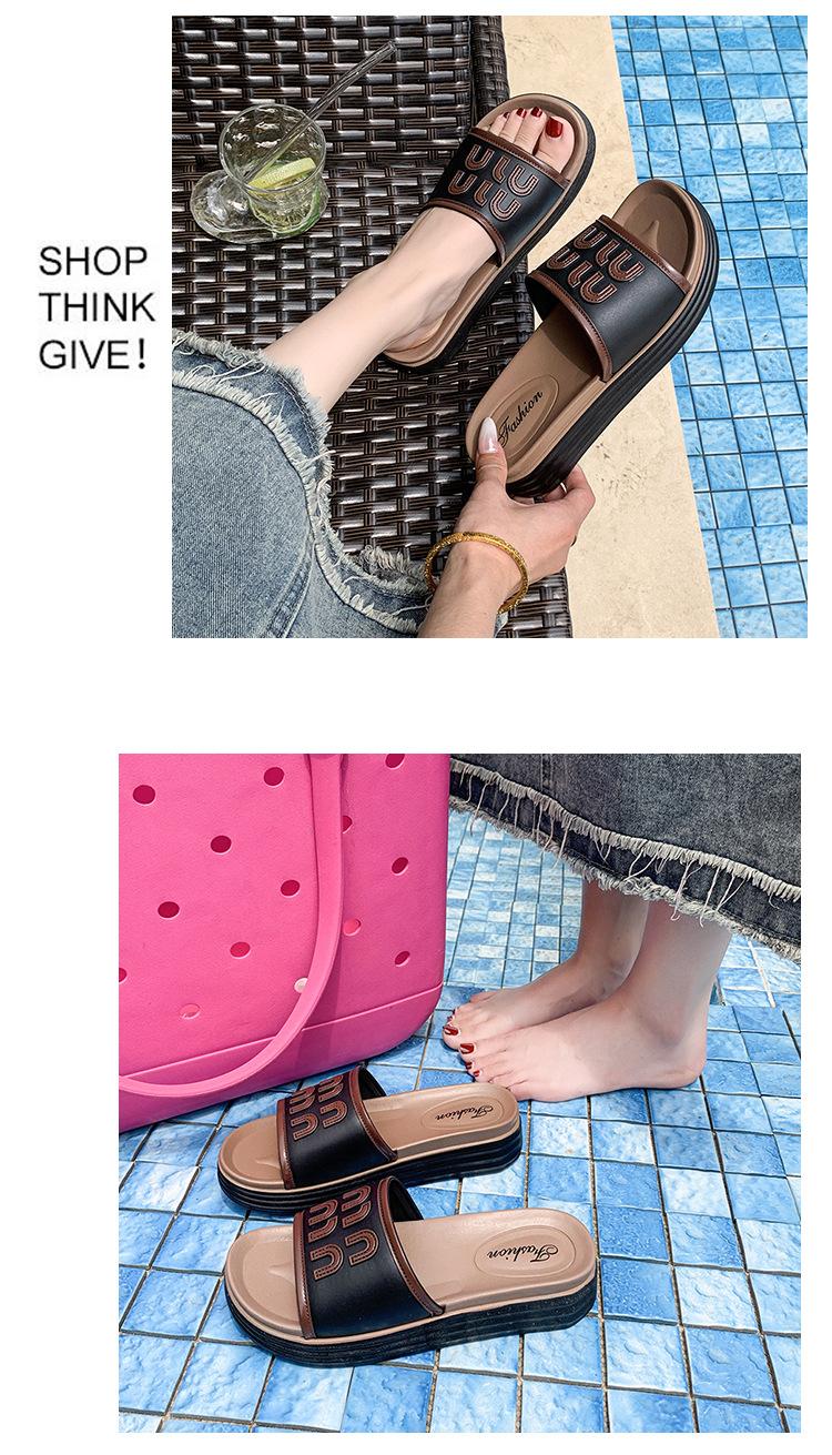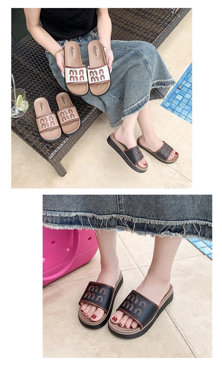 Zapatillas de Verano Nuevas Retro de Suela Gruesa, Sandalias de Una Tira, Playa Casual 2025 Moda Zapatos de Mujer Medio Slip de Un Pie