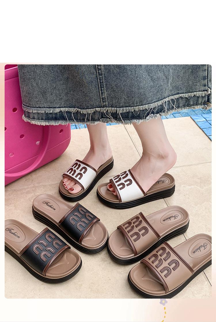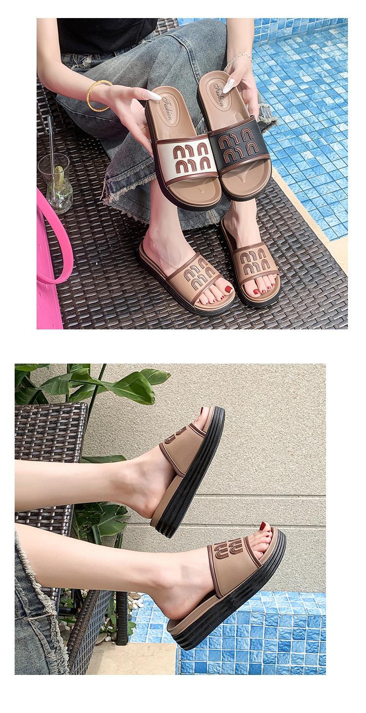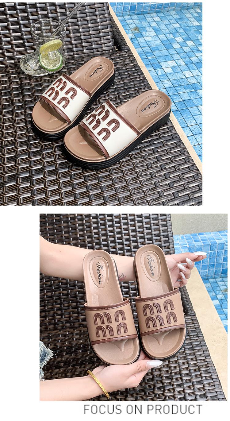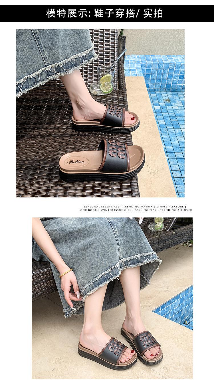 Zapatillas de Verano Nuevas Retro de Suela Gruesa, Sandalias de Una Tira, Playa Casual 2025 Moda Zapatos de Mujer Medio Slip de Un Pie