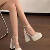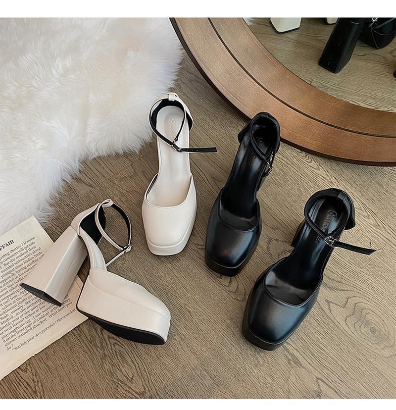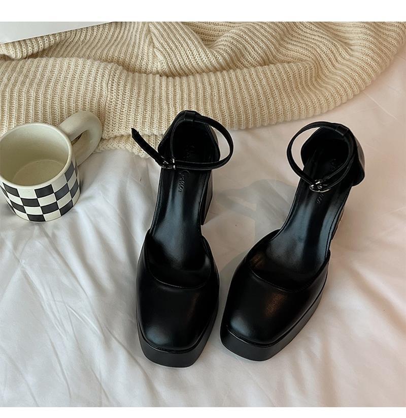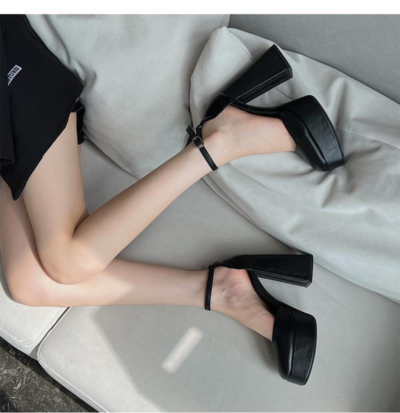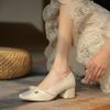 Zapatos de Mujer Primavera 2025 Nuevos Retro Francés Mary Jane Tacón Grueso Correa con Hebilla Zapatos de Mujer Zapatos Pequeños de Cuero Tacones Altos Tacones Gruesos