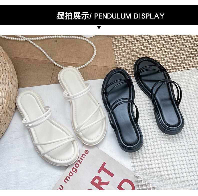 Zapatillas planas frescas de estilo hada para mujer Ins Uso moderno Venta al por mayor Versátil Estudiante Verano Celebridad de Internet Dos sandalias para mujer
