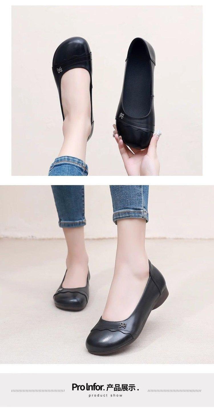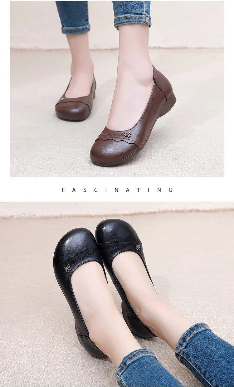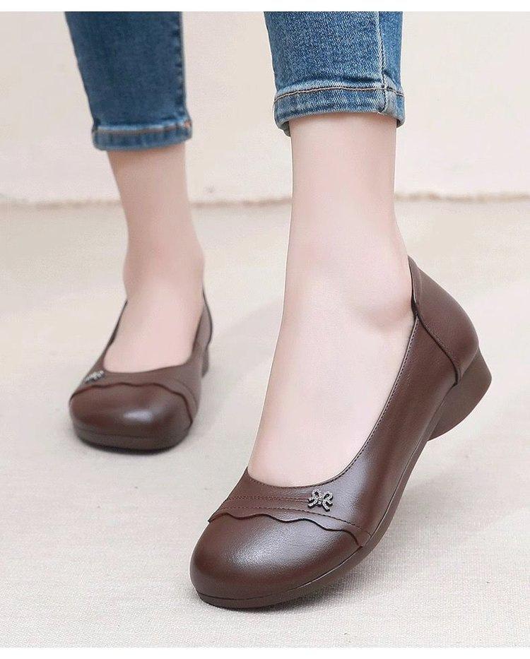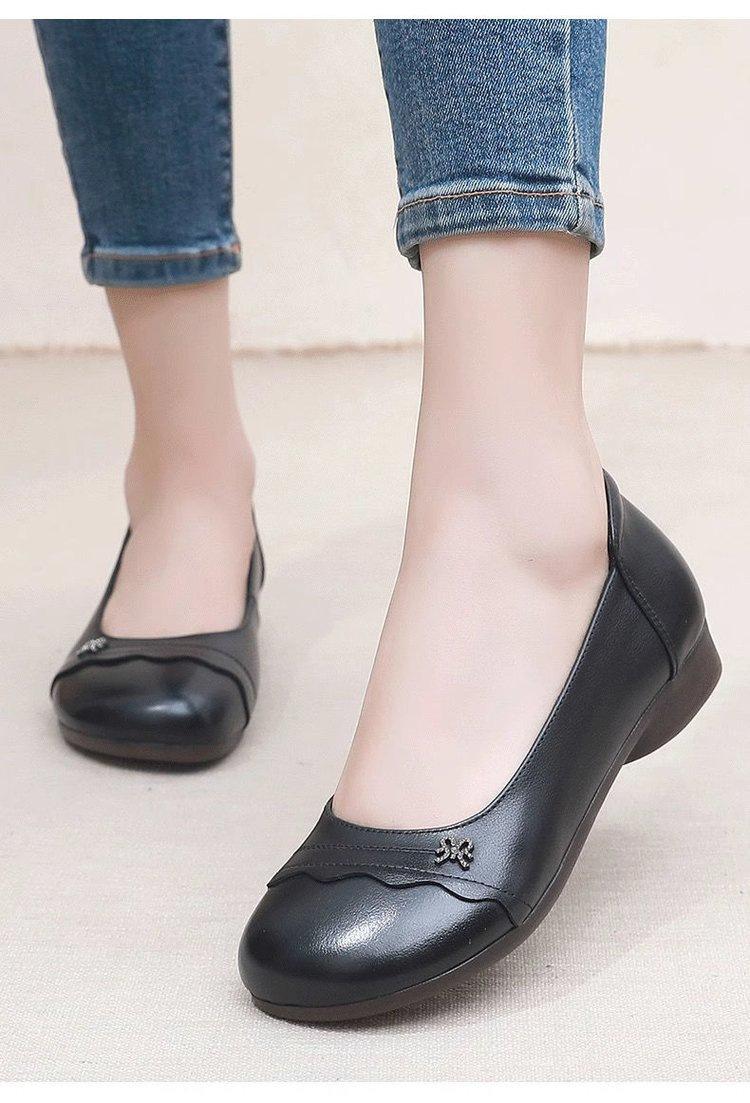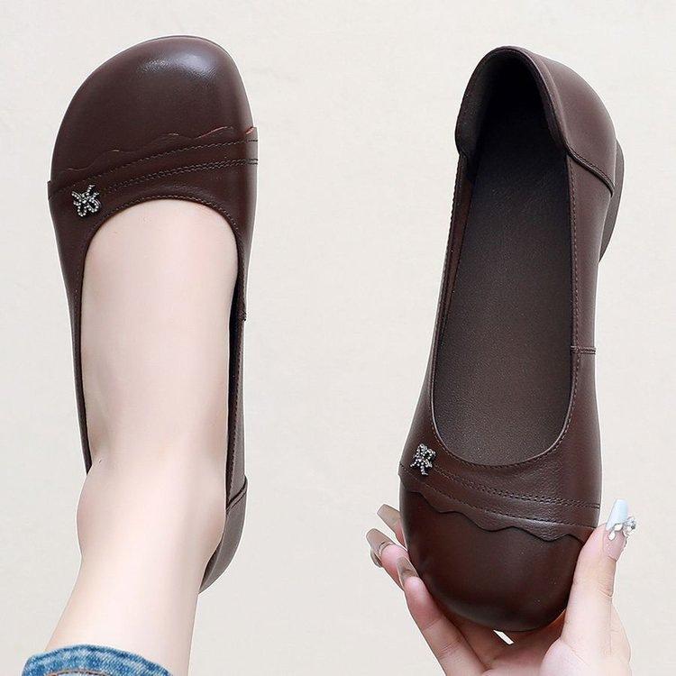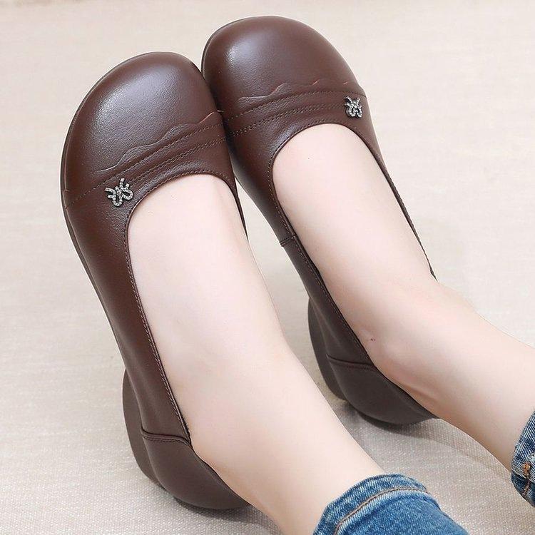 Zapatos Cómodos de Suela Suave para Mujeres de Mediana Edad, Nuevo Estilo Primavera 2025, Zapatos Planos de Cuero Antideslizantes para Madres